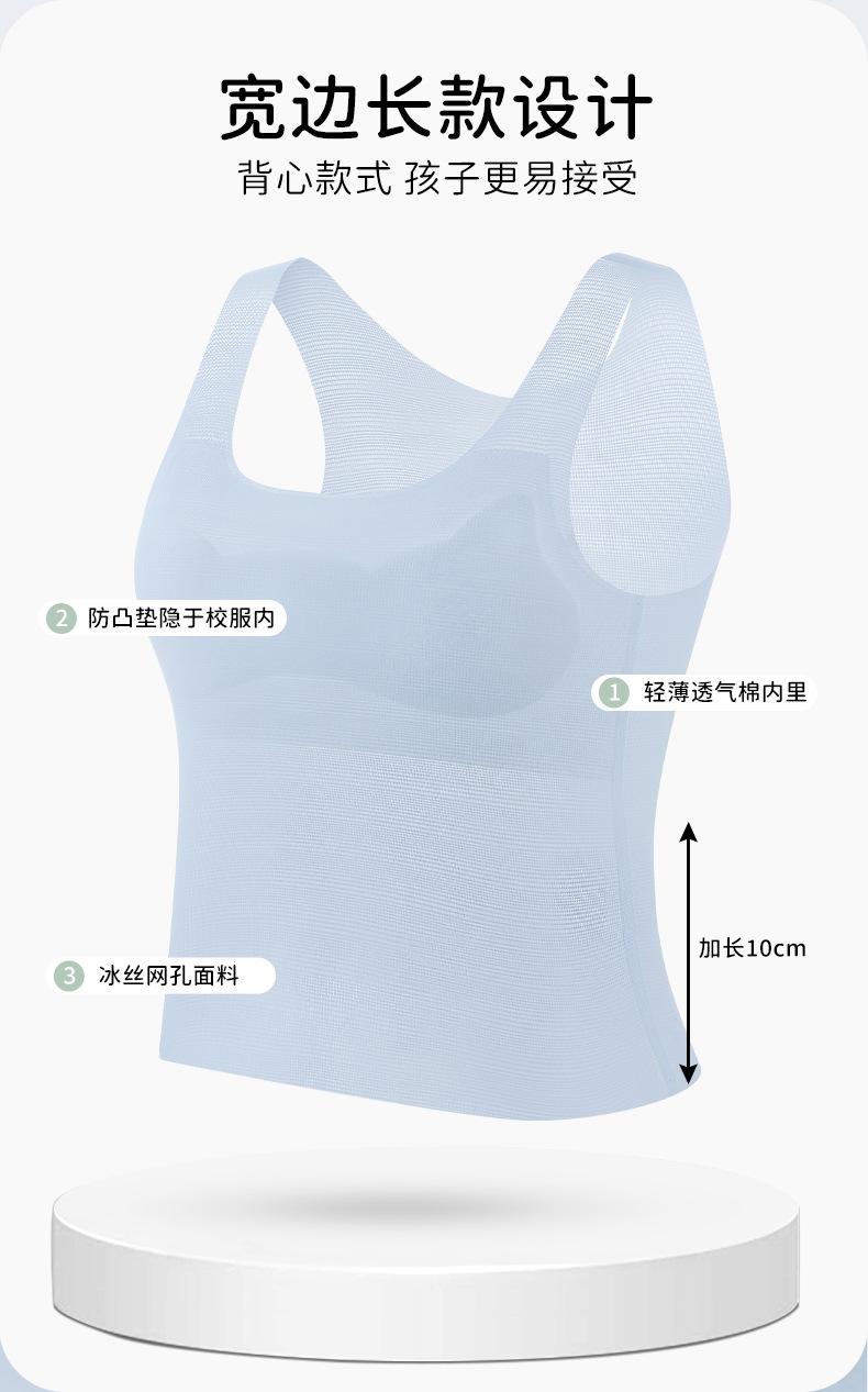 Íntimos personalizados de una etapa para niñas de 7 a 12 años, período de desarrollo, sin costuras, seda de hielo, anti-bultos, chaleco infantil para niños de primaria