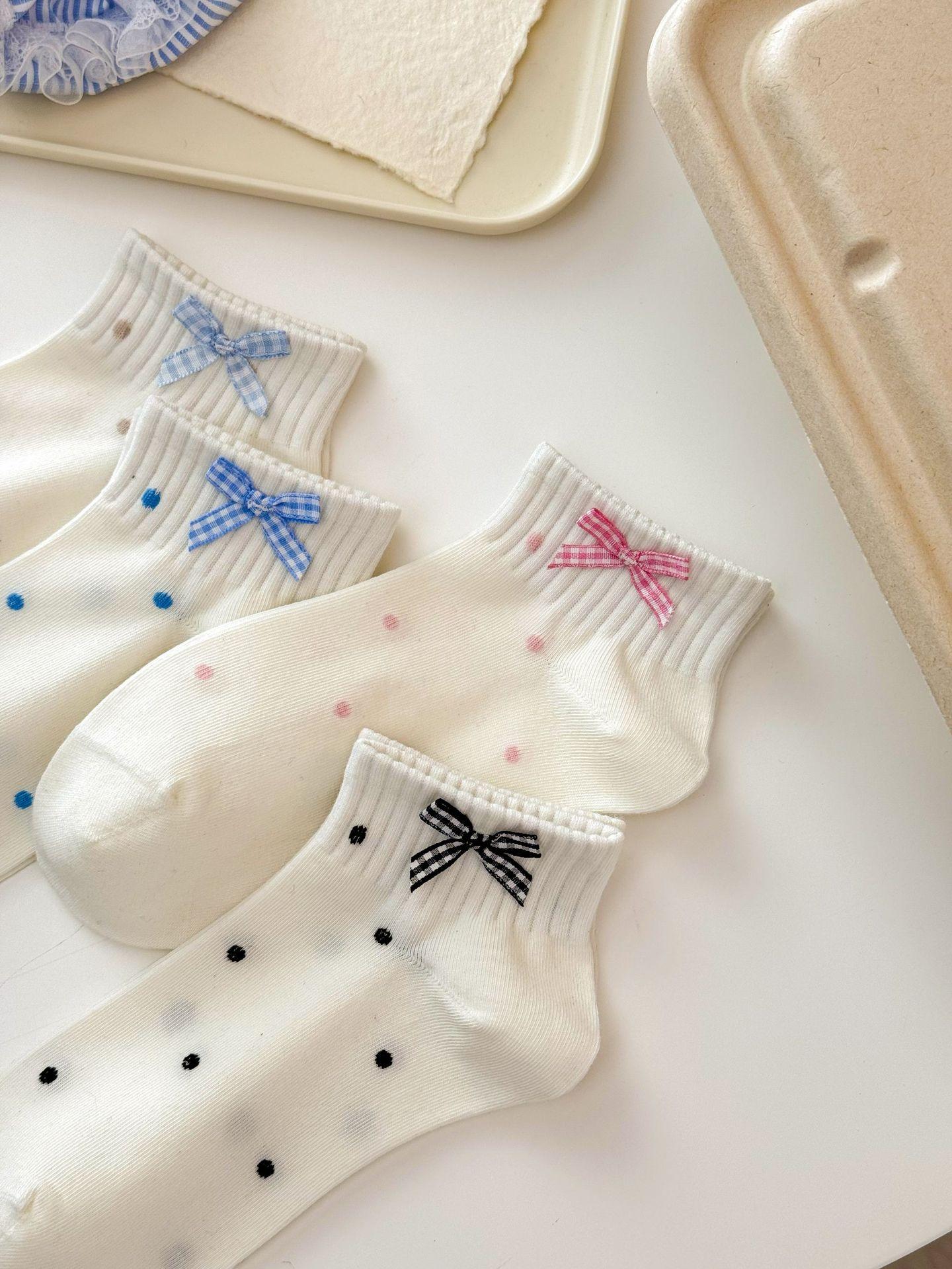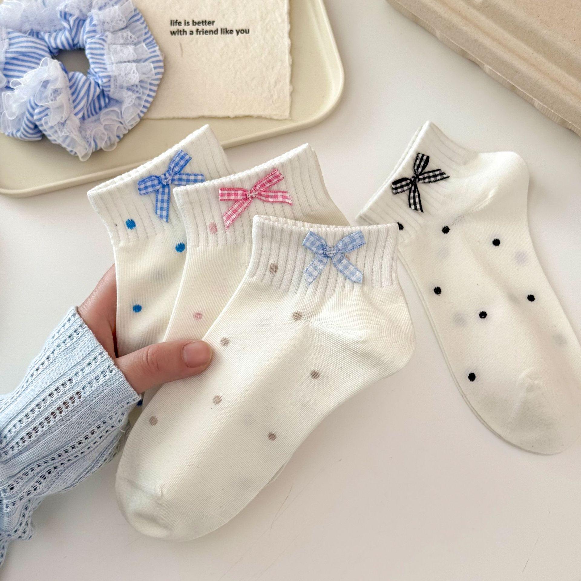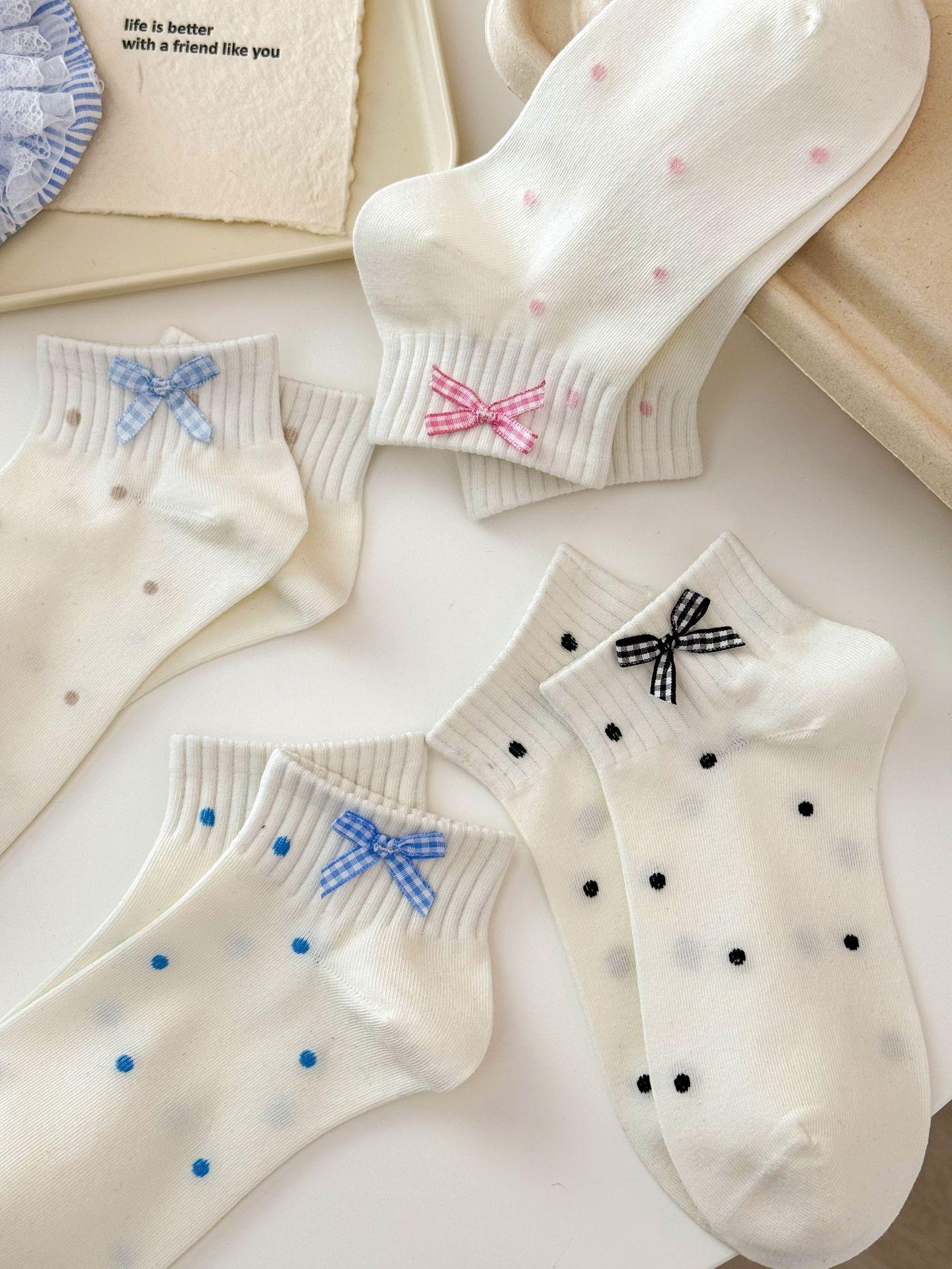 Calcetines de Verano para Mujer Calcetines Finos Encaje de Lazo Japonés Lindo Calcetines de Mujer Color Sólido Lunares Casual Cómodos Calcetines de Mujer
