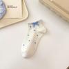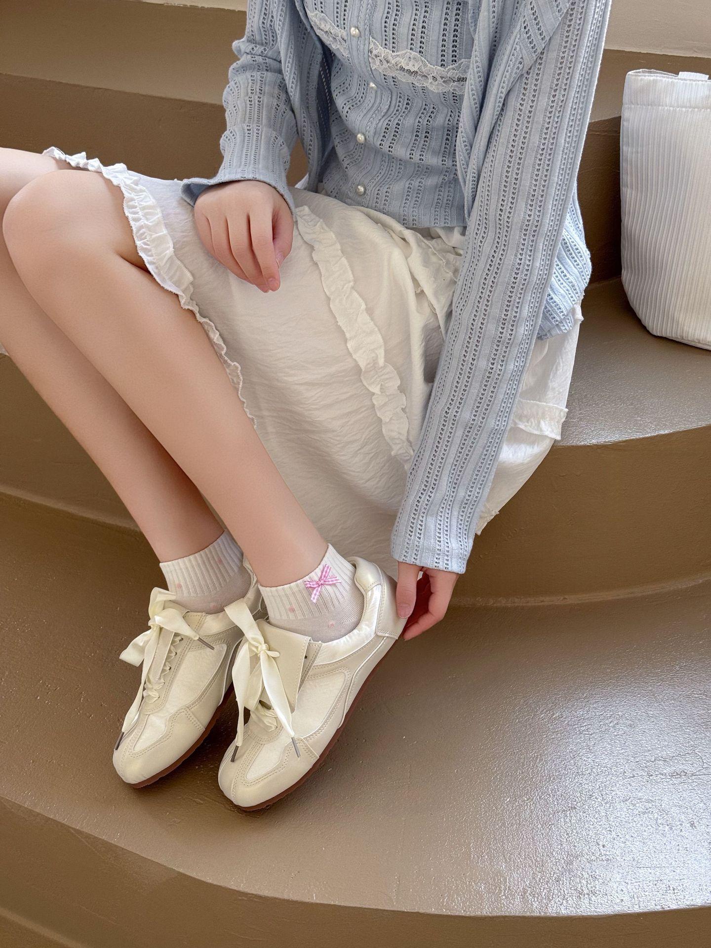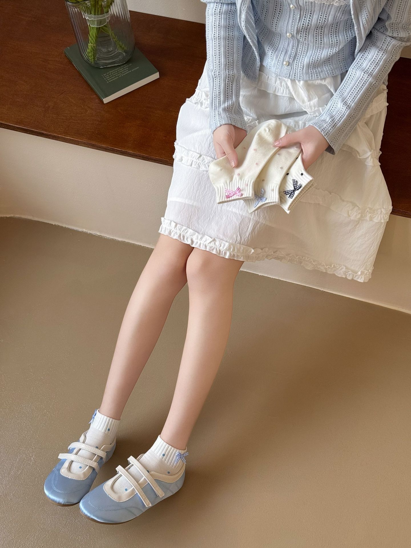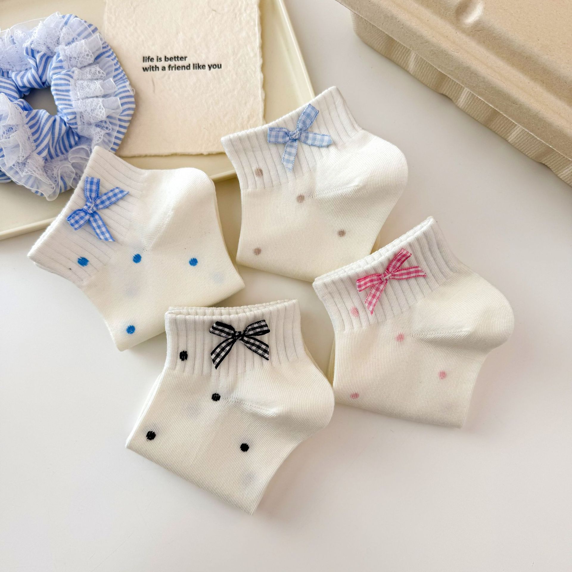 Calcetines de Verano para Mujer Calcetines Finos Encaje de Lazo Japonés Lindo Calcetines de Mujer Color Sólido Lunares Casual Cómodos Calcetines de Mujer