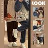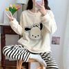 Pijama de Franela de Gato de Dibujos Animados para Mujer Otoño Invierno Vellón Coral Grueso Cálido Casual Conjunto para el Hogar Se Puede Usar Afuera