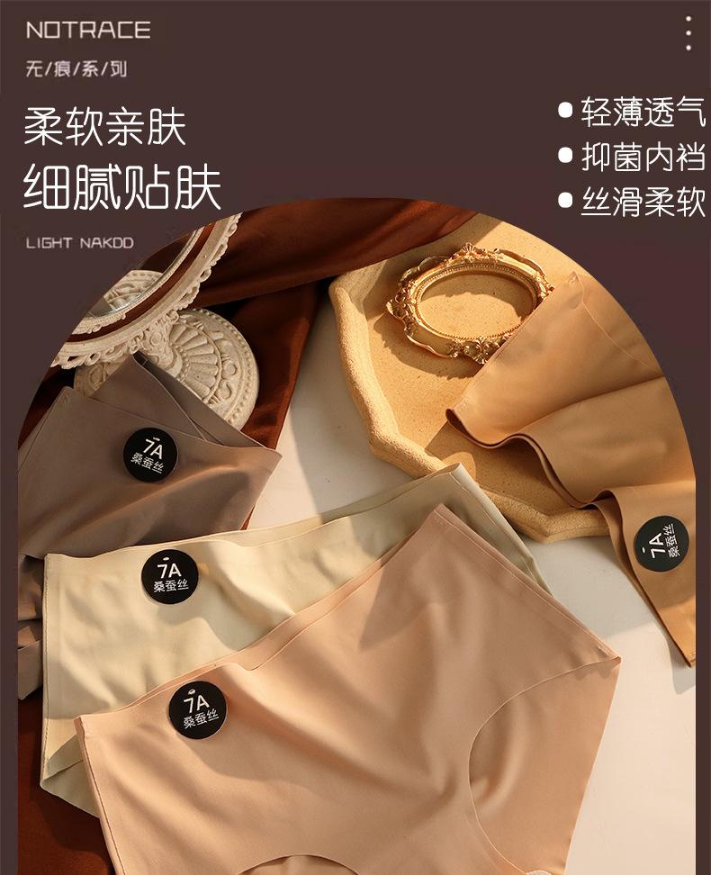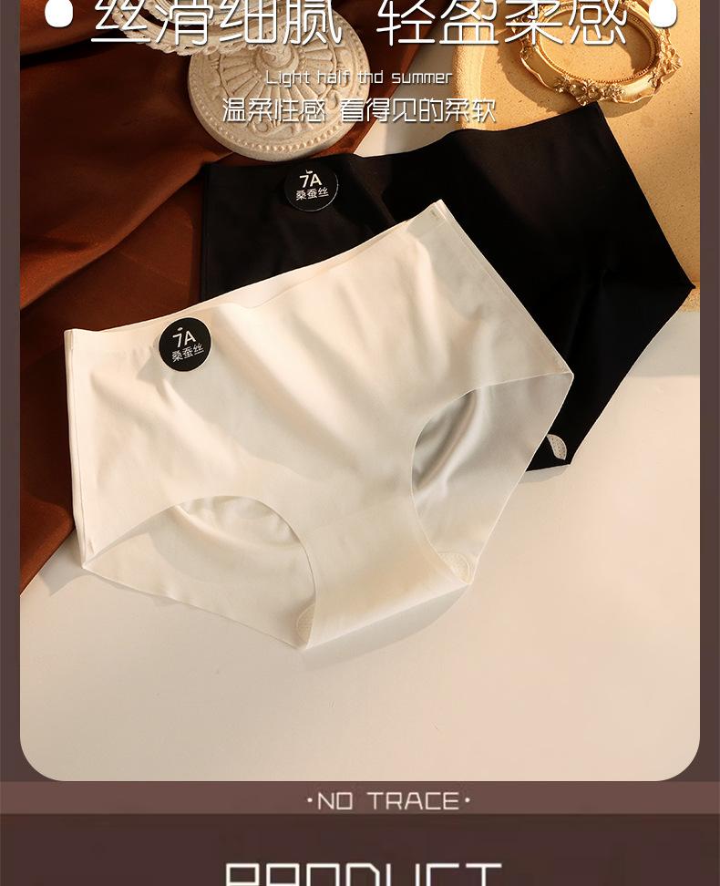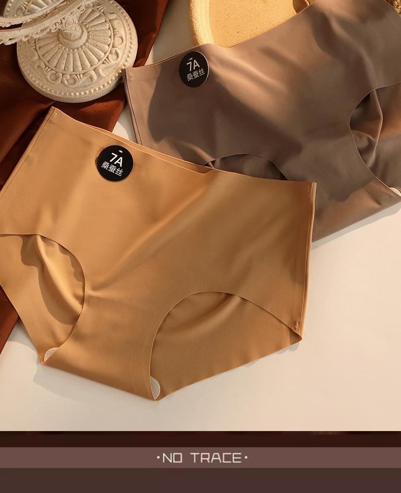 Otoño e invierno cintura sin costuras niña seda de hielo ropa interior transpirable amigable con la piel antibacteriana 7A entrepierna de seda de morera calzones simples para dama