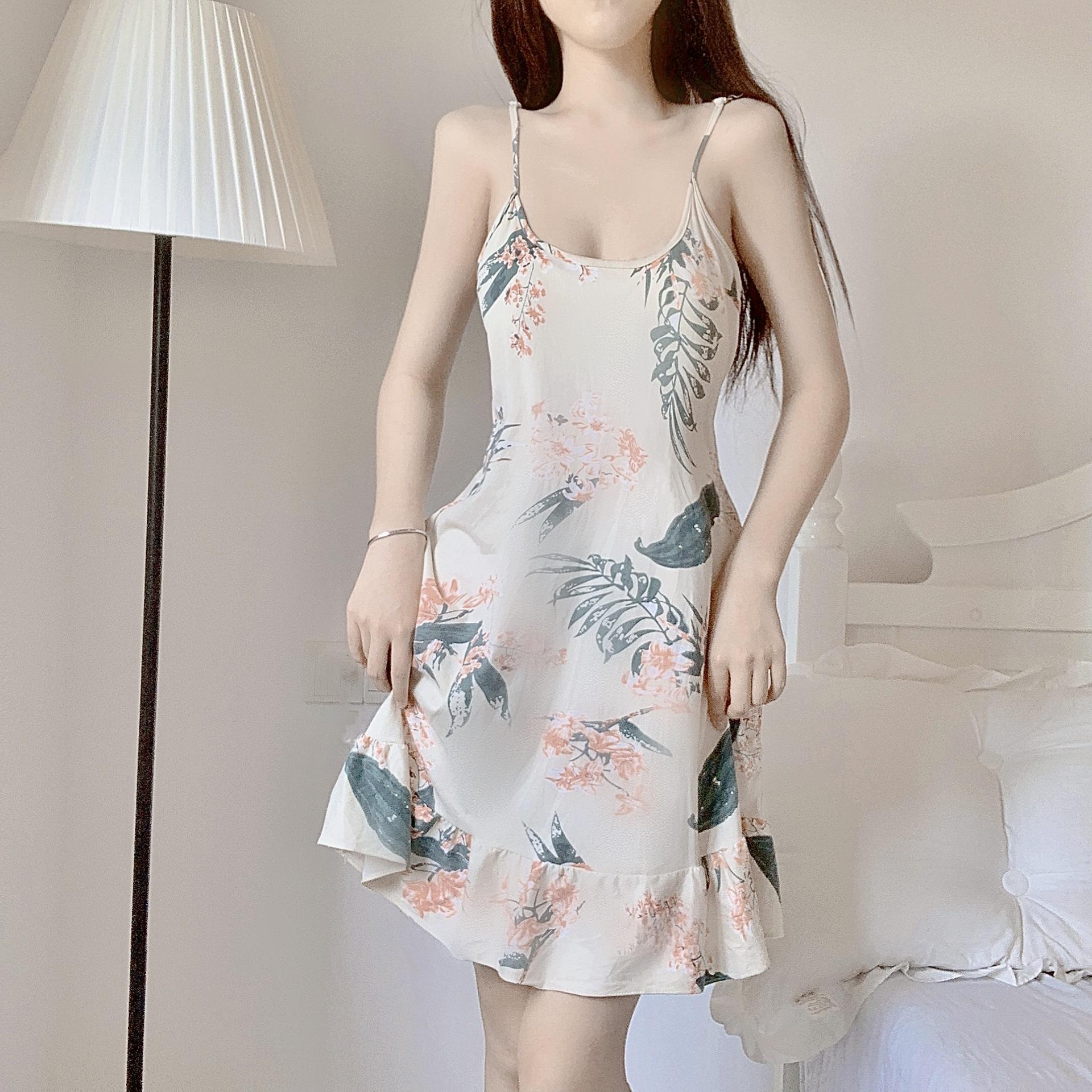 Jinxiao Lencería Sexy Pijama de Verano Fino con Almohadilla en el Pecho Camisón con Tirantes Camisón de Encaje Sexy Estilo Coreano Ropa para el Hogar