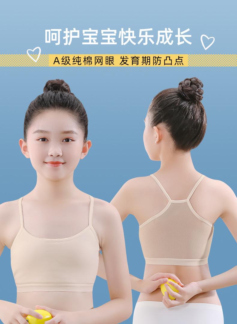 Ropa Interior de Algodón para el Período de Desarrollo de Niña Camisola Chaleco para Estudiante Femenina Sujetador de Malla Transpirable Verano Fino Ropa Interior Antiprotrusión