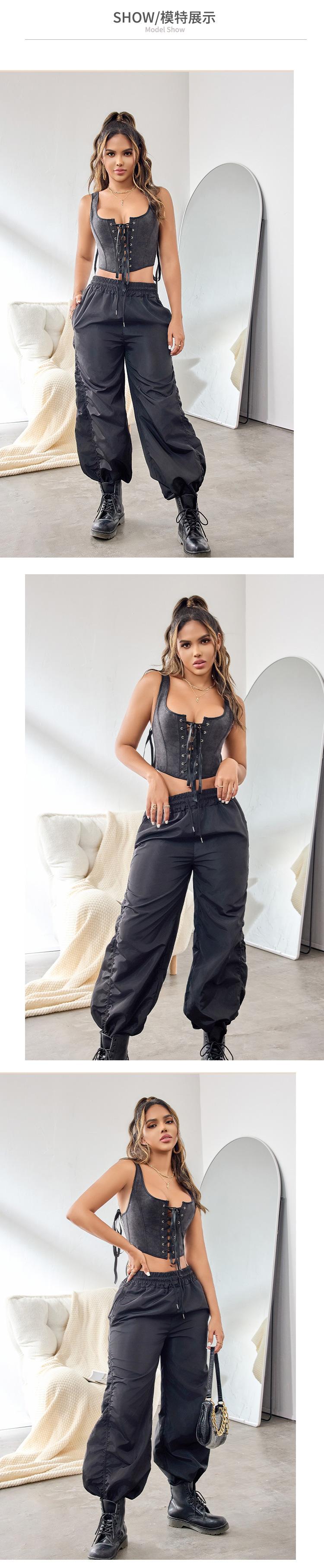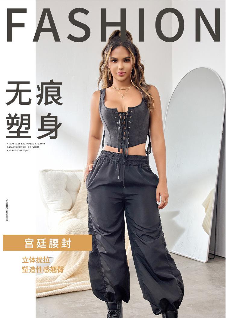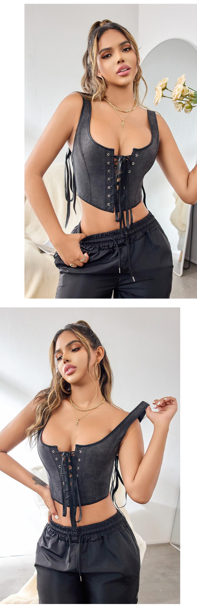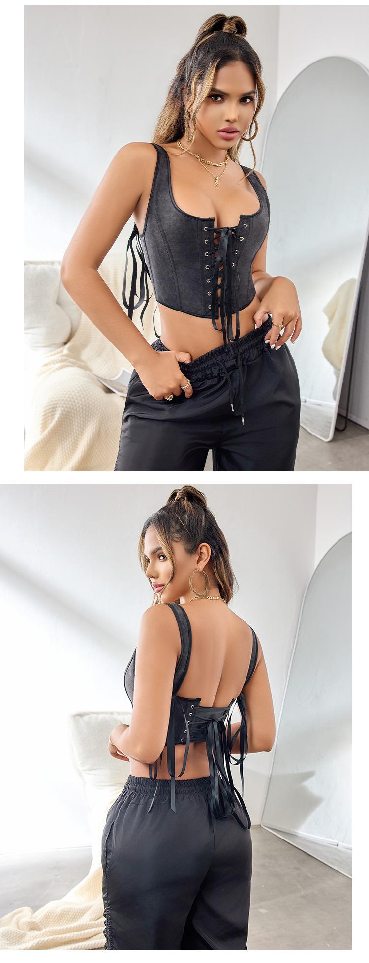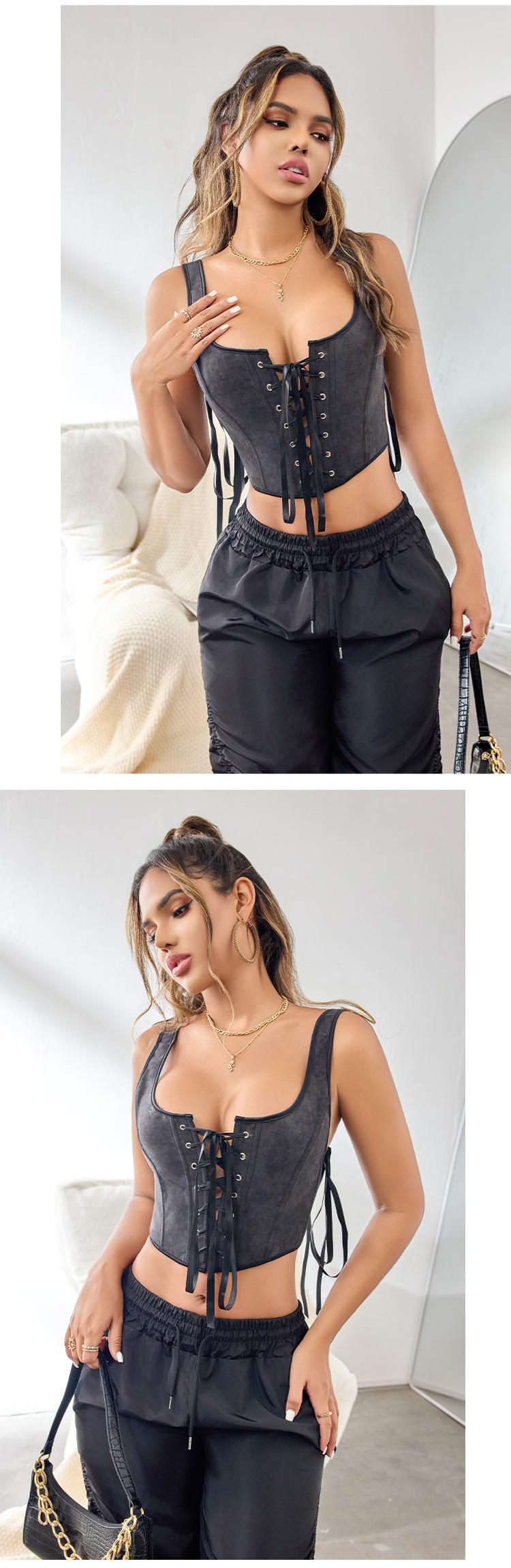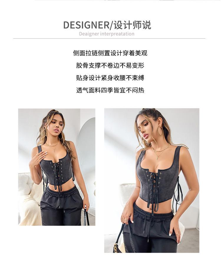 Nuevo Corsé Denim Transfronterizo con Tirantes Delanteros, Cintura Entallada, Fruncido, Mate, Top Tank que Deja el Abdomen al Descubierto, Sujetador con Ballenas, Moldeador de Cuerpo