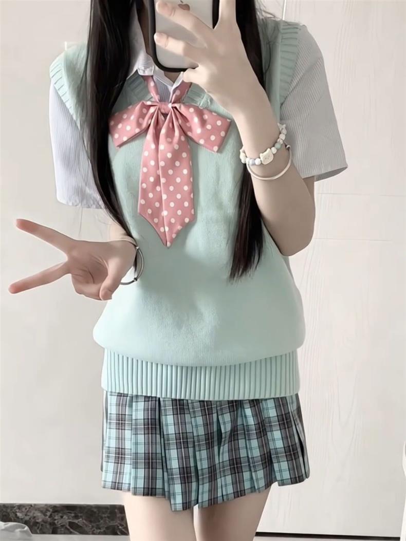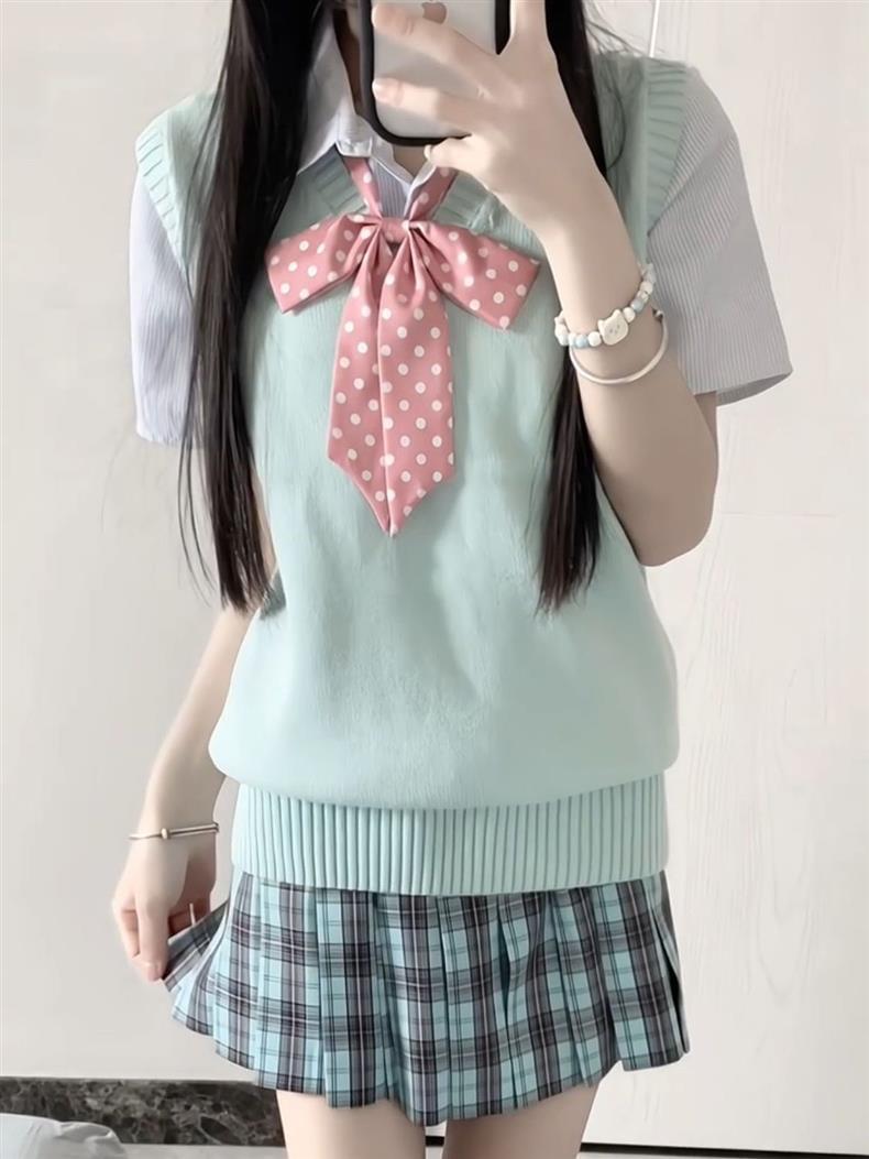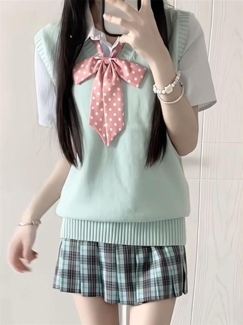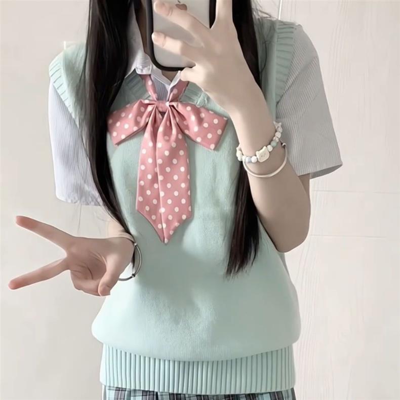 Suéter Chaleco Pulóver Uniforme JK Tejido sin Mangas Cuello en V Apilado Top Universitario Japonés