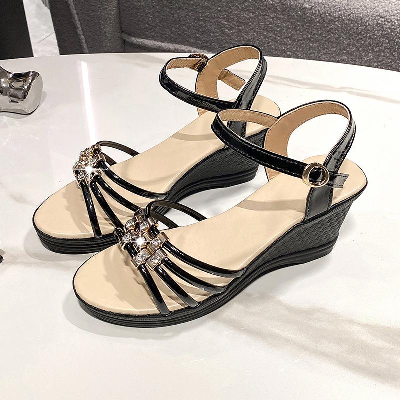 Sandalias de Cuña con Hebilla de Talla Grande para Mujer Verano Nuevas Sandalias de Boca de Pescado Estilo Coreano Versátiles para Exterior Sandalias de Suela Gruesa para Mujer