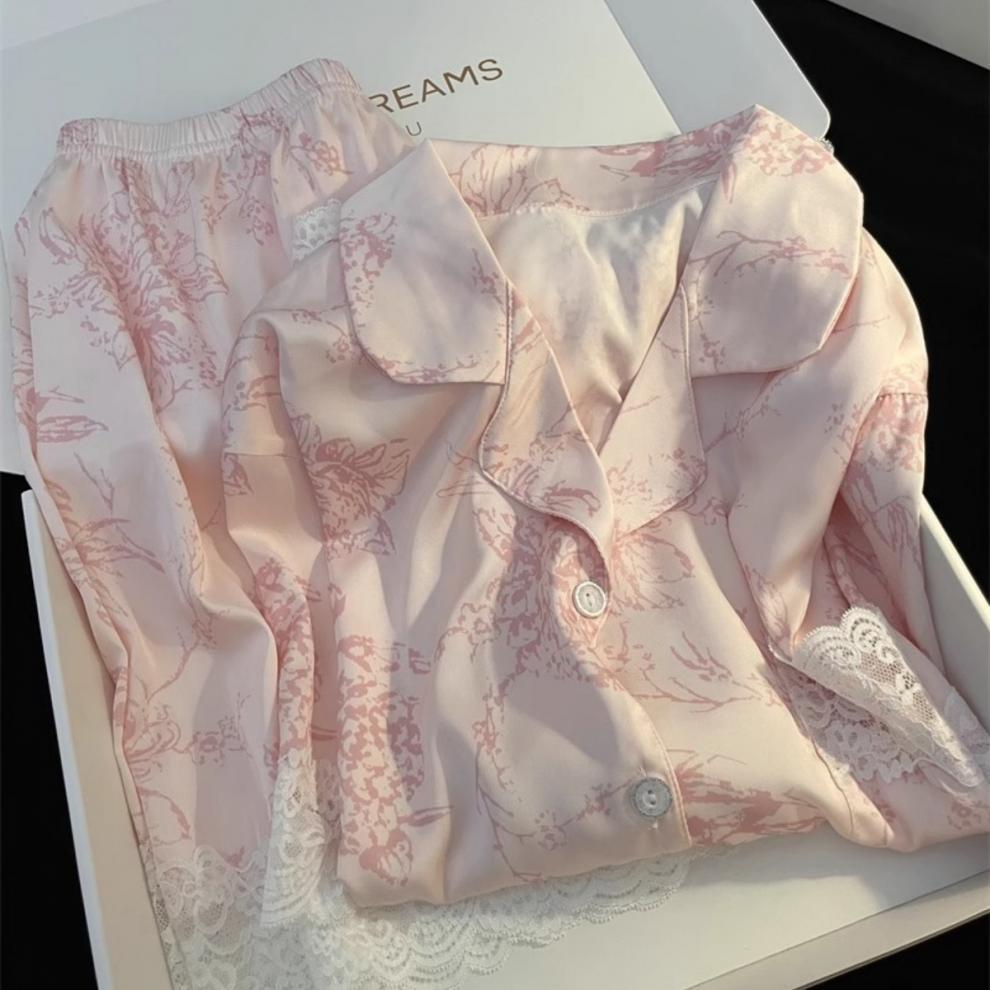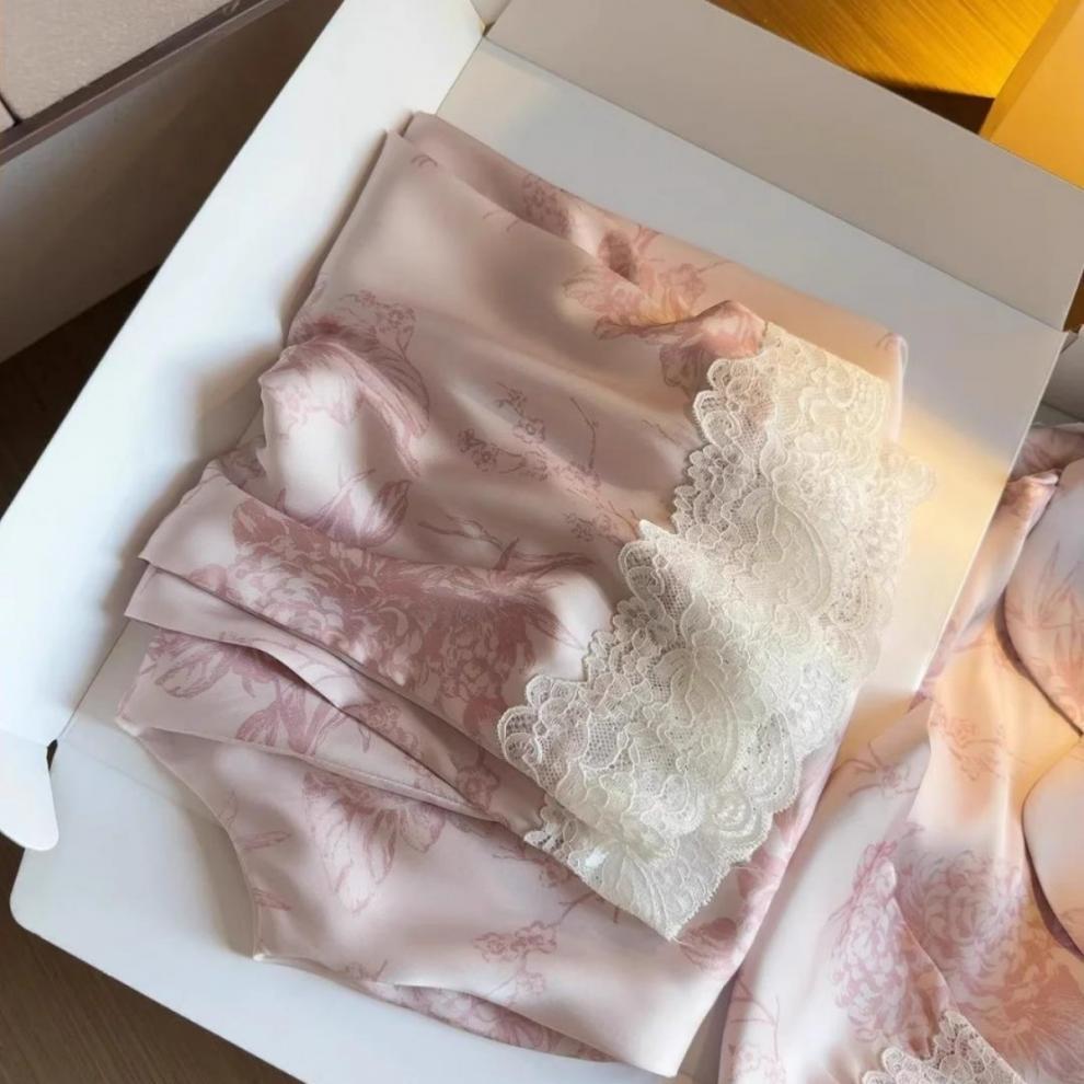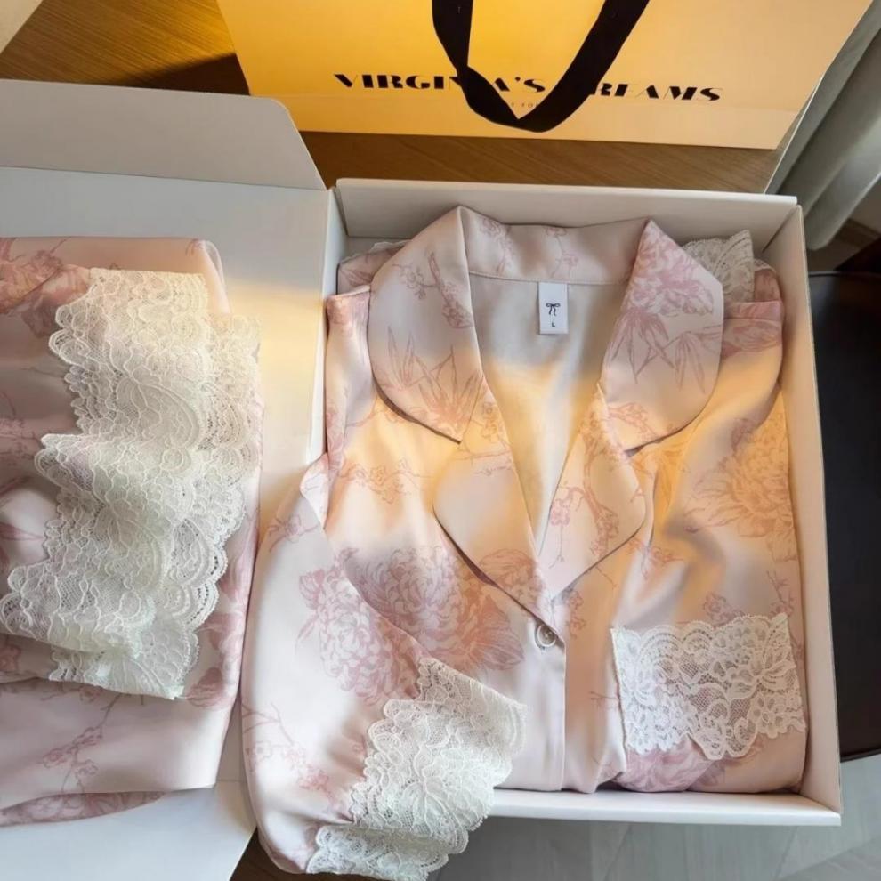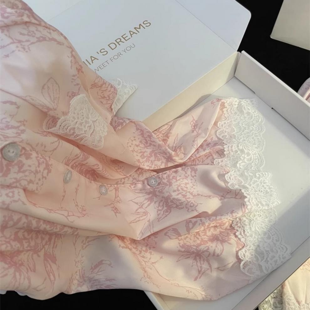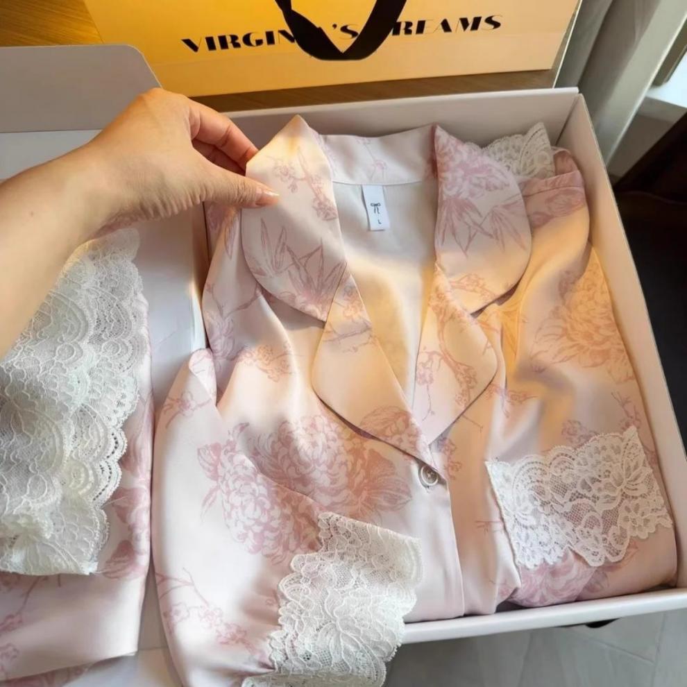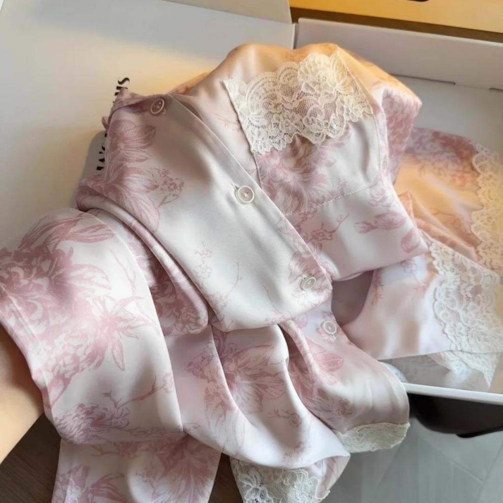 Encaje Seda de Hielo Manga Corta Shorts Pantalones Conjunto de Tres Piezas Pijama de Lujo Fresco para Mujer Ropa de Casa de Seda de Hielo para Mujer