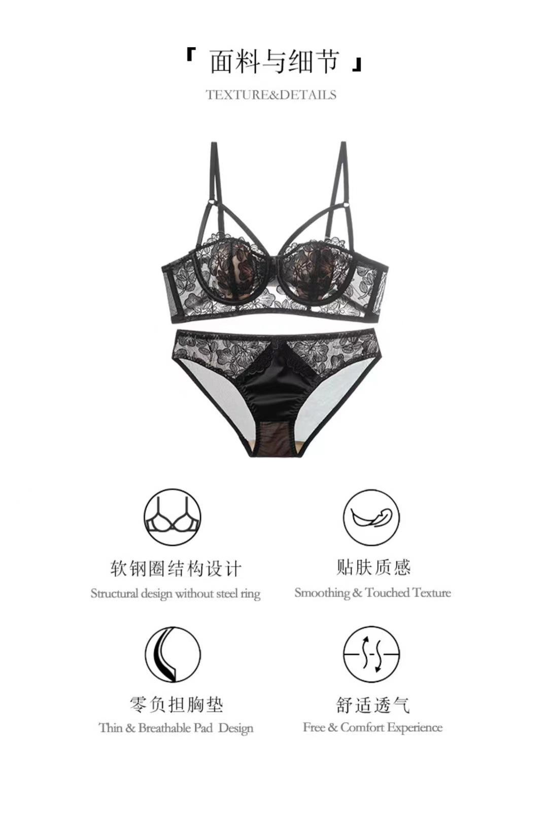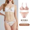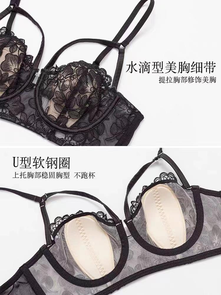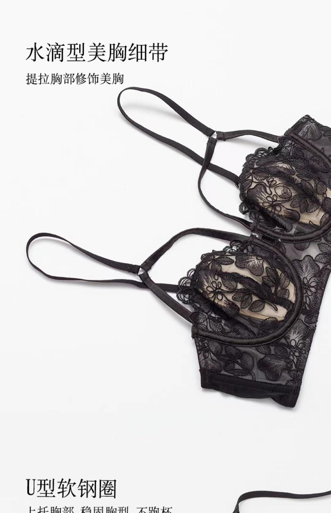 Ropa interior de estilo francés bordada pesada para mujer, sexy, con copas de orejas de conejo, encaje, push-up, con aro de acero suave, sujetador anti-flacidez.