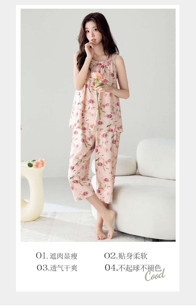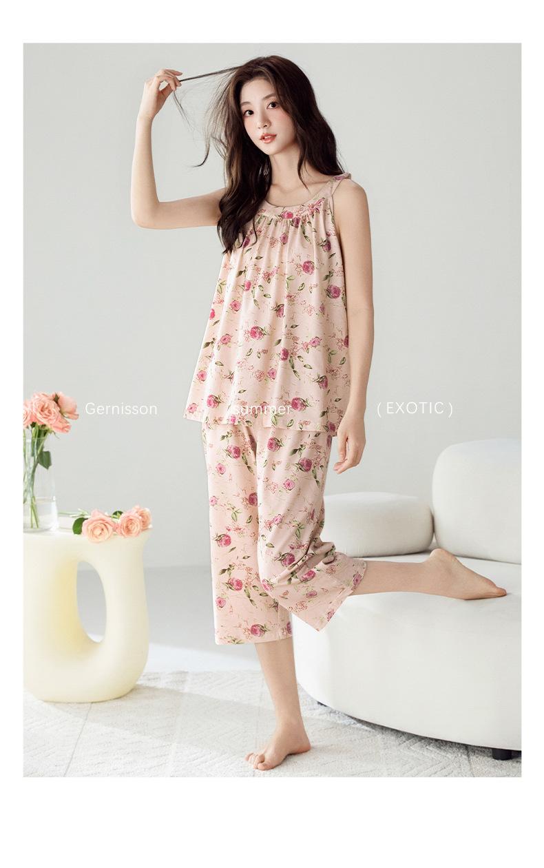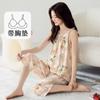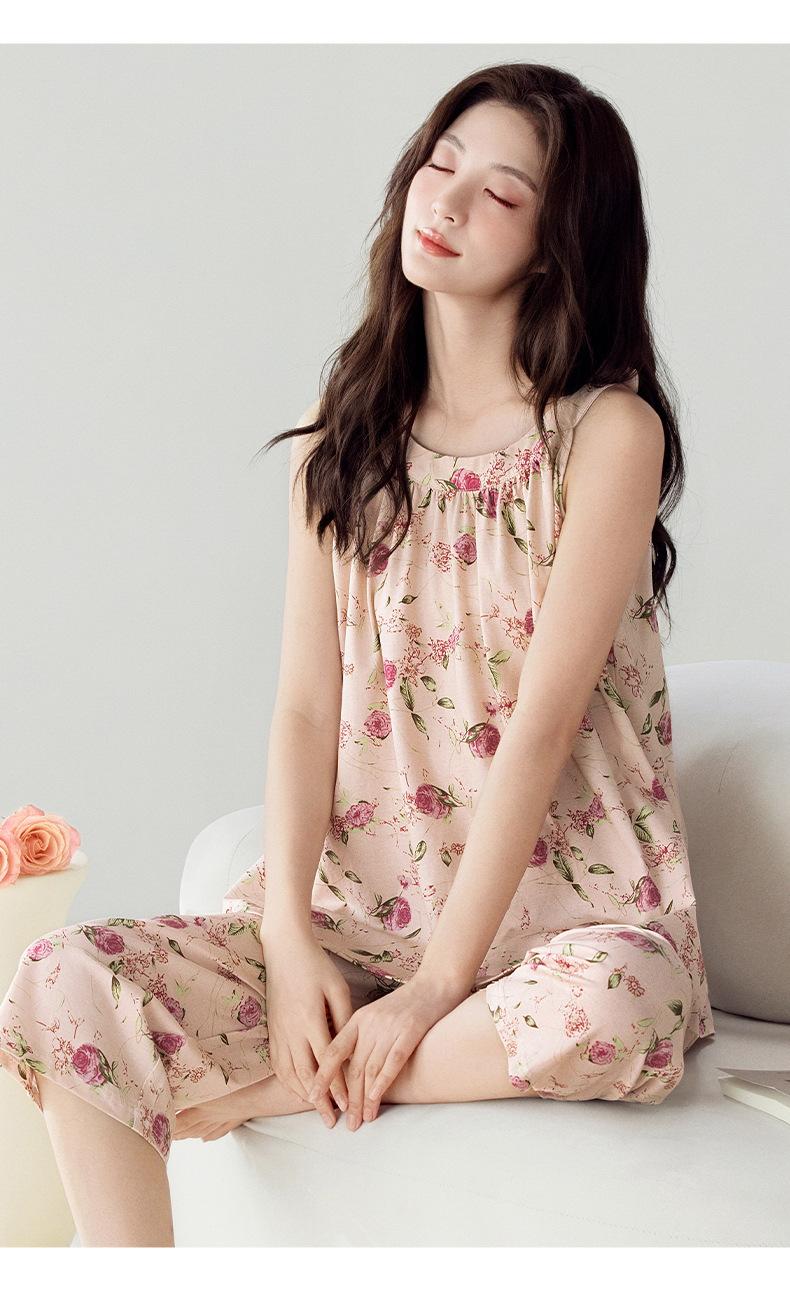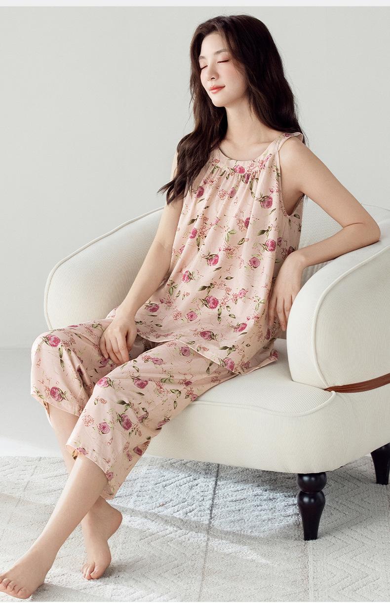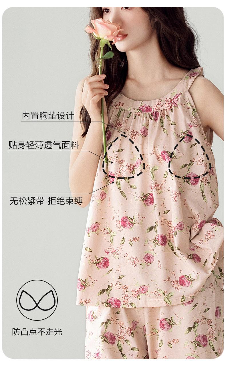 Pijama de Verano para Mujer con Almohadillas para el Busto, Chaleco de Verano sin Mangas de Algodón Nube, Pantalones Cortos, Ropa para el Hogar, Traje Fresco y Delgado