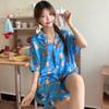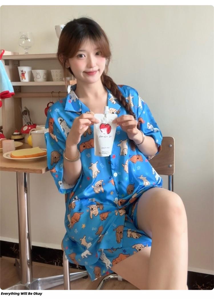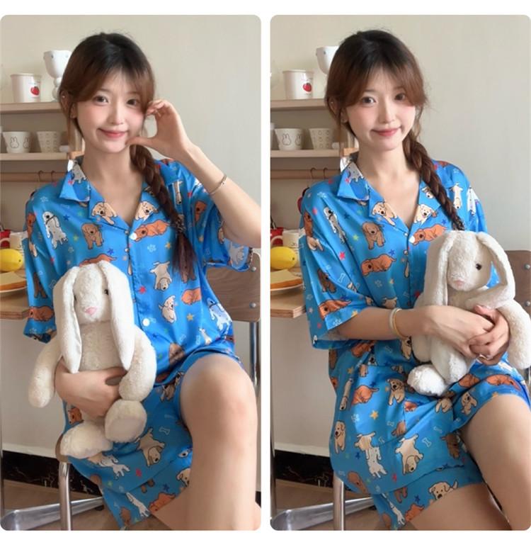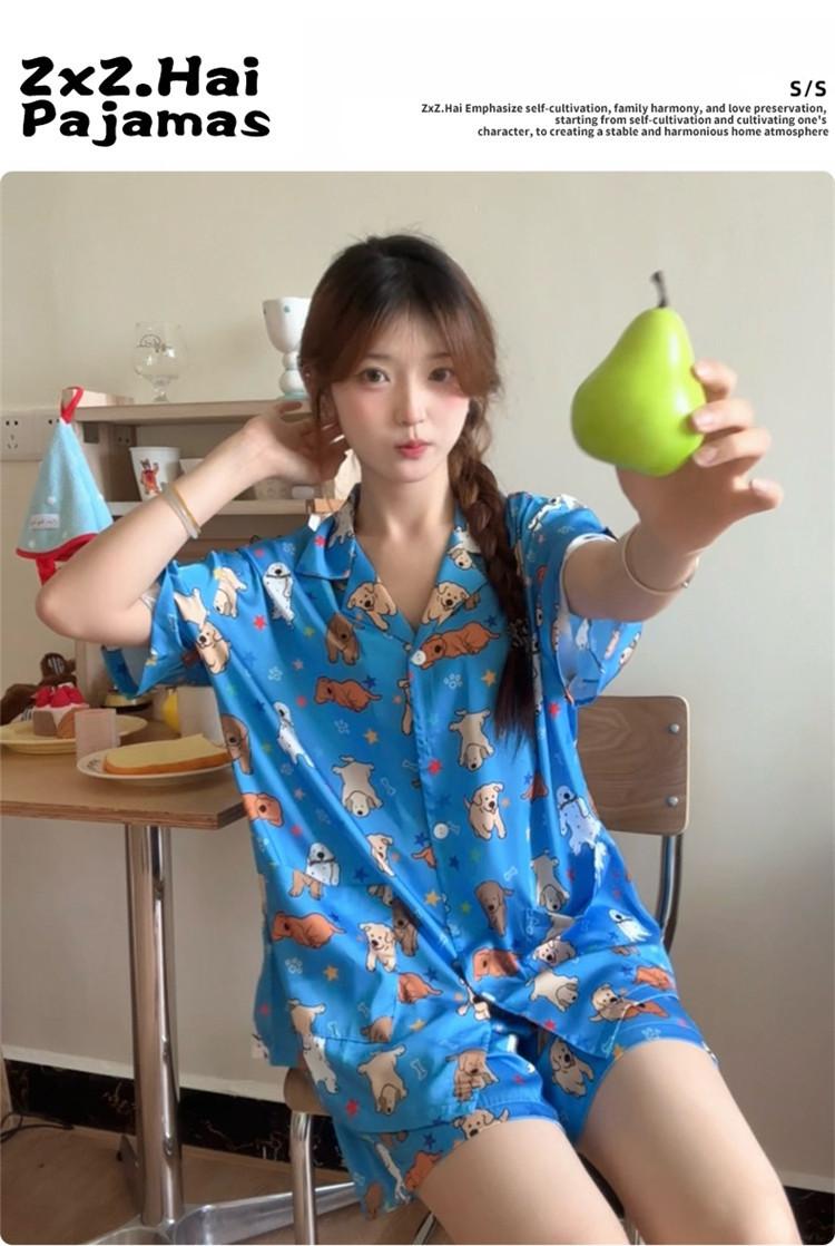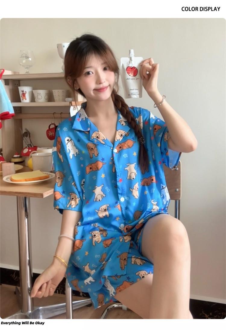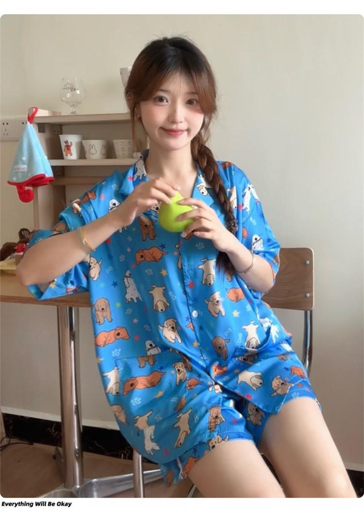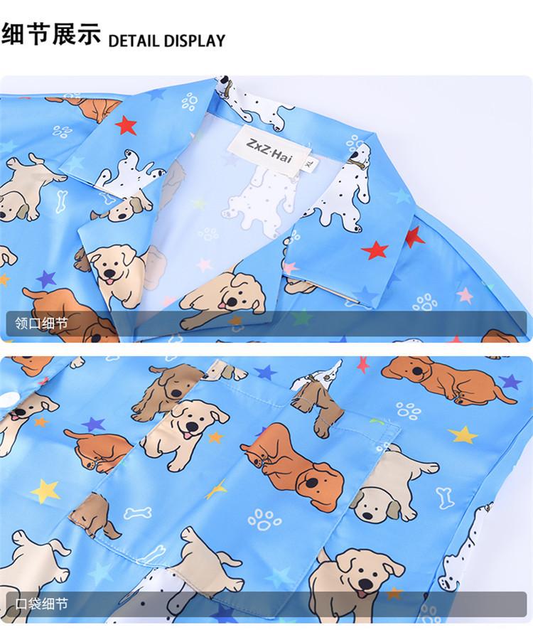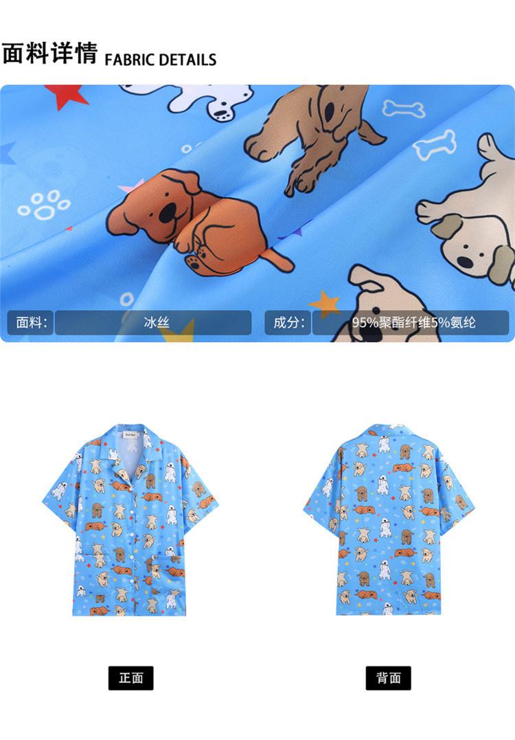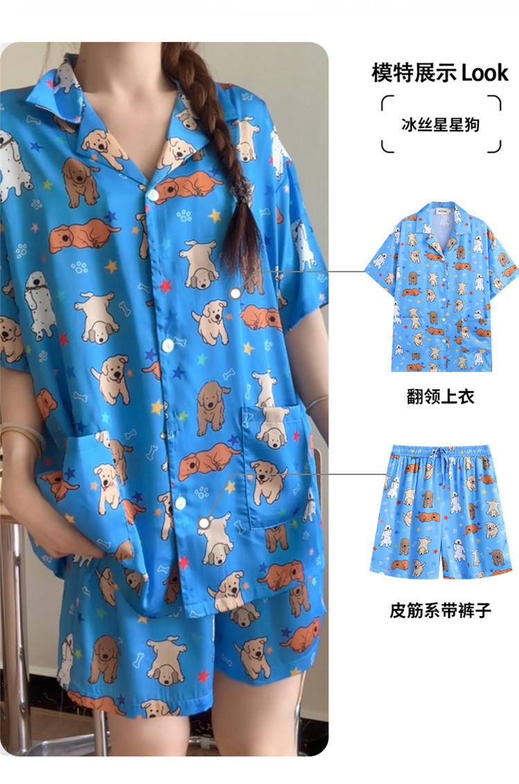 Verano Nuevo Pijama de Seda de Hielo para Perro Estrella Azul de Gama Alta Conjunto de Dos Piezas de Manga Corta Lindo Dibujo Animado Pareja Ropa de Dormir