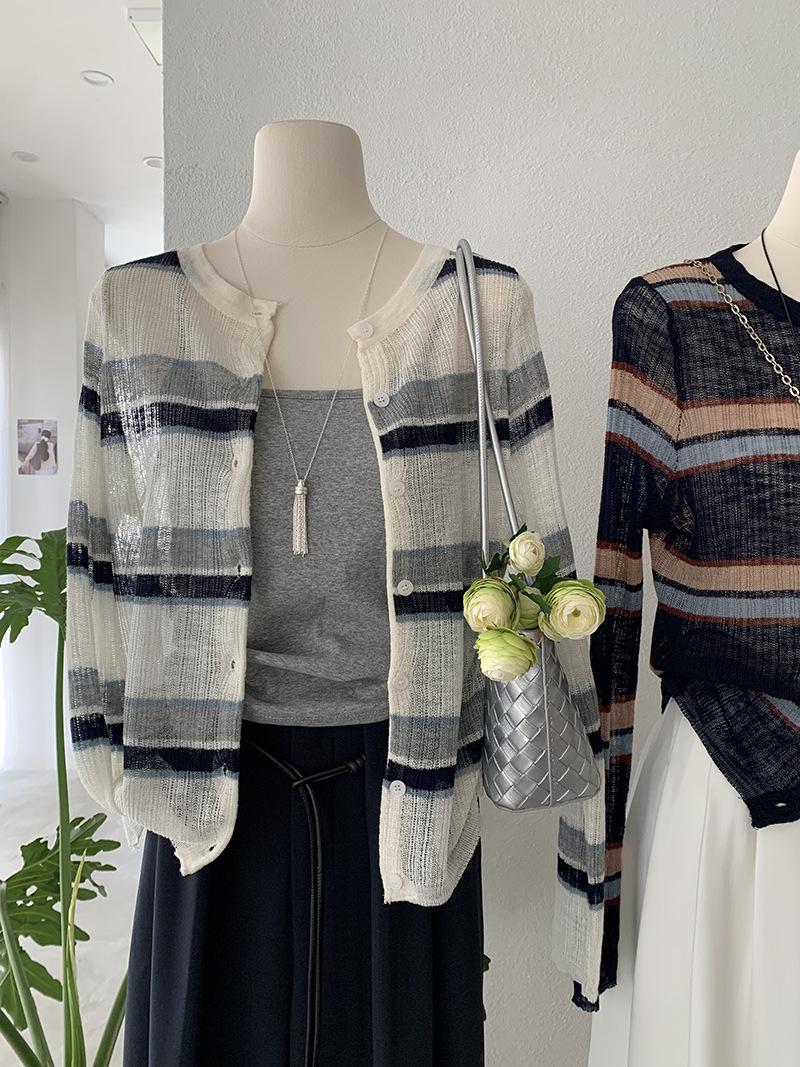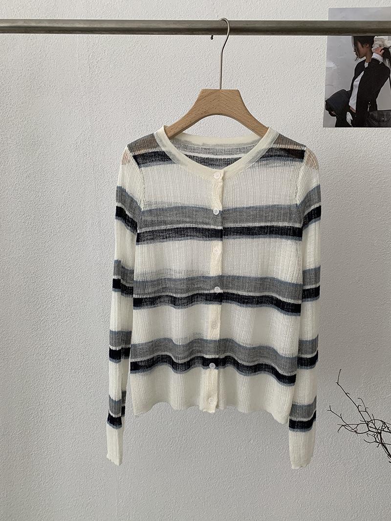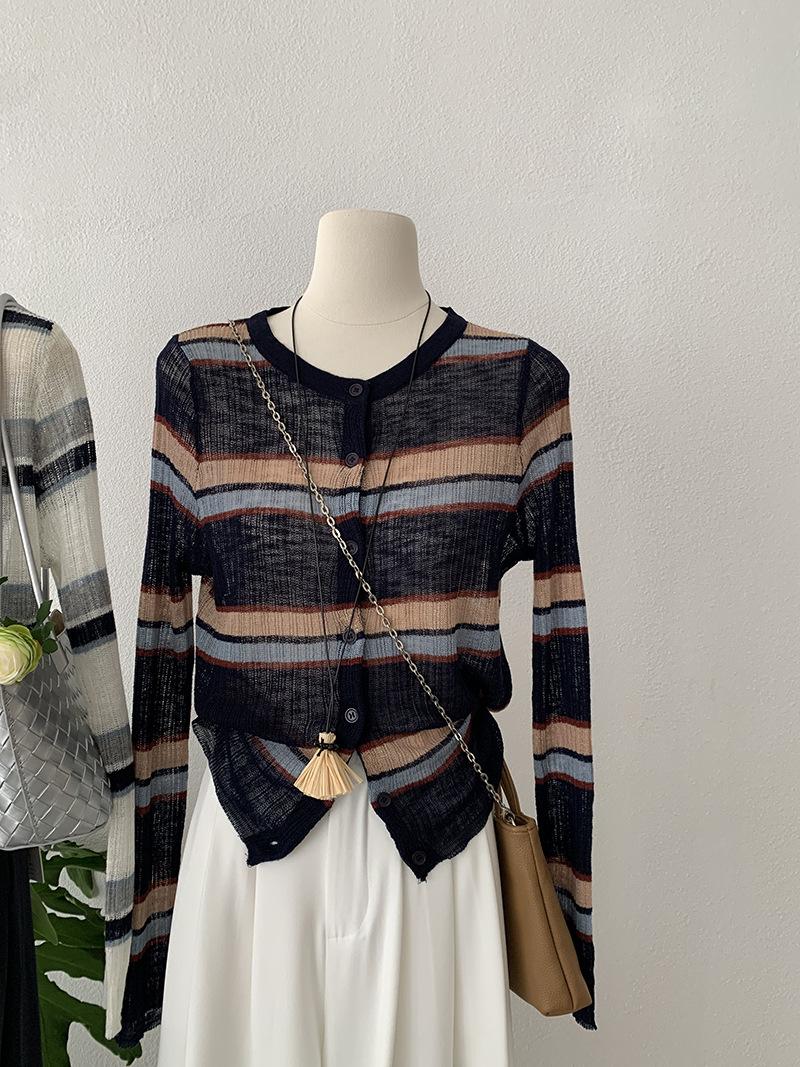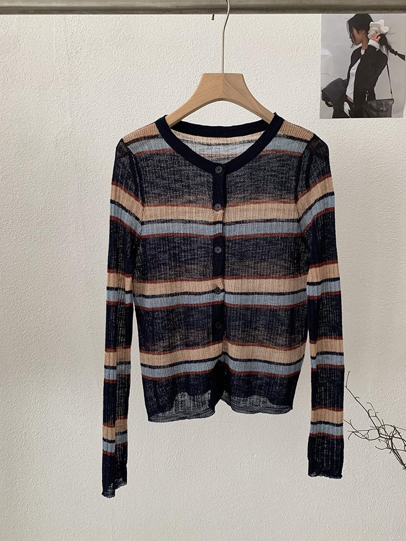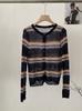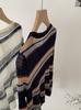 Oumaile Cárdigan Top de Punto Fino de Manga Larga con Cuello Redondo a Rayas y Bloques de Color Retro para Mujer 4262
