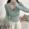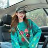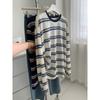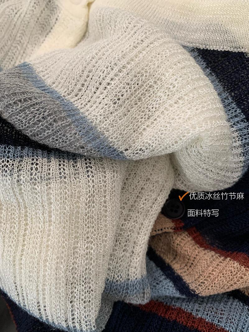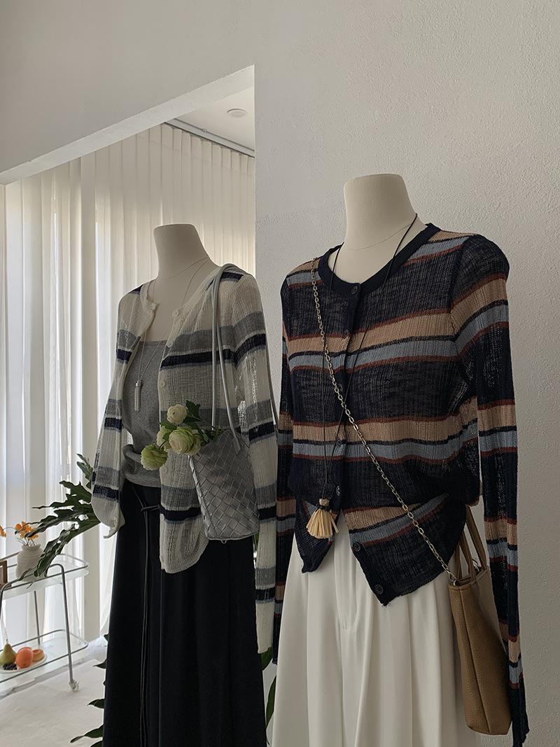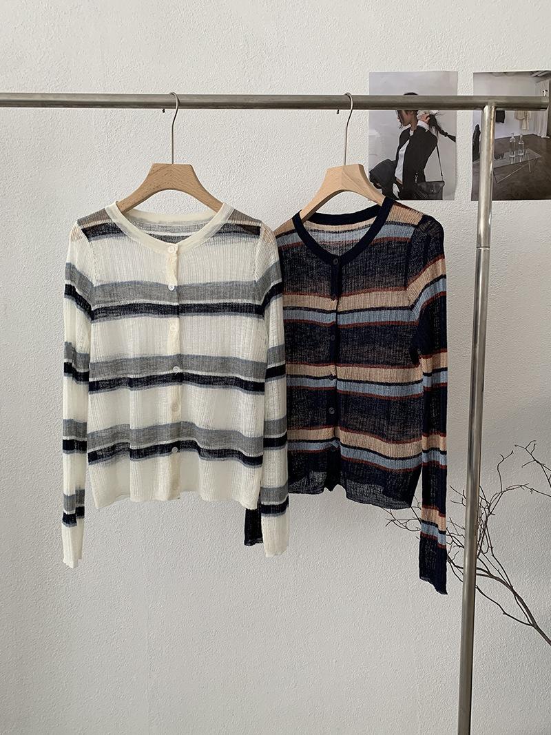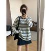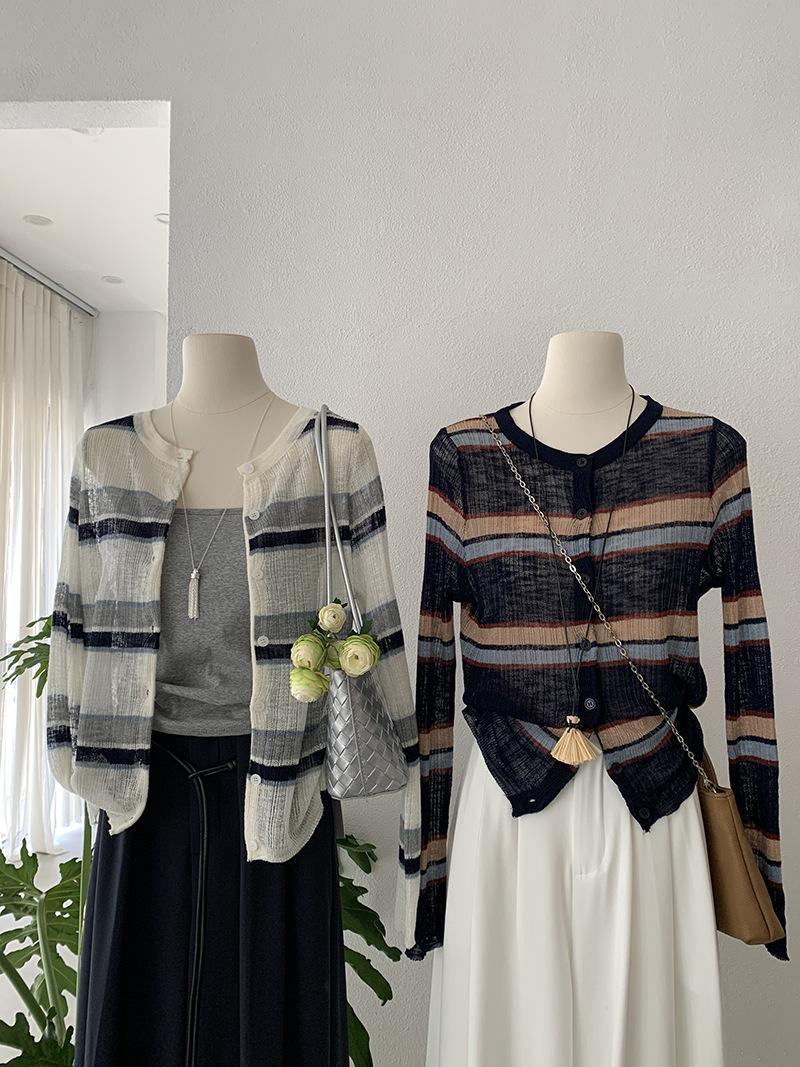 Oumaile Cárdigan Top de Punto Fino de Manga Larga con Cuello Redondo a Rayas y Bloques de Color Retro para Mujer 4262