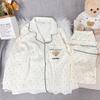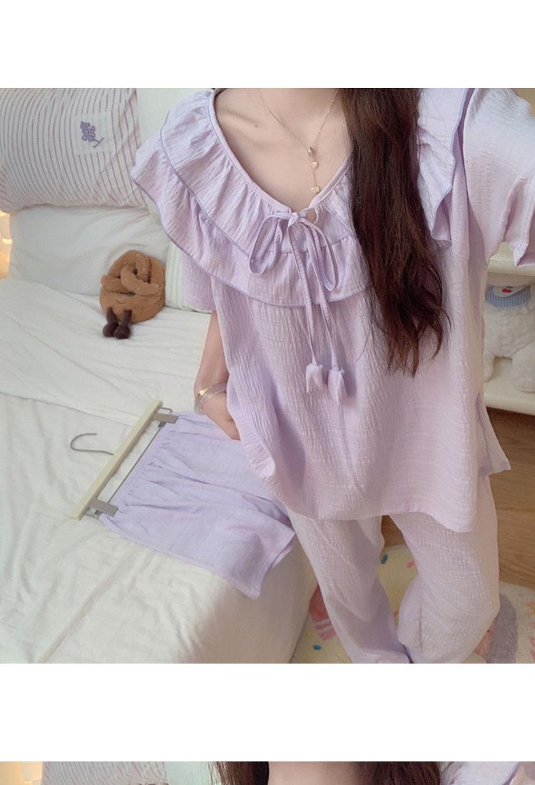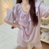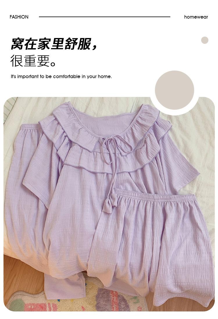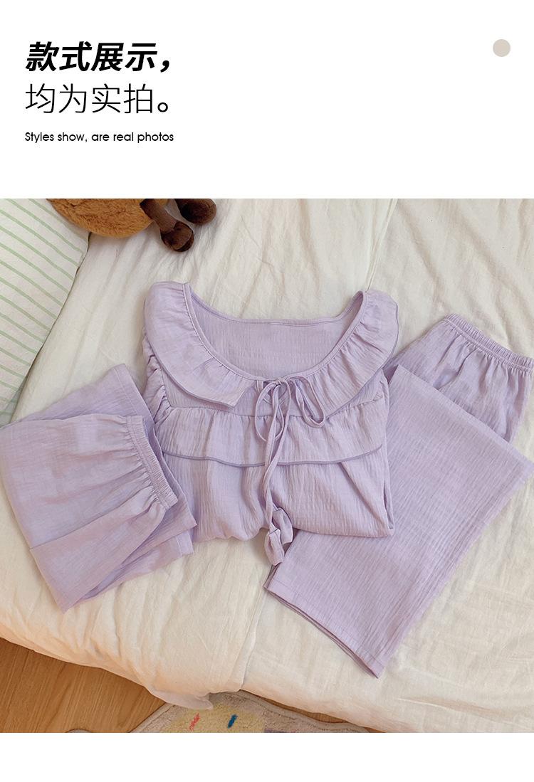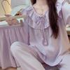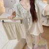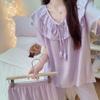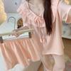 Pijama de Manga Corta Estilo Princesa para Mujer Verano 2025 Nuevo Algodón Nube Dulce Delgado Ropa para el Hogar Traje de Tres Piezas Verano
