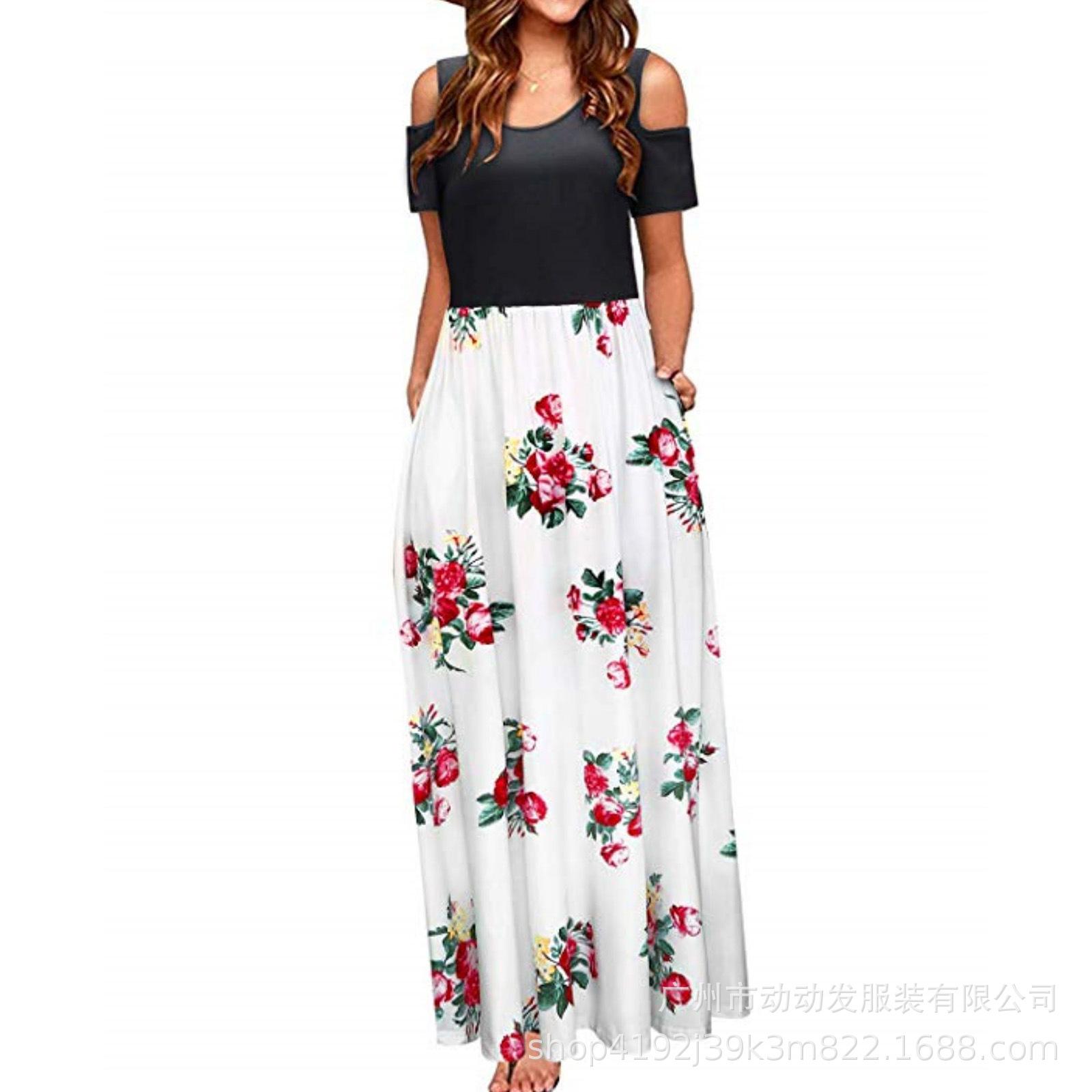 Amazon transfronterizo 2024 Primavera y Verano Nuevo Vestido Sexy de Hombro con Estampado Multicolor para Mujer