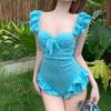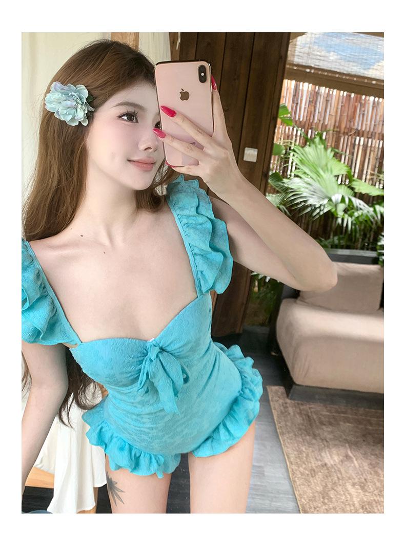 Traje de baño para mujer 2025 Nuevo de una pieza que cubre la carne, con efecto adelgazante, para busto pequeño, push-up con soporte de acero, conservador y hermoso, sexy para aguas termales