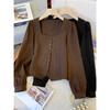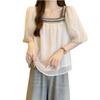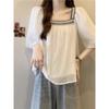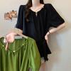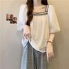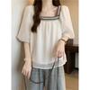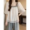 Camiseta para Bebé de Verano Estilo Suave Cuello Cuadrado Cubriendo Vientre y Look Adelgazante Top Talla Grande Camisa de Chifón de Manga Farol Francesa para Mujer
