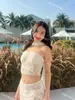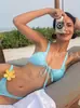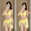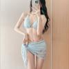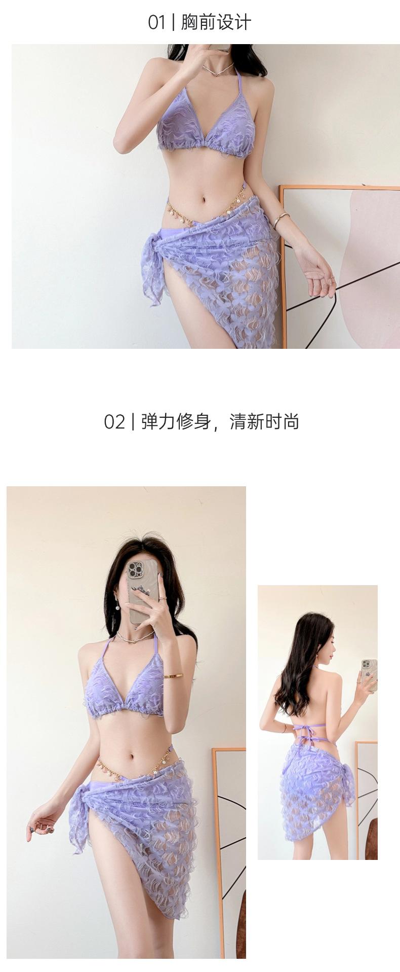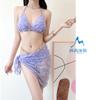 Traje de baño sexy ajustado de tres piezas de verano europeo y americano para mujer, estilo Ins, bikini popular, traje de baño morado