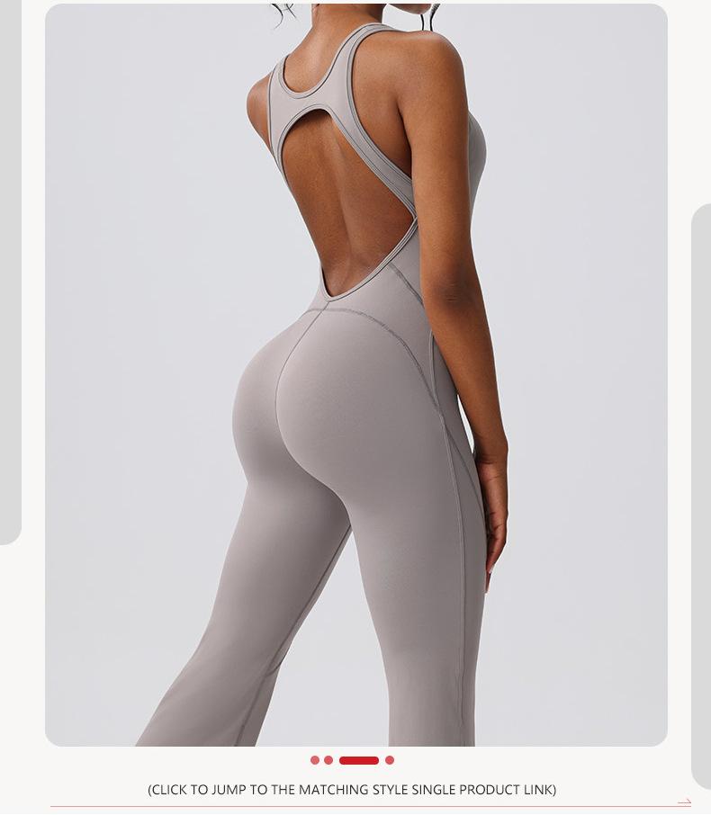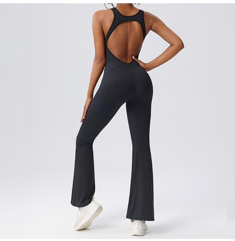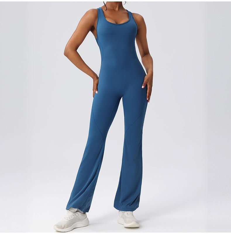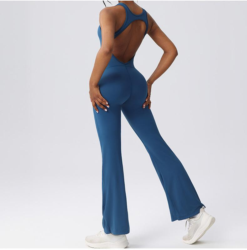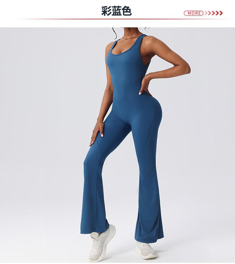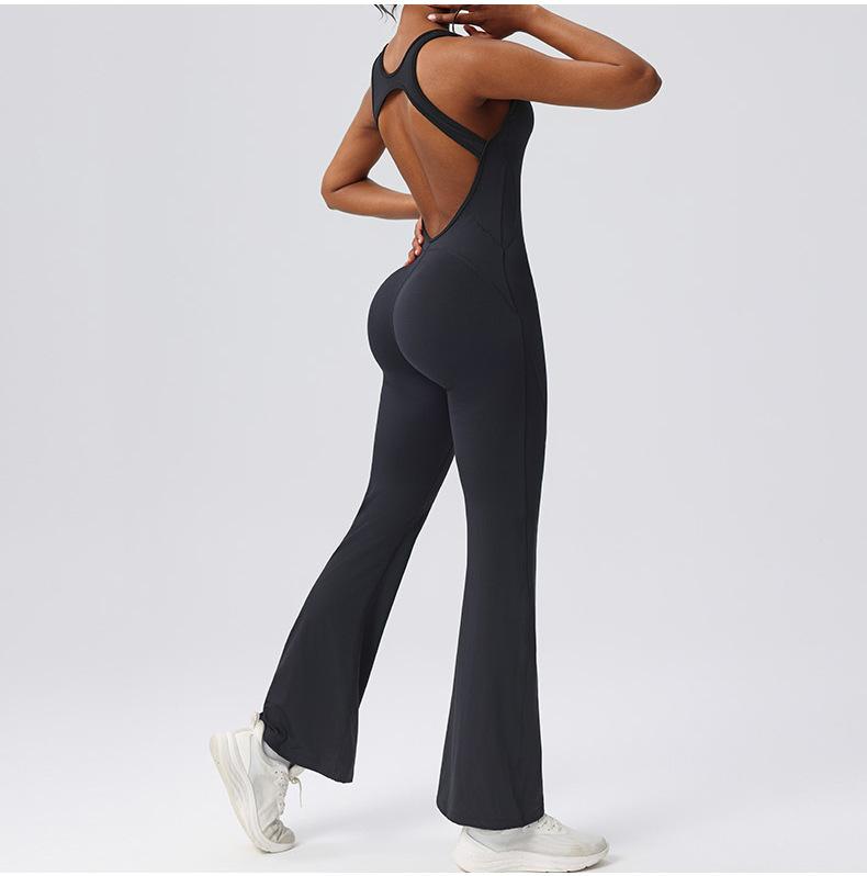 Ropa de Yoga de una pieza transfronteriza de pierna ancha adelgazante para espalda, ropa deportiva de fitness europea y americana para mujer