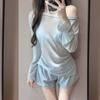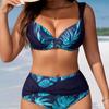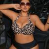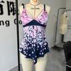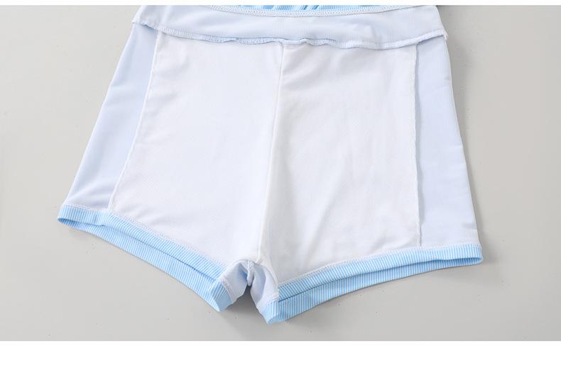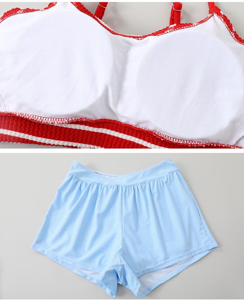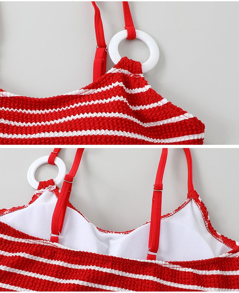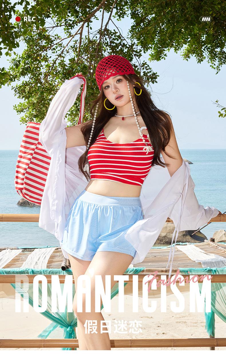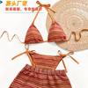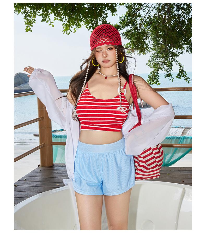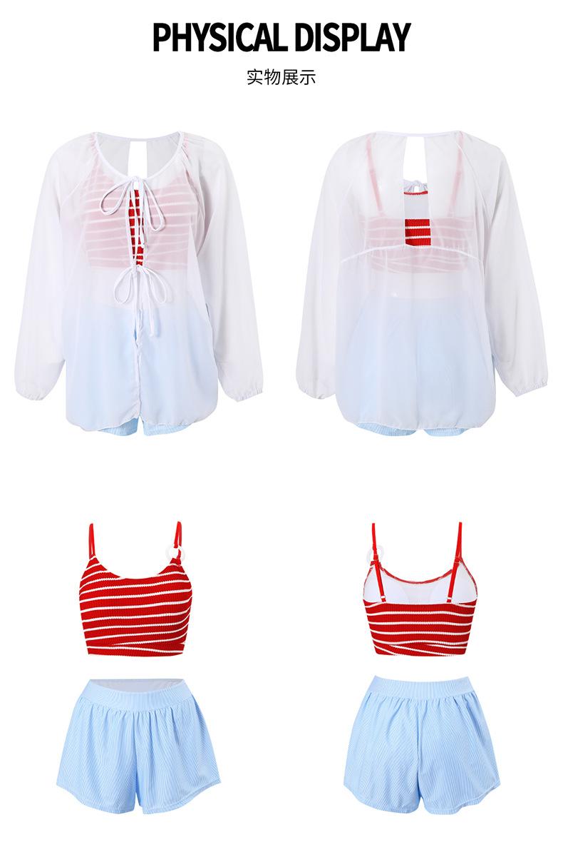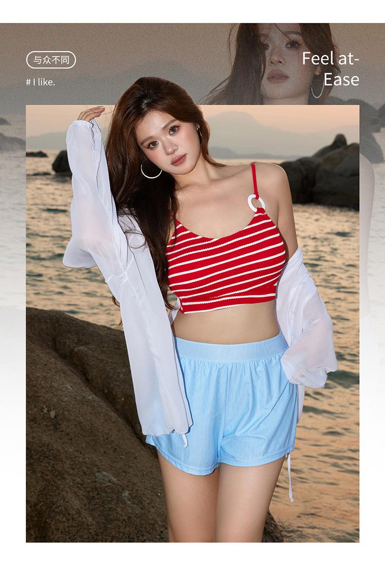 2025 Nuevo Traje de Baño de Cuatro Piezas Talla Grande con Protección Solar Pantalón de Playa Traje de Baño a Rayas para Mujer