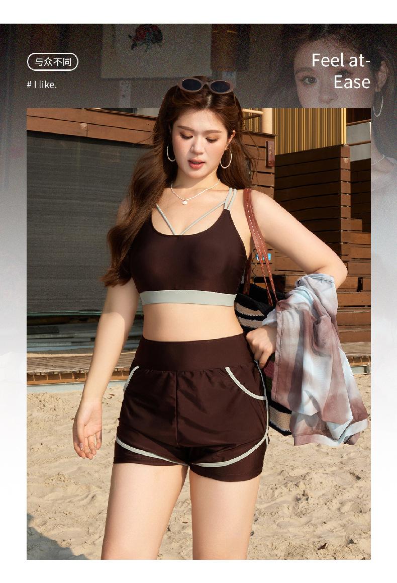 Traje de Baño para Mujer 2025 Nuevo Talla Grande Dividido Bóxer Deportivo Estudiante Conservador Gordo mm 100kg Traje de Baño Deportivo de Manga Larga