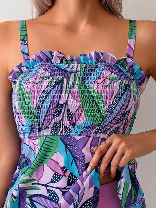 Traje de Baño de Aguas Termales Estampado Nuevo Europeo y Americano 2025 Amazon Transfronterizo Estampado Bóxer Conservador Cubre Vientre Tankini