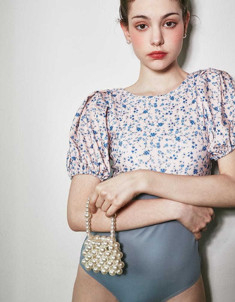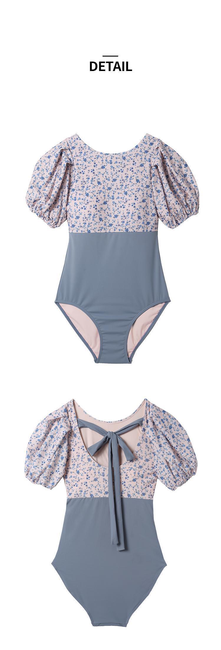 Traje de baño para mujer 2023 Estilo coreano ins Nueva moda Floral Manga abullonada Espalda hermosa Pecho pequeño Cubre vientre Adelgazante Traje de baño de una pieza