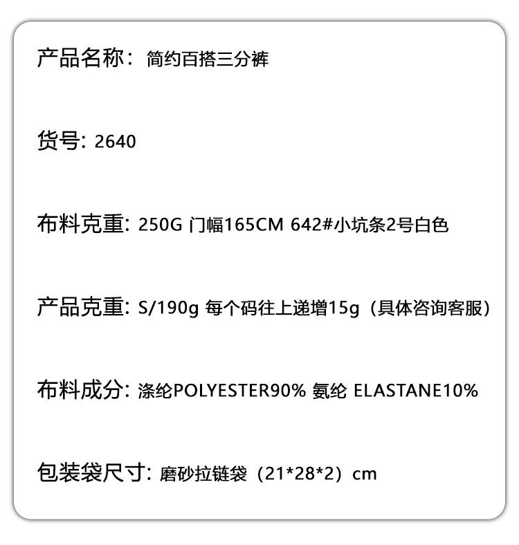 S 2640 simple and versatile three-quarter pants