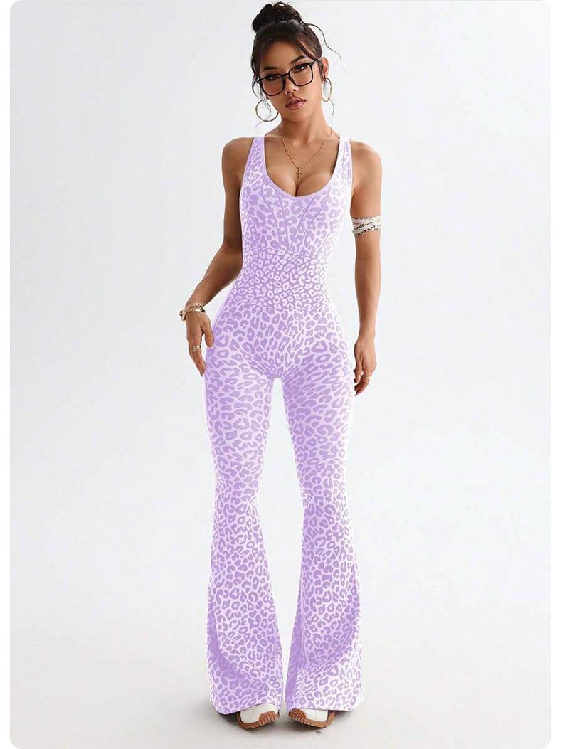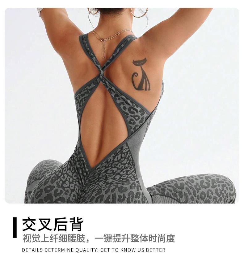 Nuevo Traje de Yoga Enterizo Estampado de Leopardo con Espalda Cruzada Europea y Americana para Mujer, Fitness, Sin Mangas