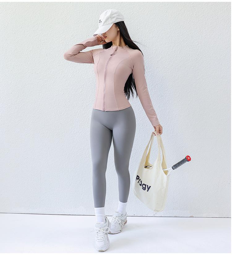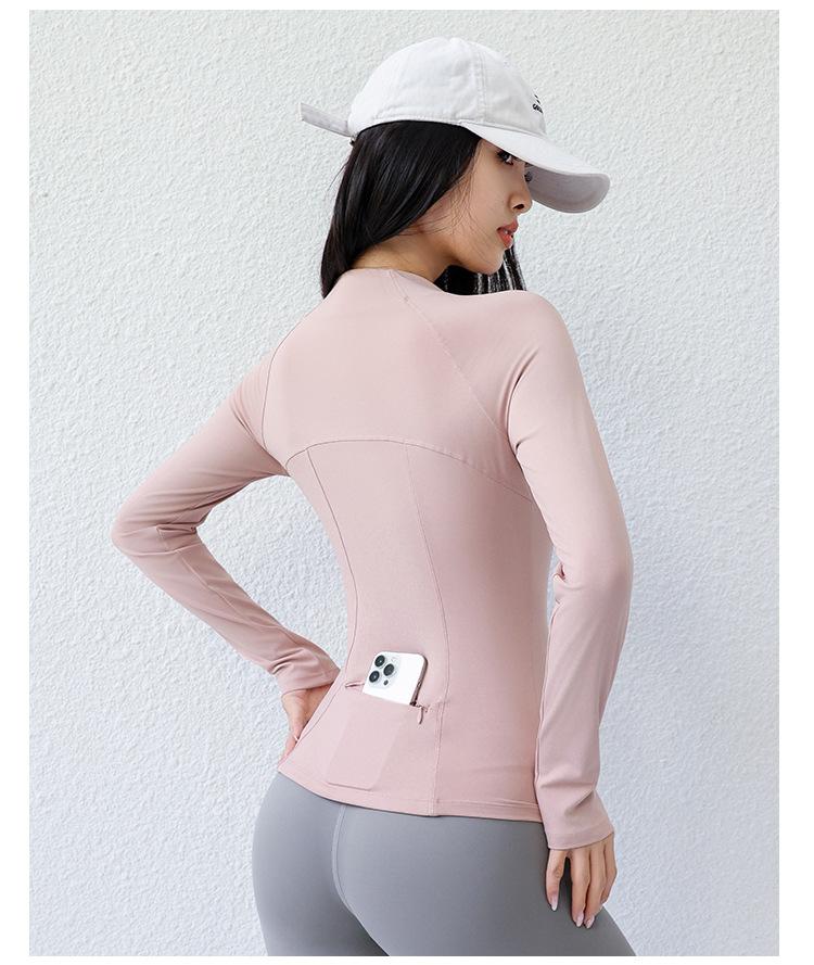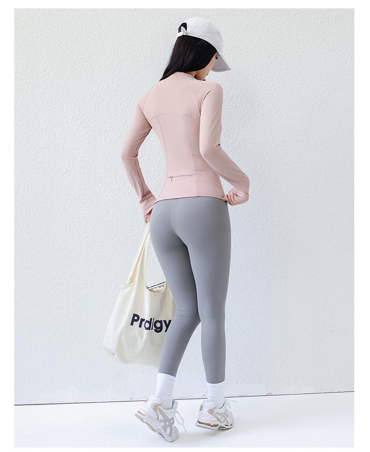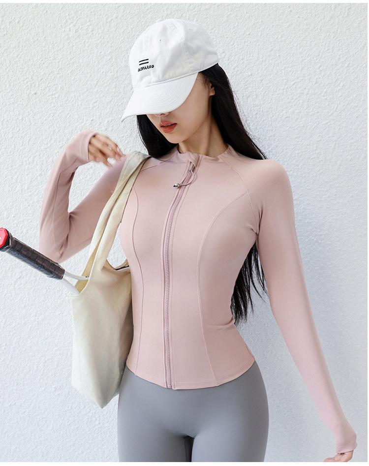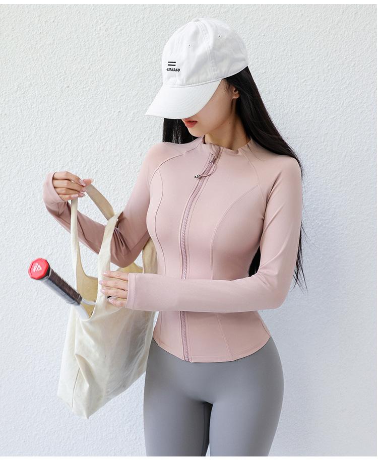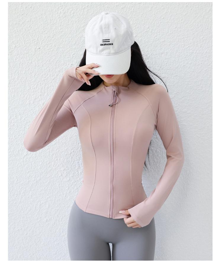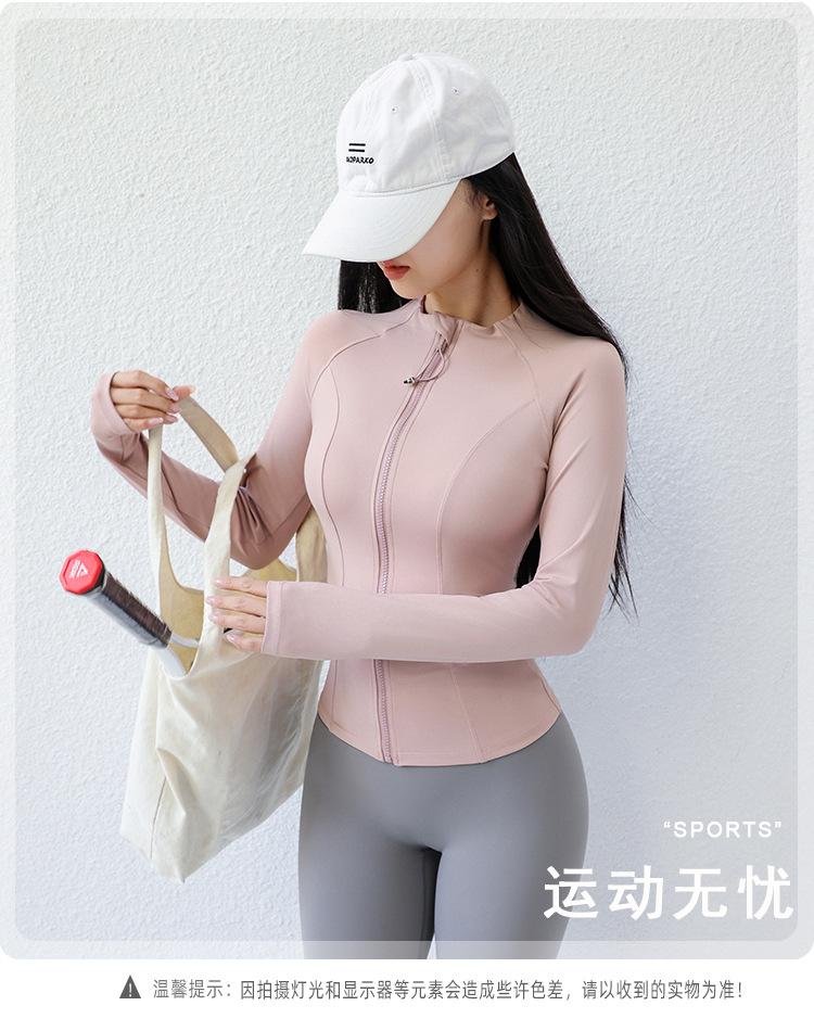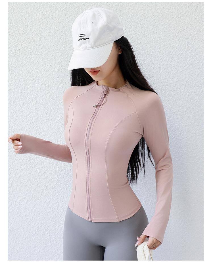 Ropa de Yoga para Mujer Estilo Verano Chaqueta con Cierre Top Deportivo Ajustado Manga Larga Ropa Exterior para Correr Entrenamiento Profesional Fitness