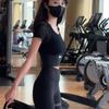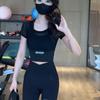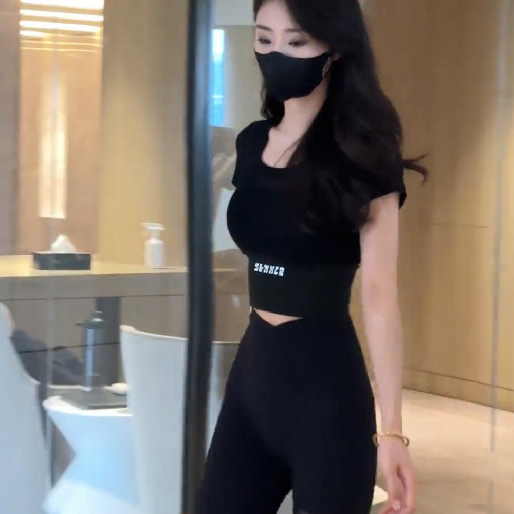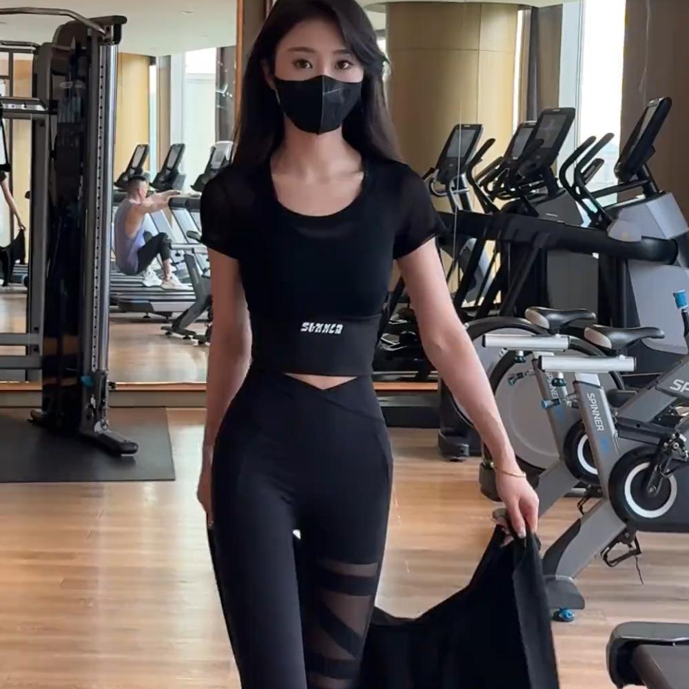 Conjunto de Pantalones de Yoga de Verano para Mujer Delgados Deportivos para Exterior Correr Secado Rápido Top Pilates Entrenamiento Manga Corta Ropa de Fitness