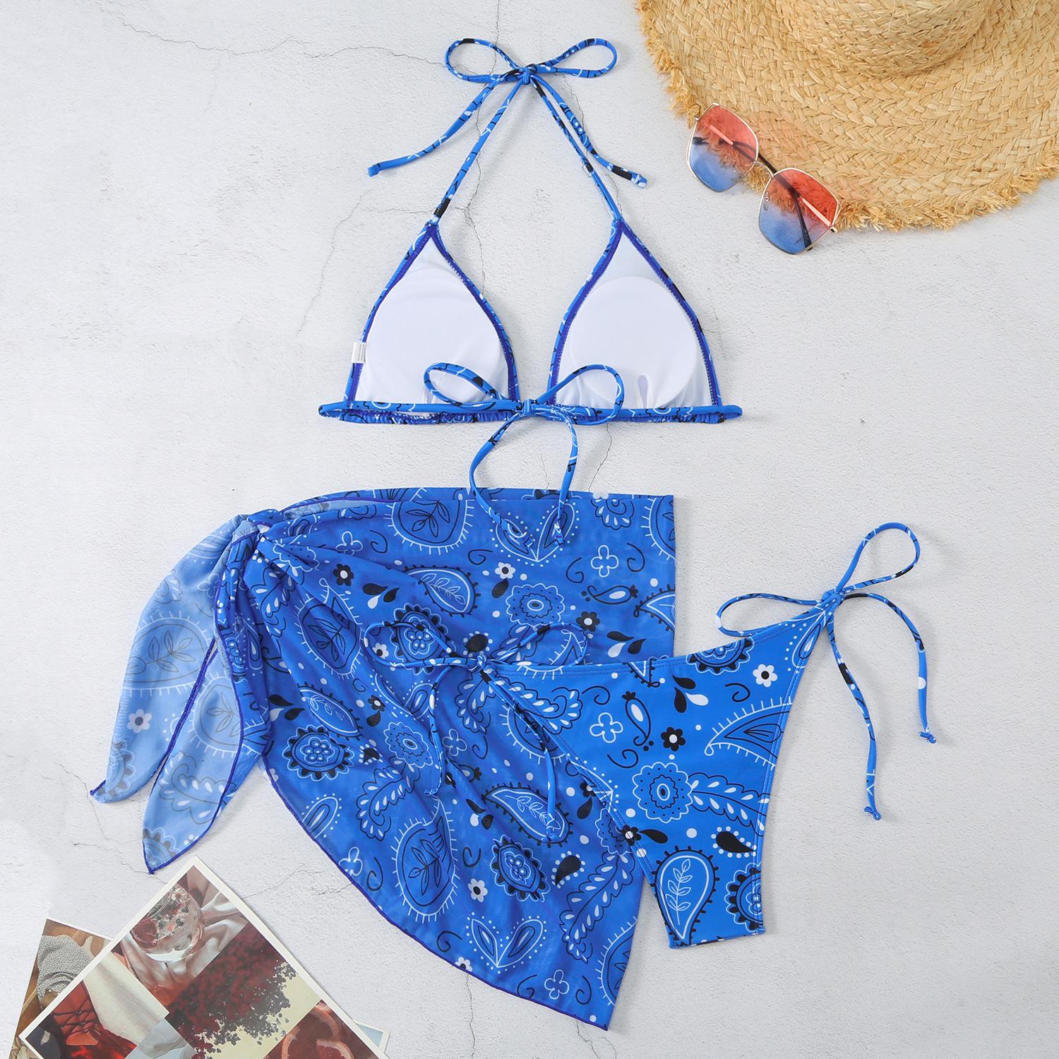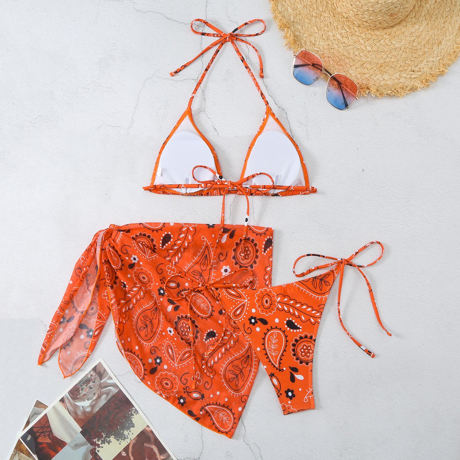 Traje de tres piezas de bikini dividido para mujer, moda europea y americana, personalidad playera, traje de baño de vacaciones para chica guapa