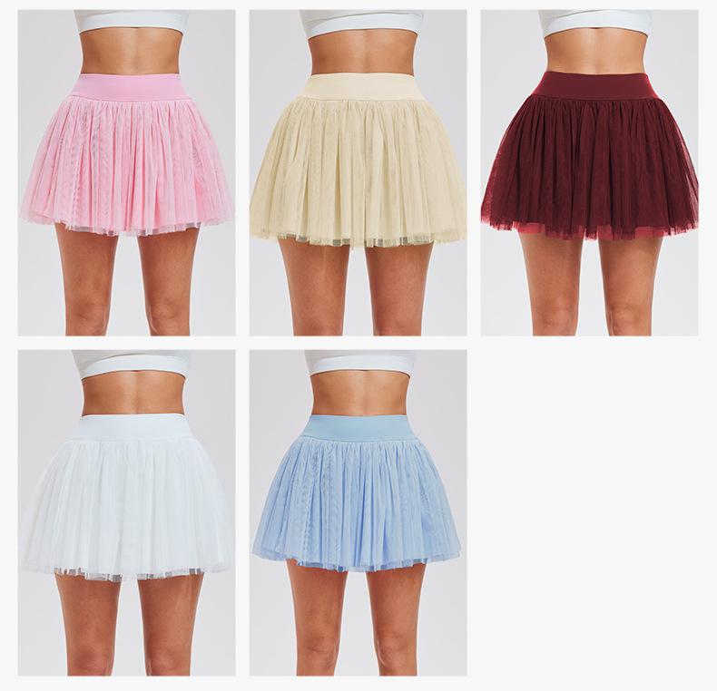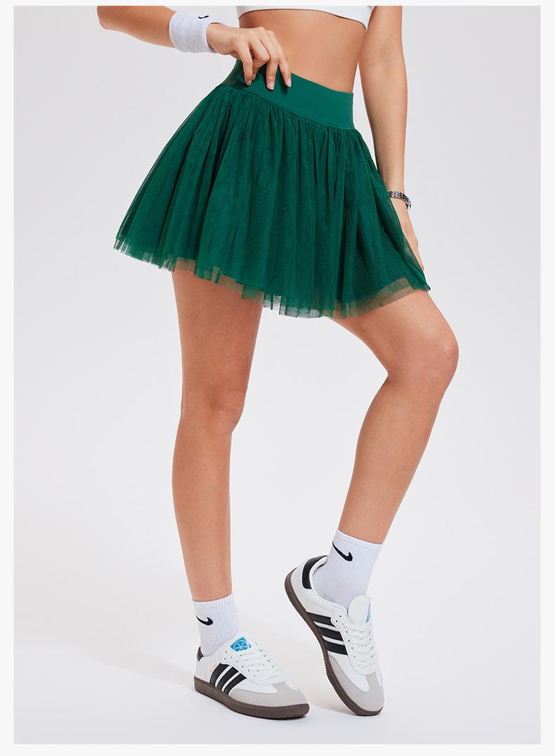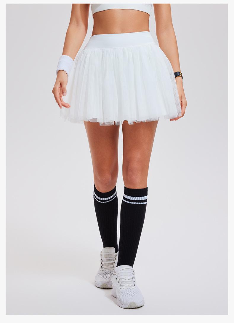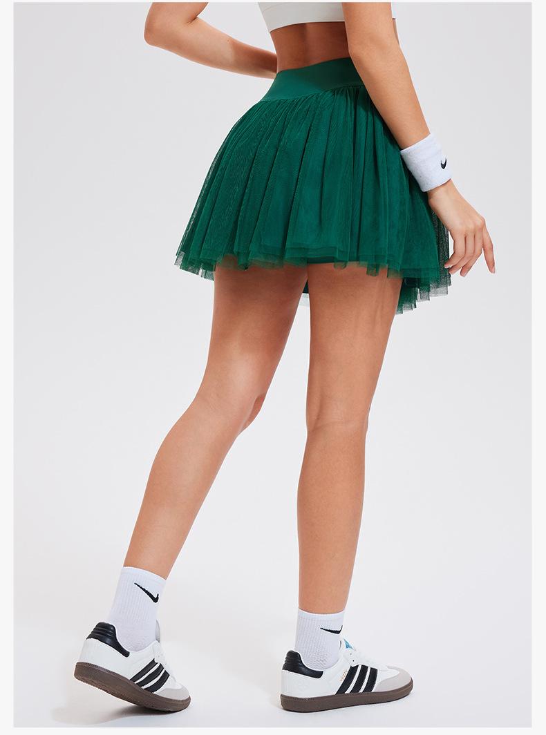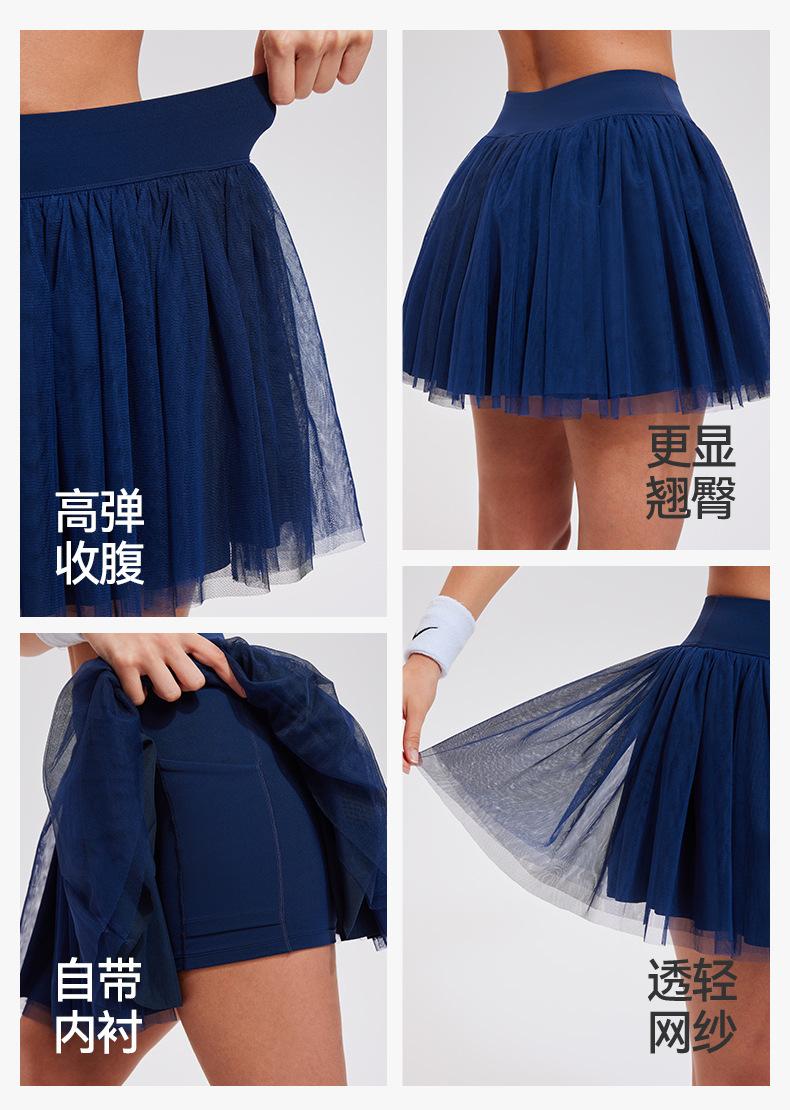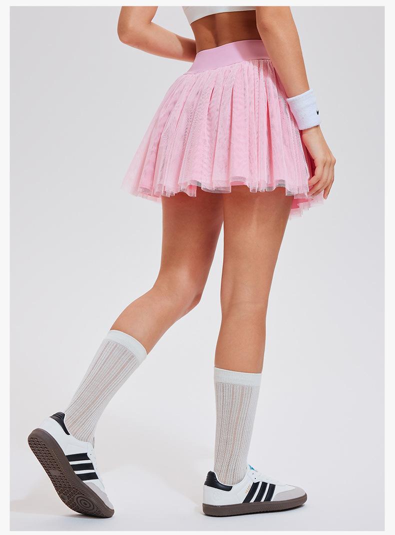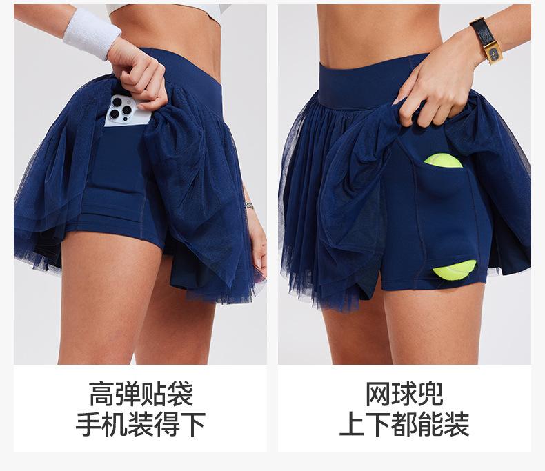 Falda de tenis transfronteriza para mujer, falda deportiva corta con forro, pantalones de malla de doble capa para correr, fitness, bádminton, falda corta de media pierna, pantalones