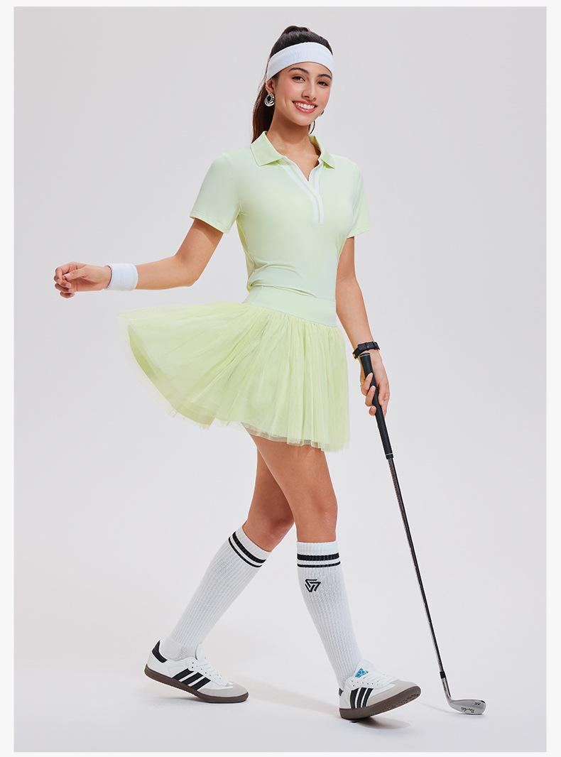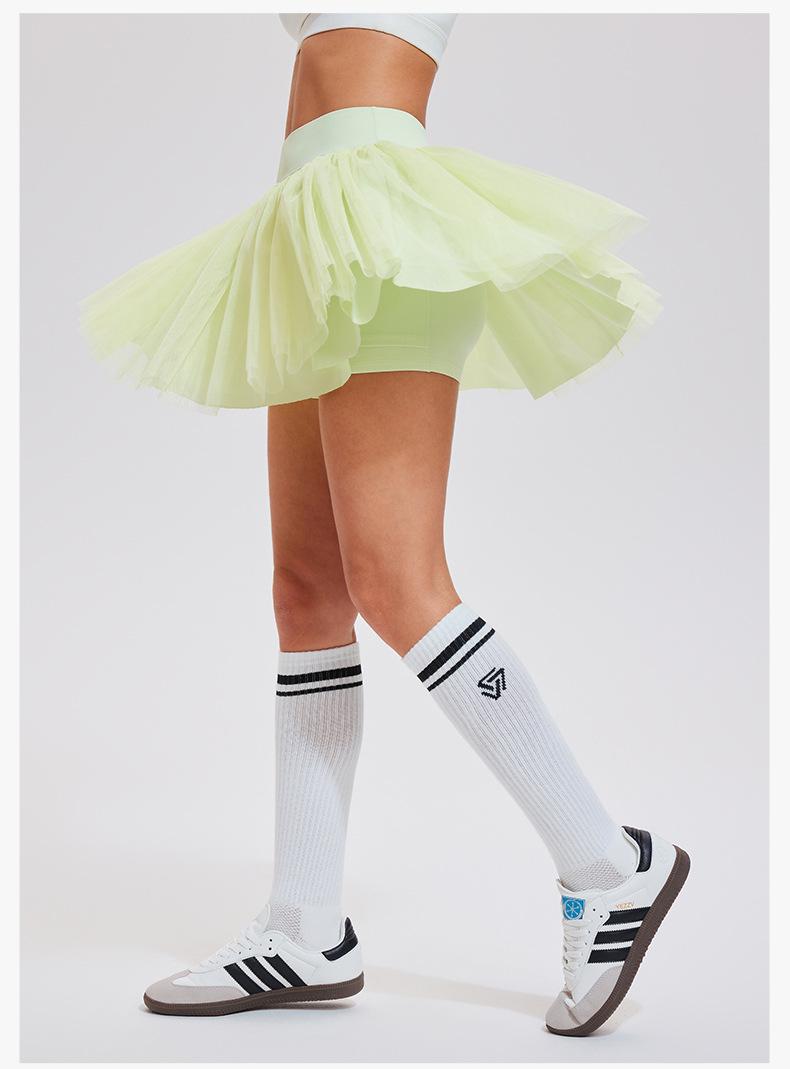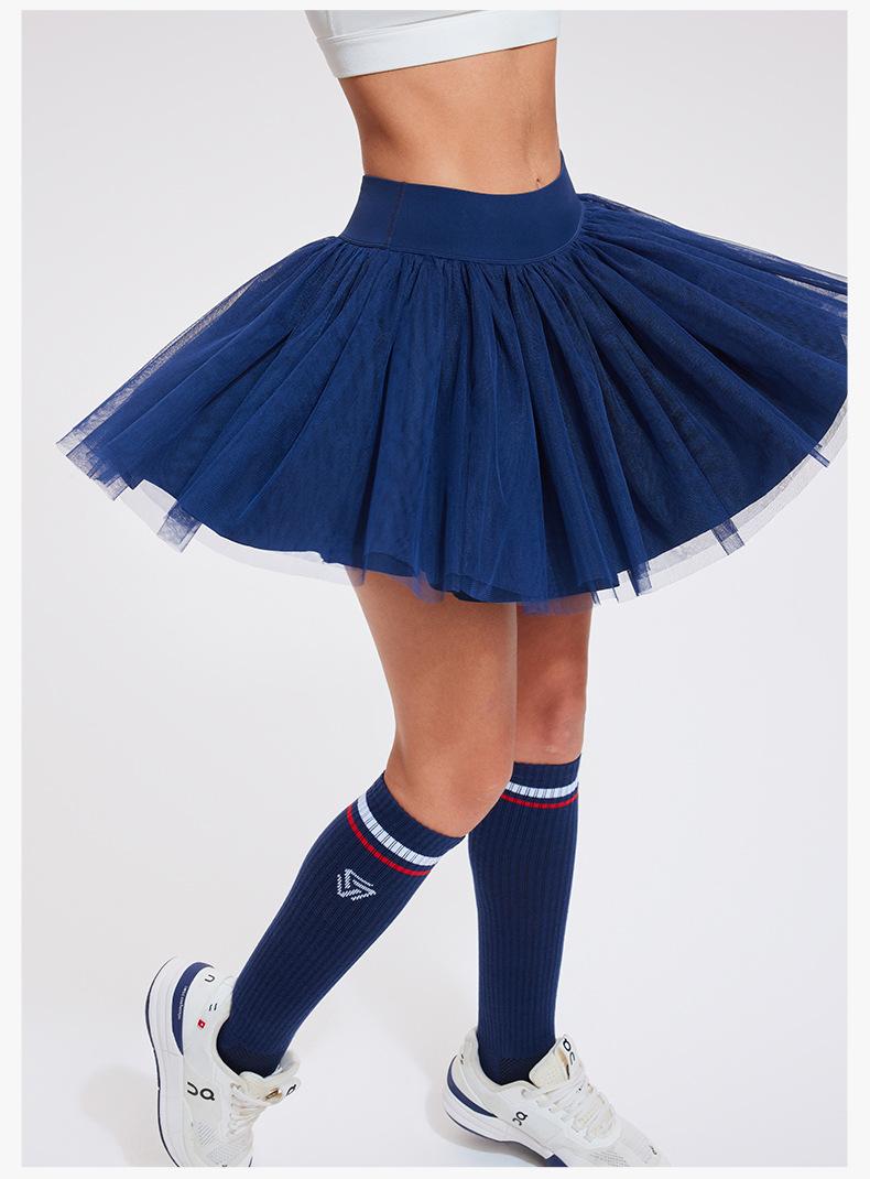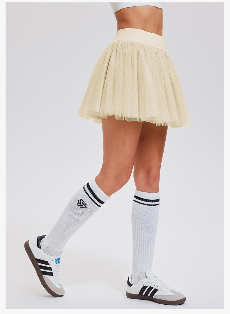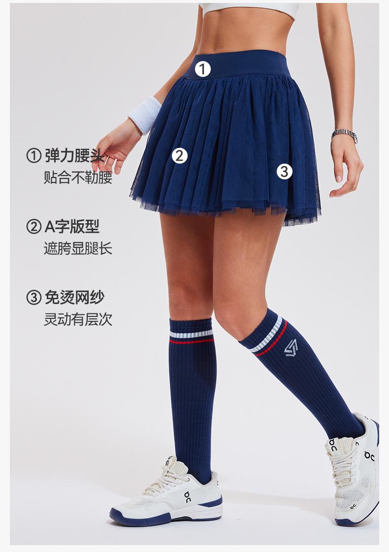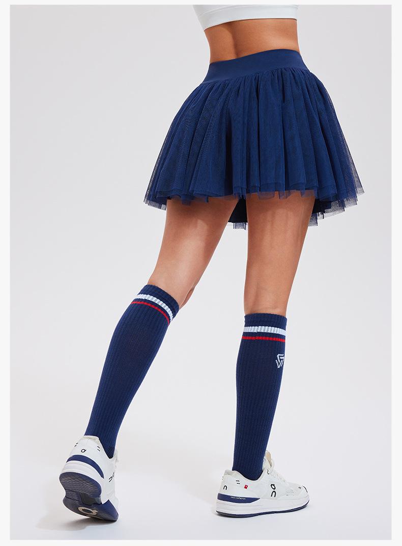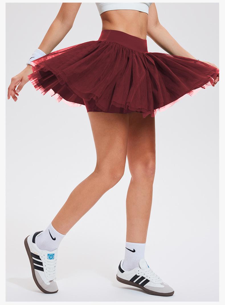 Falda de tenis transfronteriza para mujer, falda deportiva corta con forro, pantalones de malla de doble capa para correr, fitness, bádminton, falda corta de media pierna, pantalones
