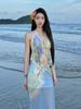 Traje de Baño Nuevo 2025 Temperamento Diosa Floral Estilo Vestido Largo Playa Casual Vacaciones Estilo Puro Deseo Traje de Baño de Alta Gama