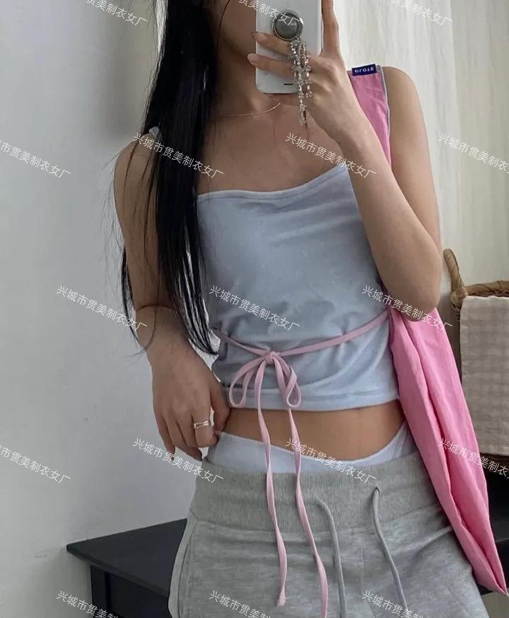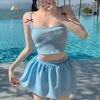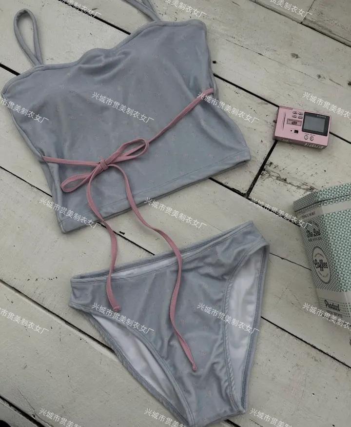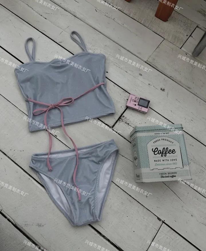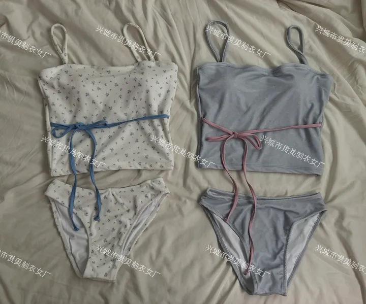 Traje de Baño Bikini Dividido Sexy Retro Coreano para Niña Sexy Pecho Pequeño Lazo Playa Aguas Termales