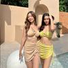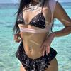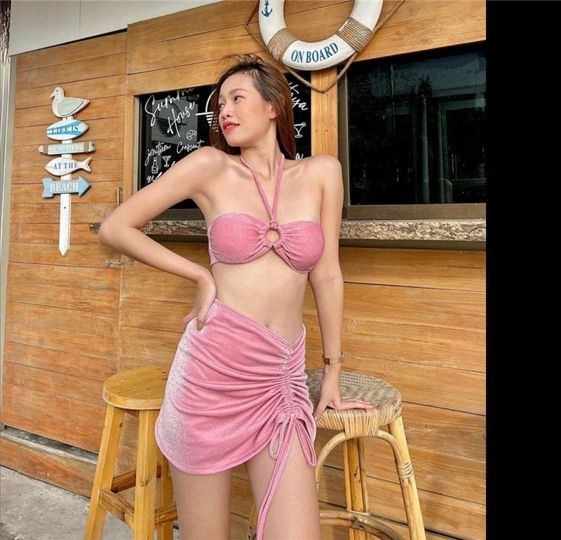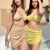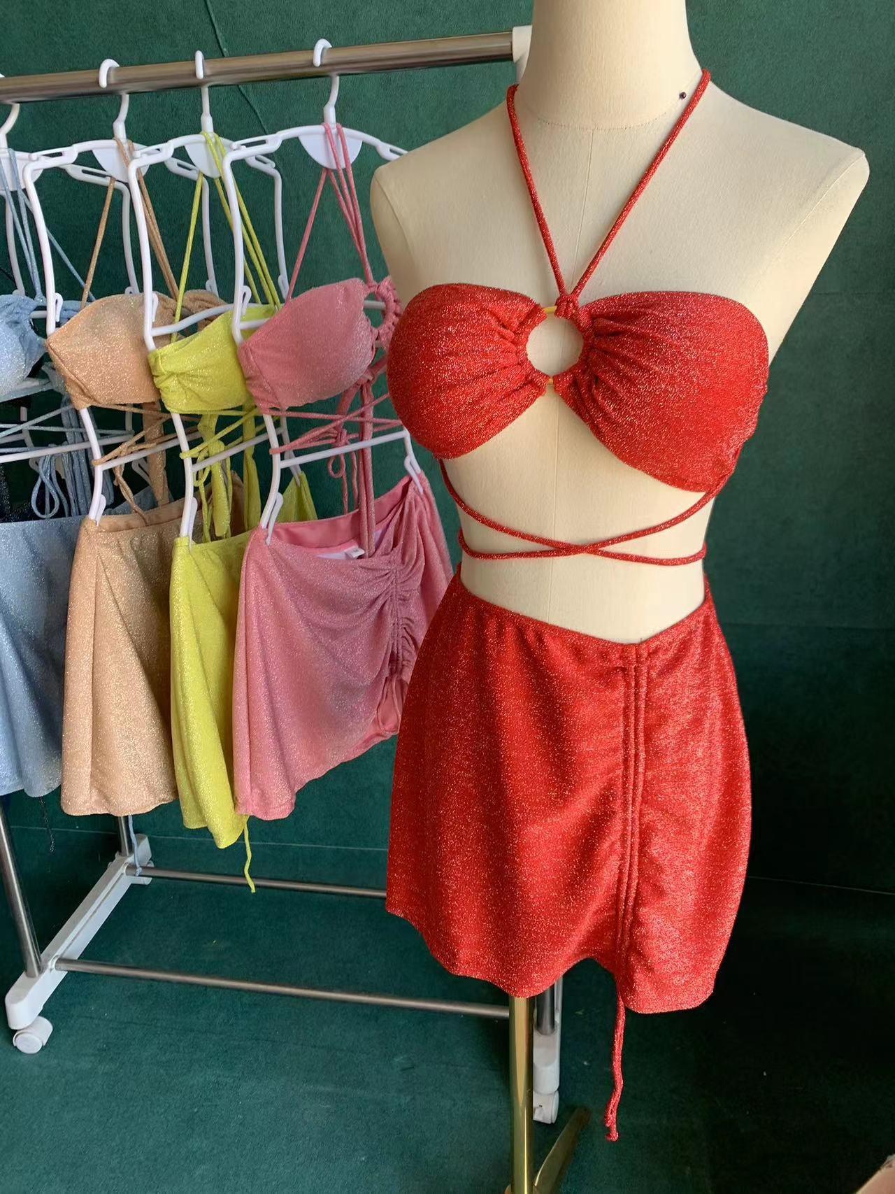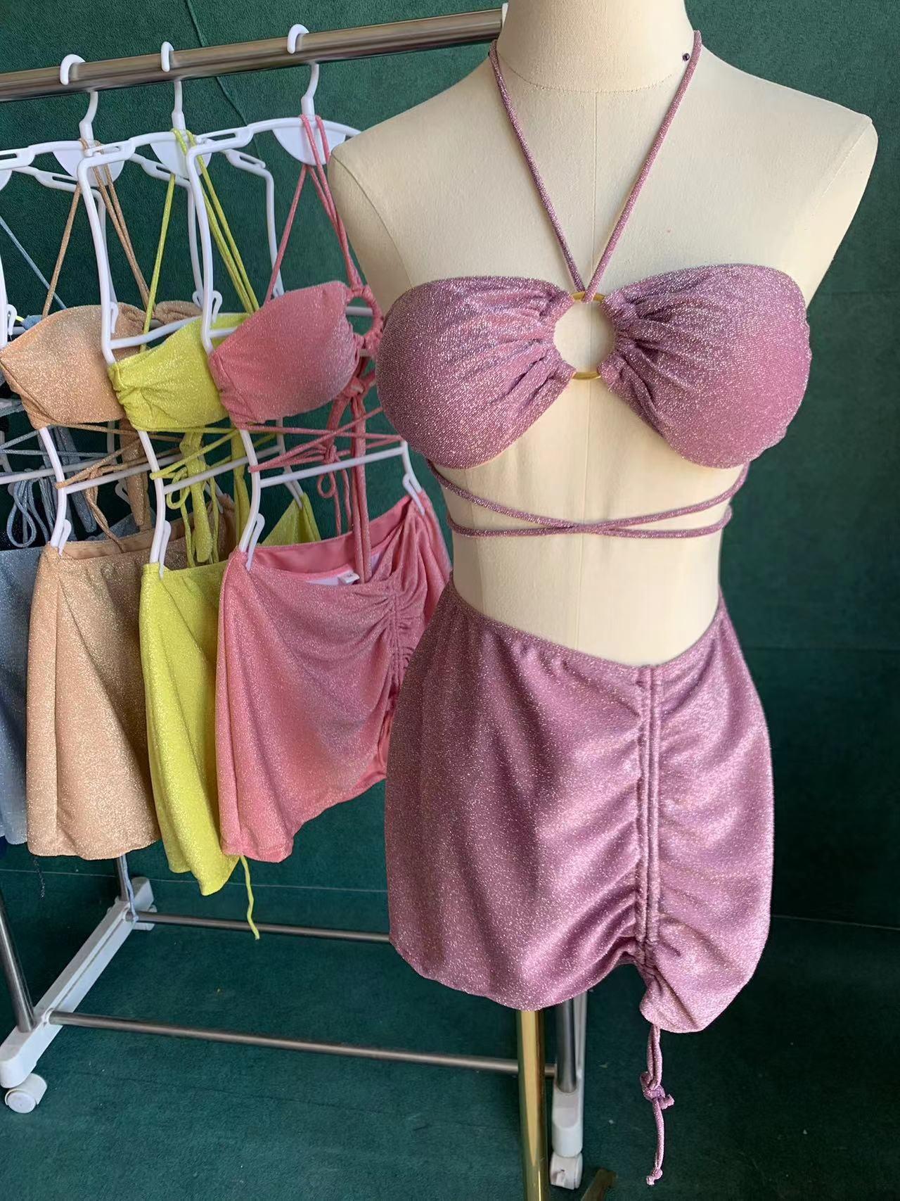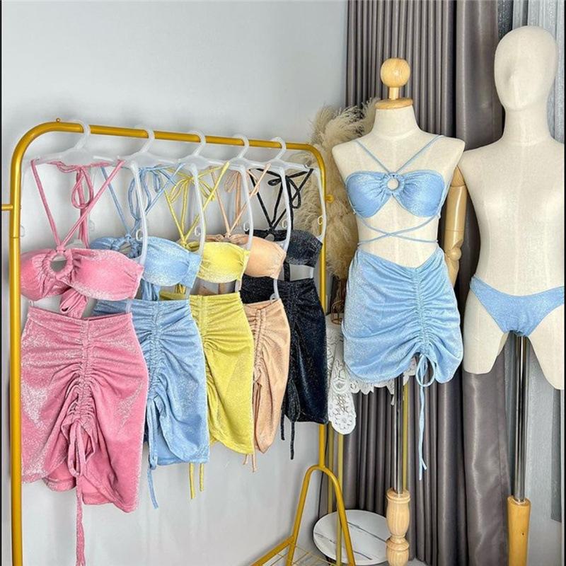 Traje de Baño Xingcheng Sexy Bikini de Playa Brillante Lujuria Pura Bikini de Aguas Termales Traje de Baño para Mujer Set Dividido de Tres Piezas