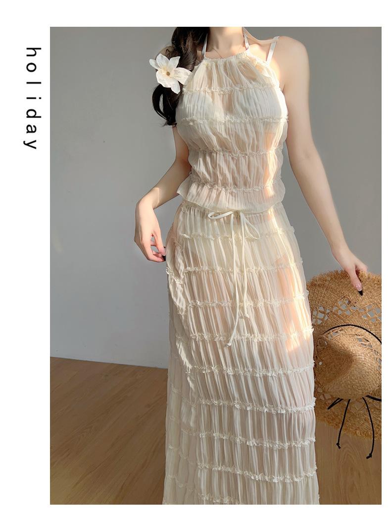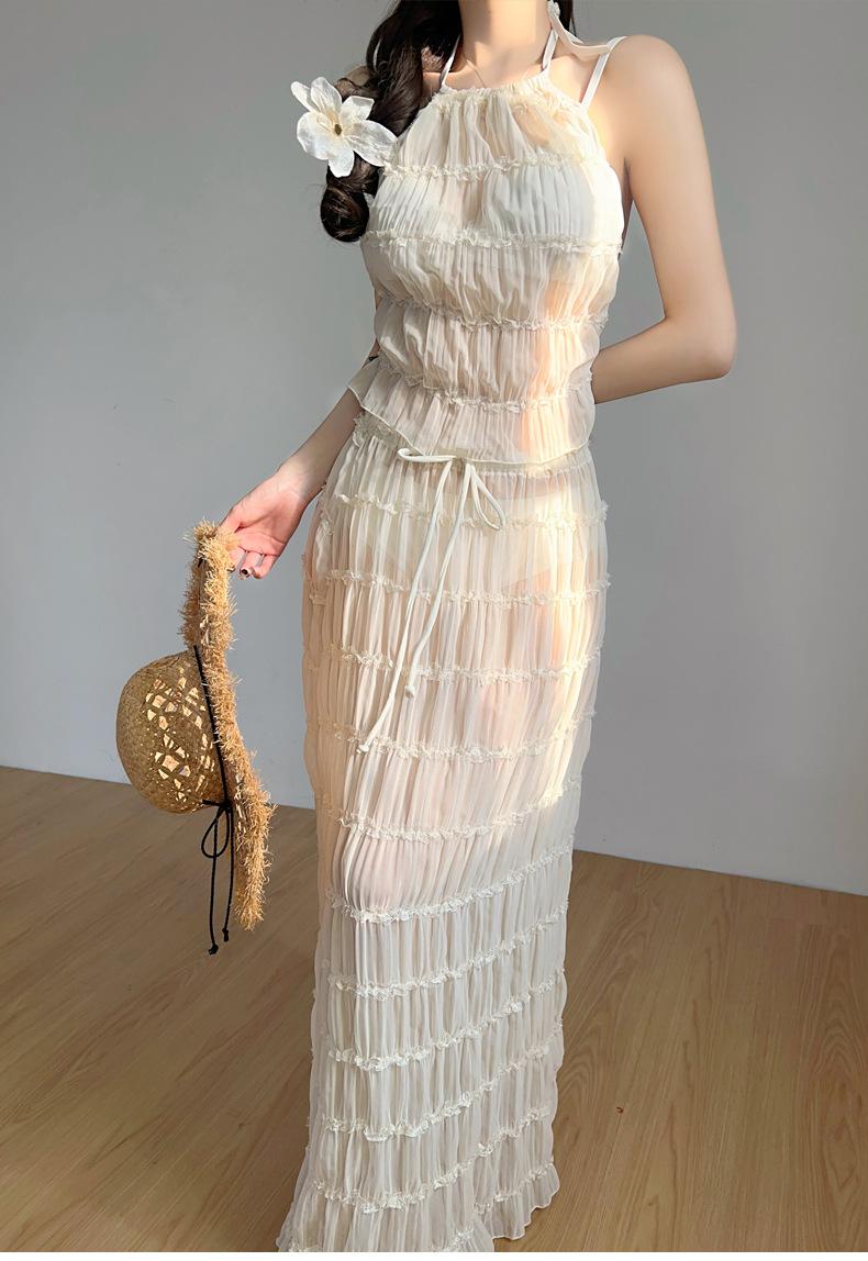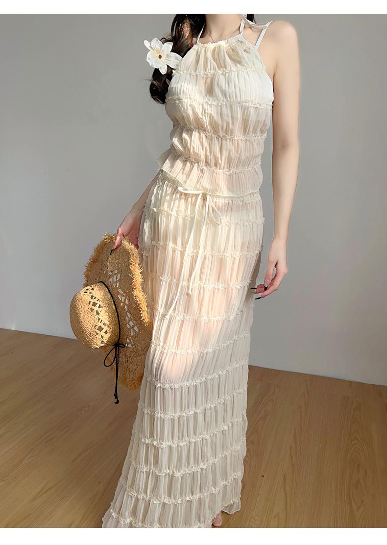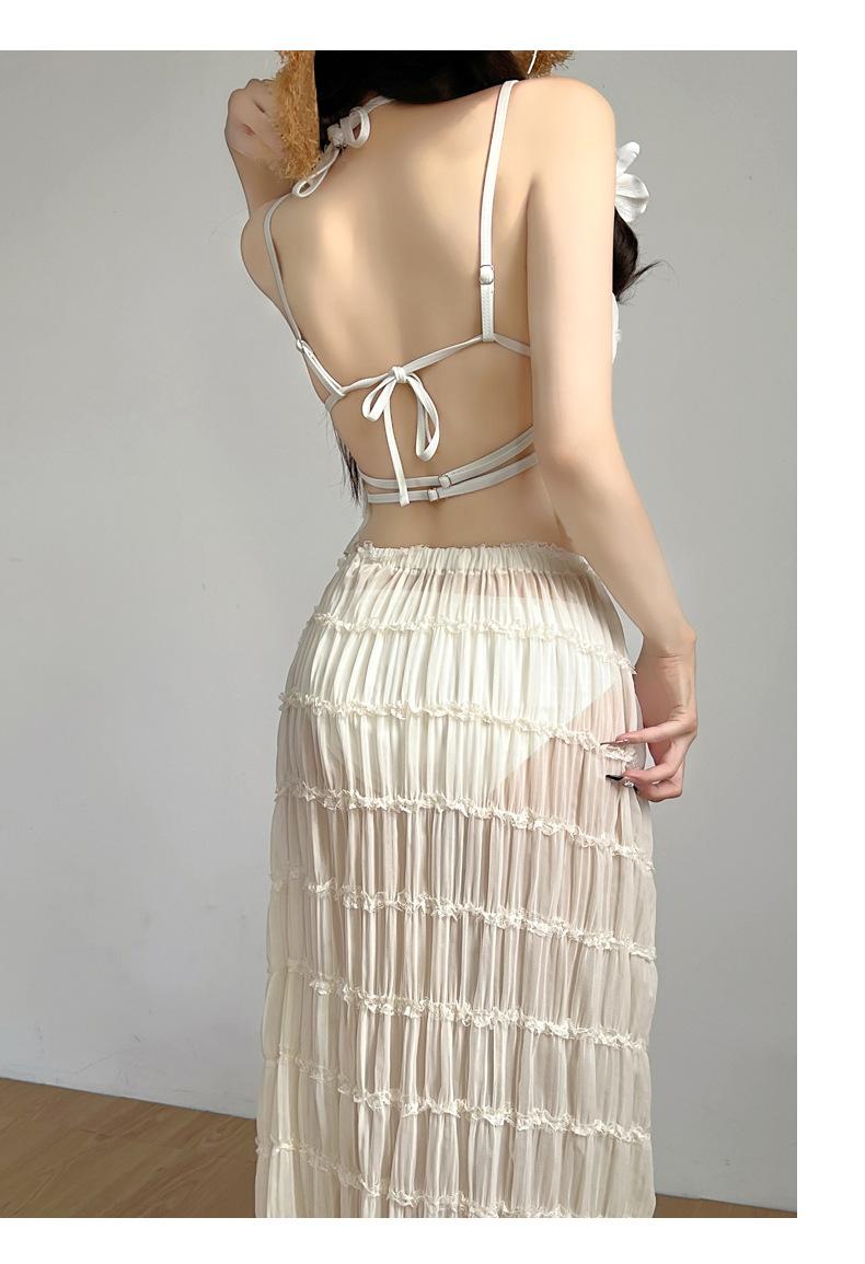 2025 Nuevo Vestido Largo Elegante Original de Lujo Ligero de Alta Gama para Vacaciones en la Playa de Diosa con Abertura Traje de Baño Bikini de Mujer
