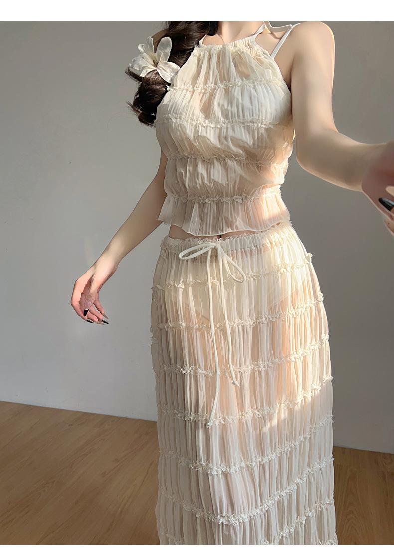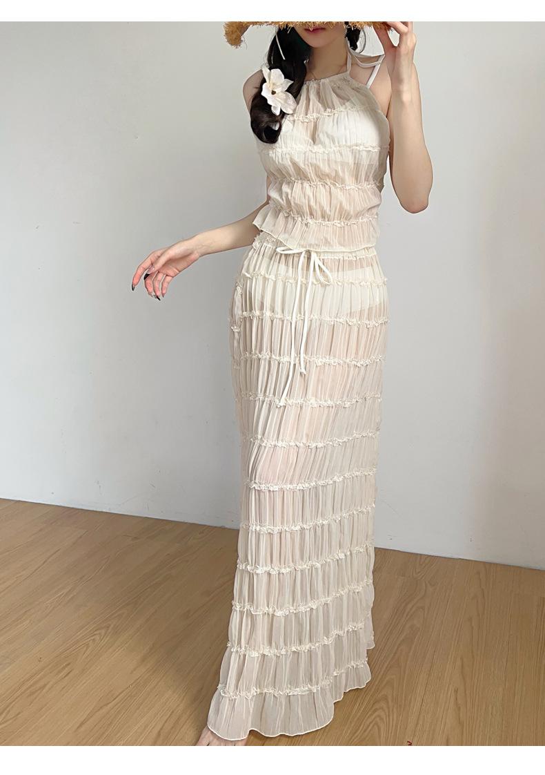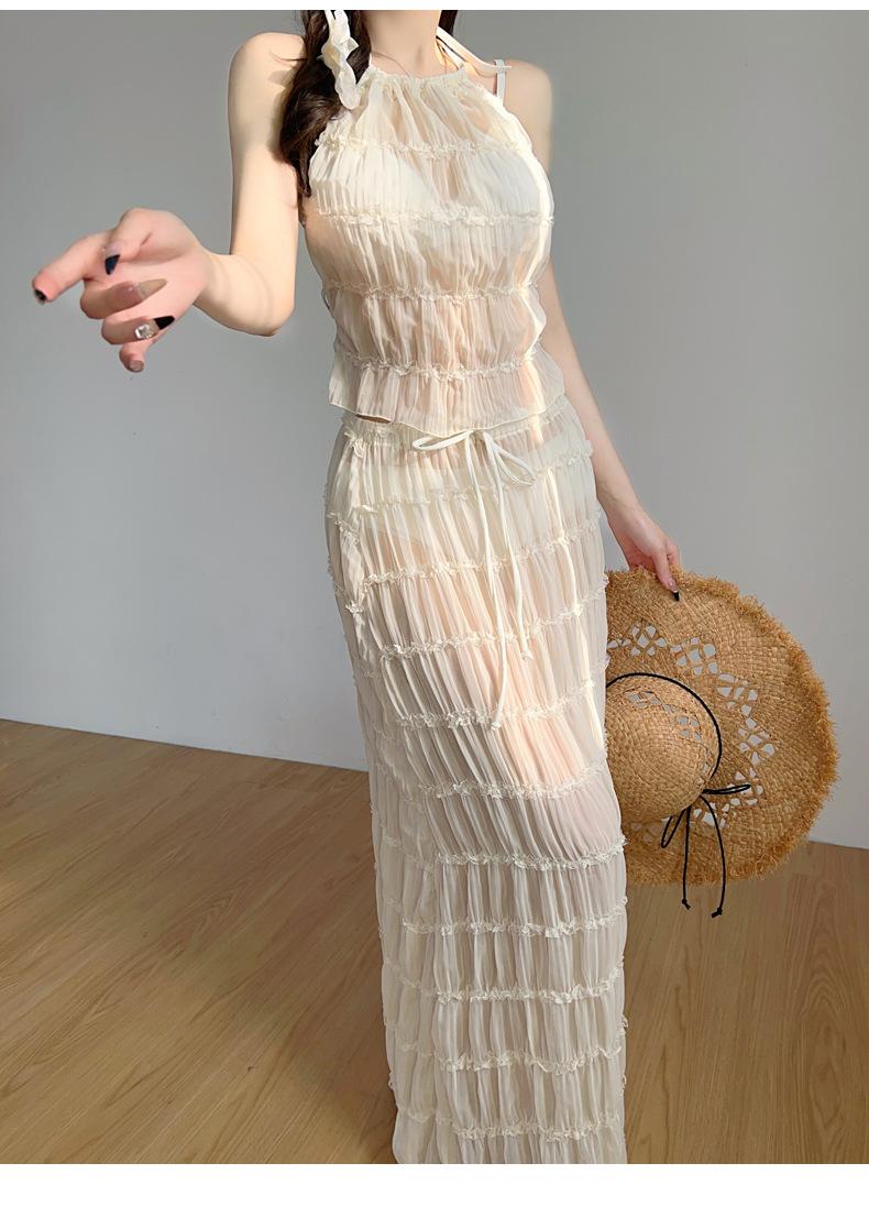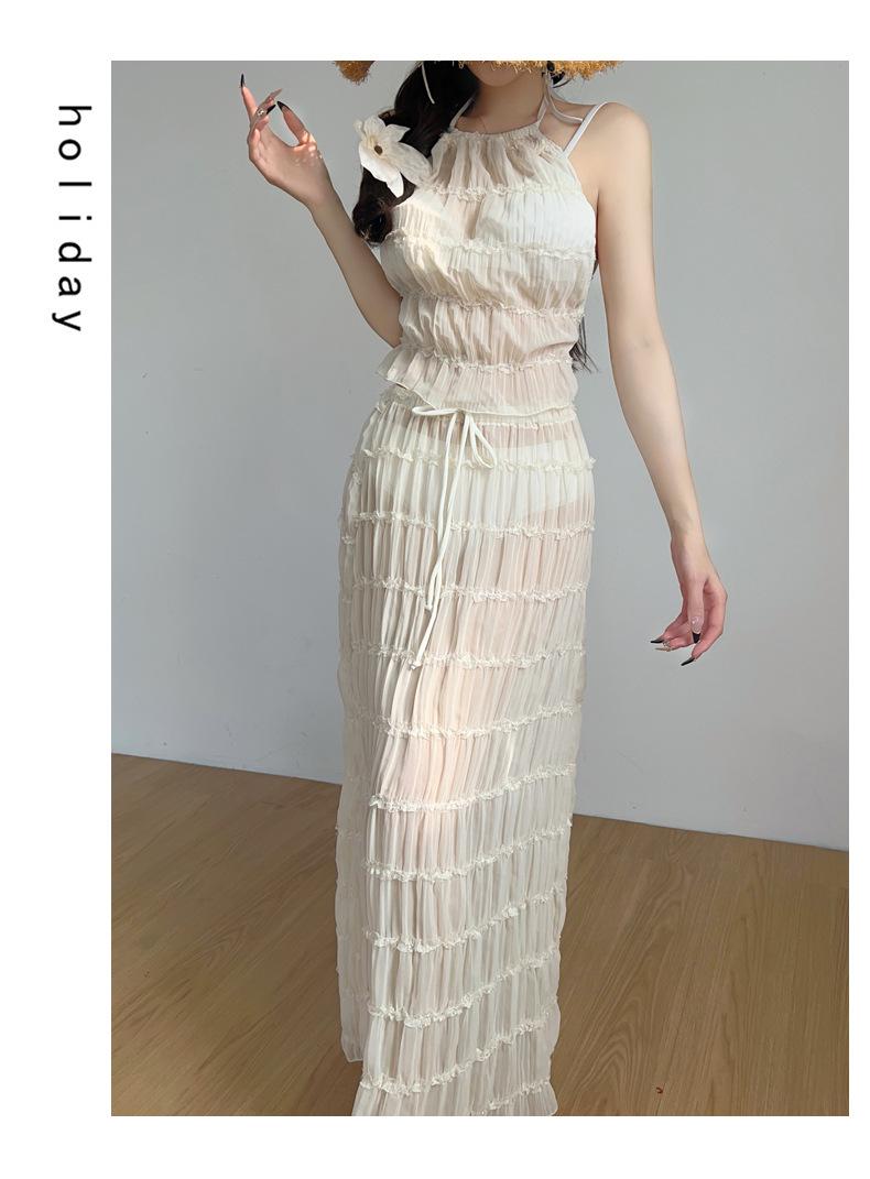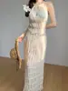 2025 Nuevo Vestido Largo Elegante Original de Lujo Ligero de Alta Gama para Vacaciones en la Playa de Diosa con Abertura Traje de Baño Bikini de Mujer