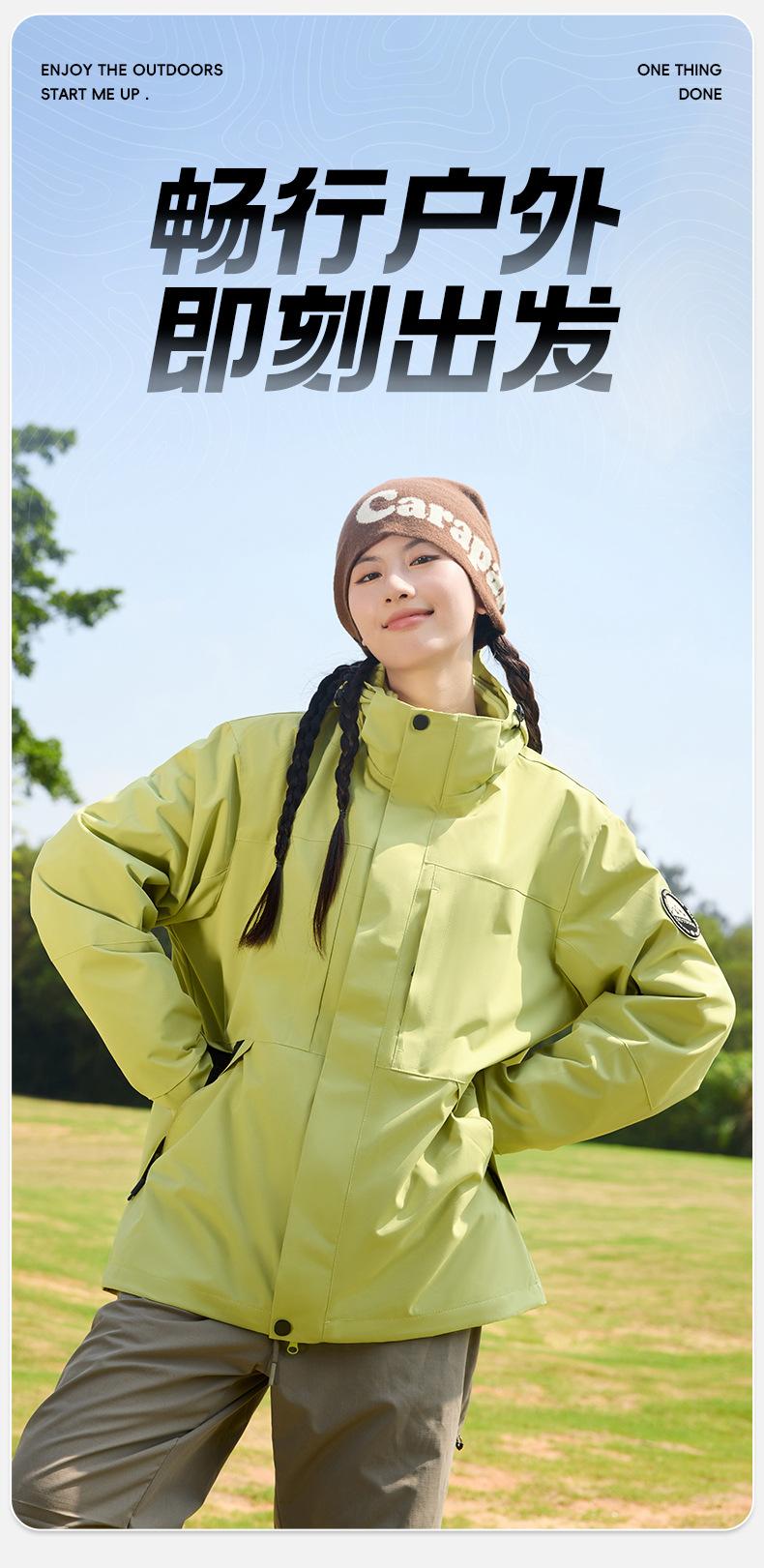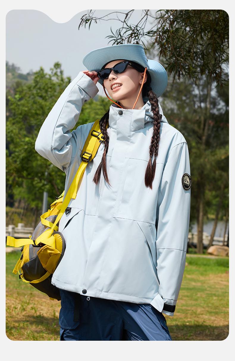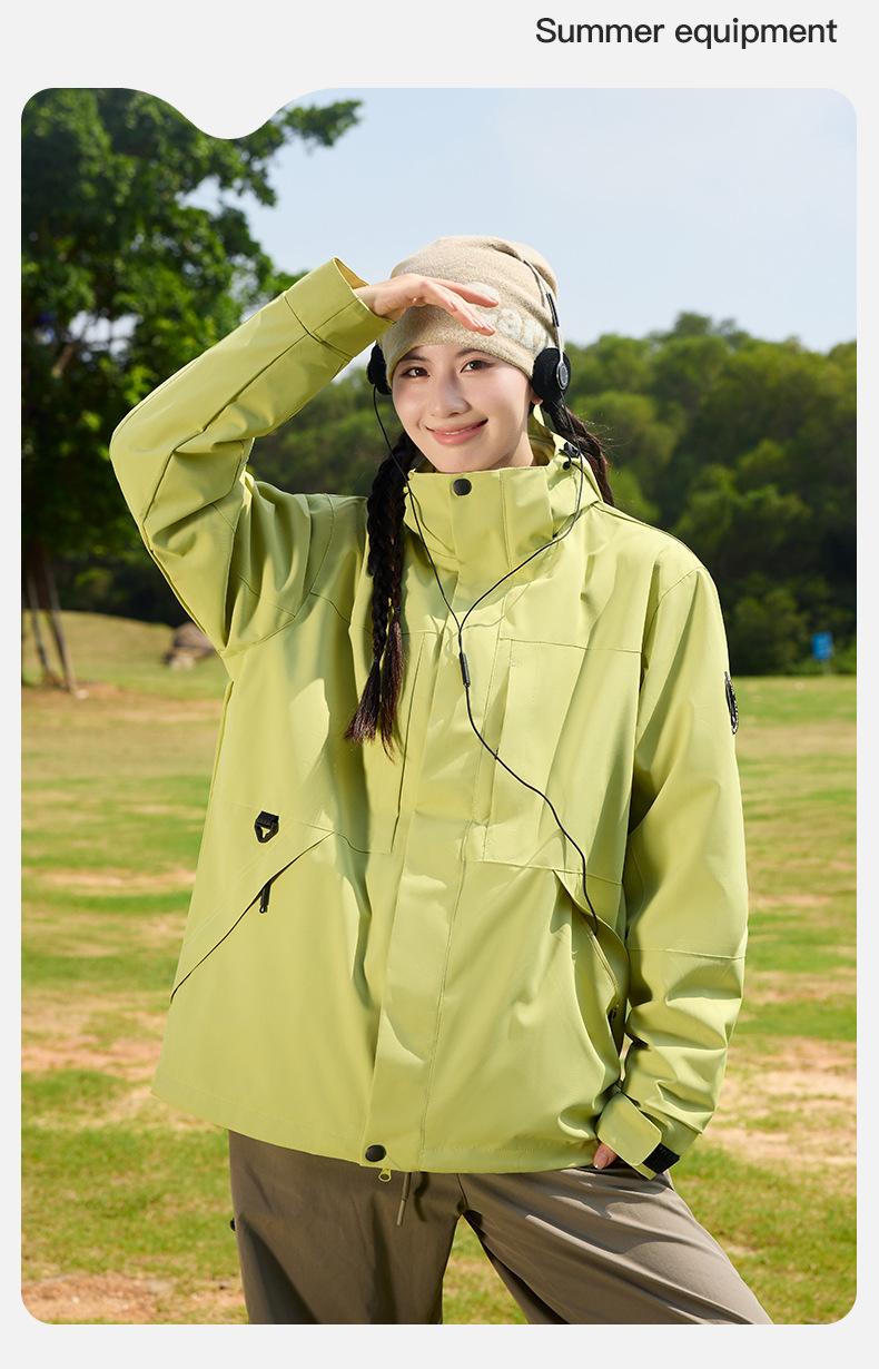 Traje de Montaña Tres en Uno para Mujer Woodpecker 2025 Primavera y Otoño Nuevo Cortavientos Impermeable para Exteriores Chaqueta Dopamina