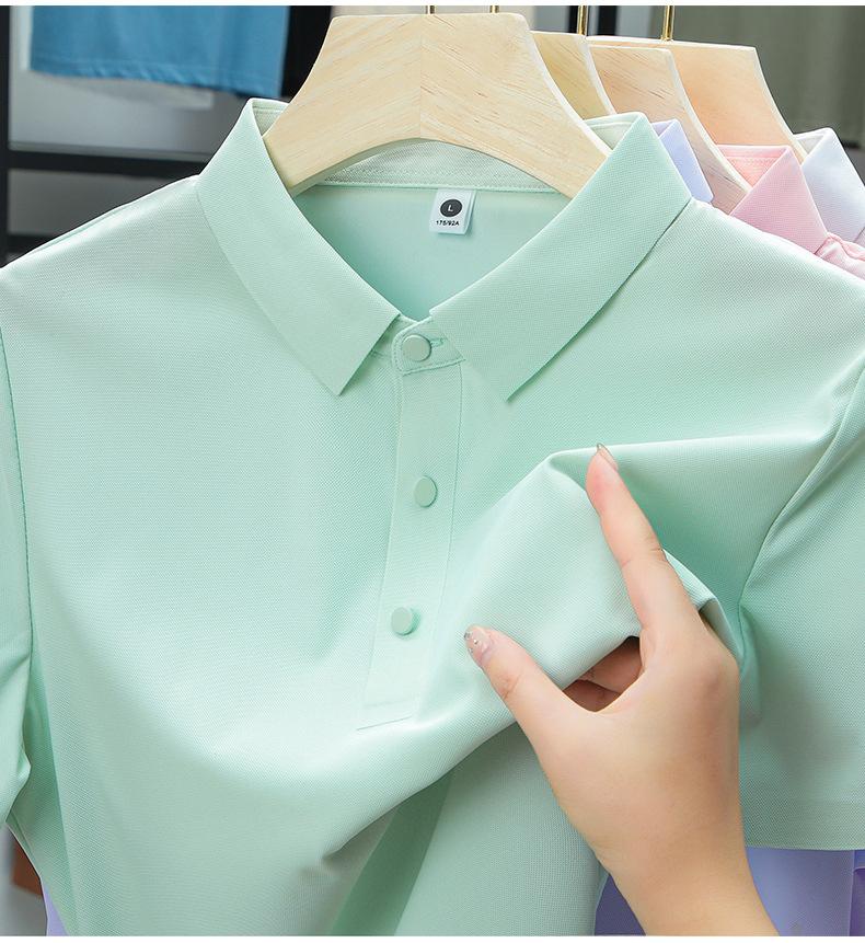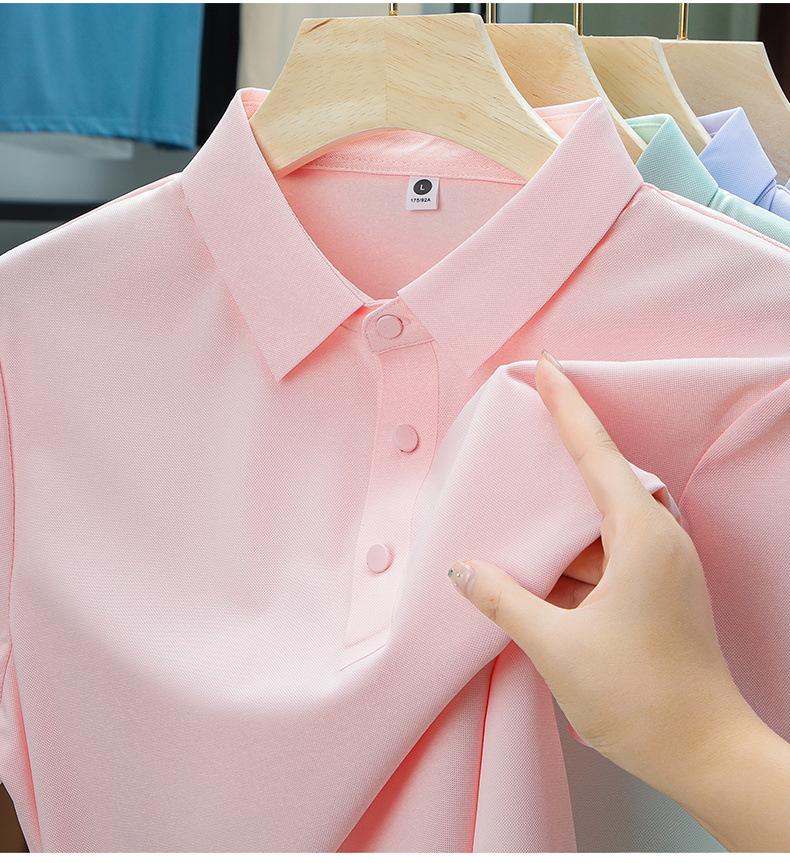 Camiseta de Manga Corta de Seda de Hielo Sin Costuras de Gama Alta para Mujer con Protección Solar de Secado Rápido Verano Nuevo Polo Business Casual Elástica Fina