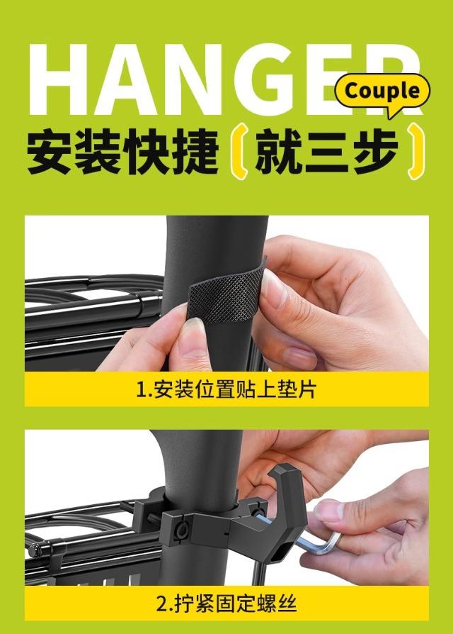 Upgraded thin tube double hook (reinforced with iron plate inside the pipe clamp/comes with an allen wrench)