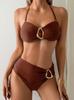 Traje de baño Xingcheng 2025 Nuevas Explosiones Bikini Sexy Europeo y Americano Bikini Color Sólido Traje de Baño Dividido Mujer