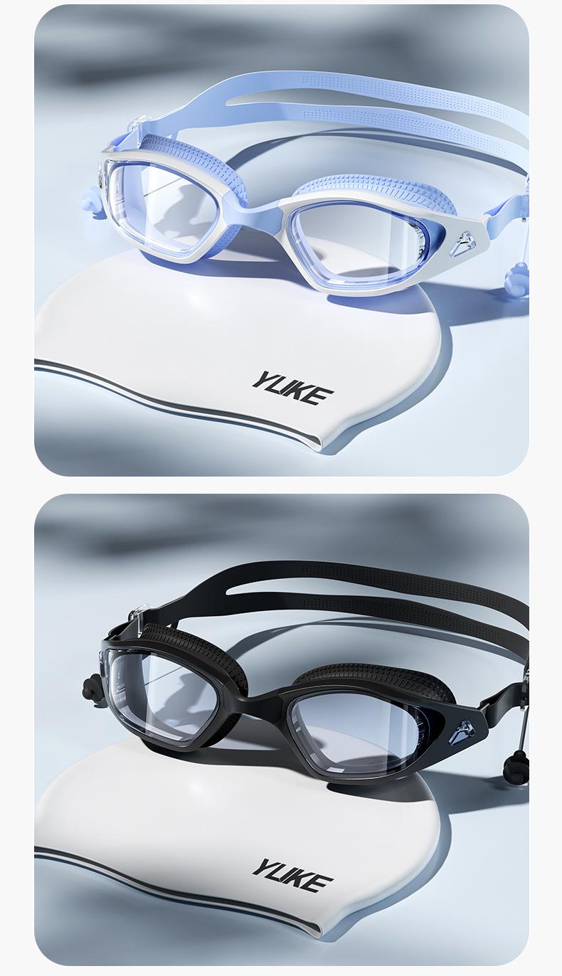 Nuevas Gafas de Natación para Adulto, Gafas de Marco Grande, Gafas Electrochapadas de Alta Definición, Gafas de Natación de Silicona Impermeables y Antivaho, Set