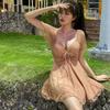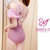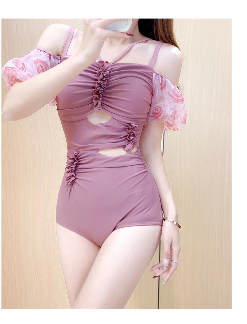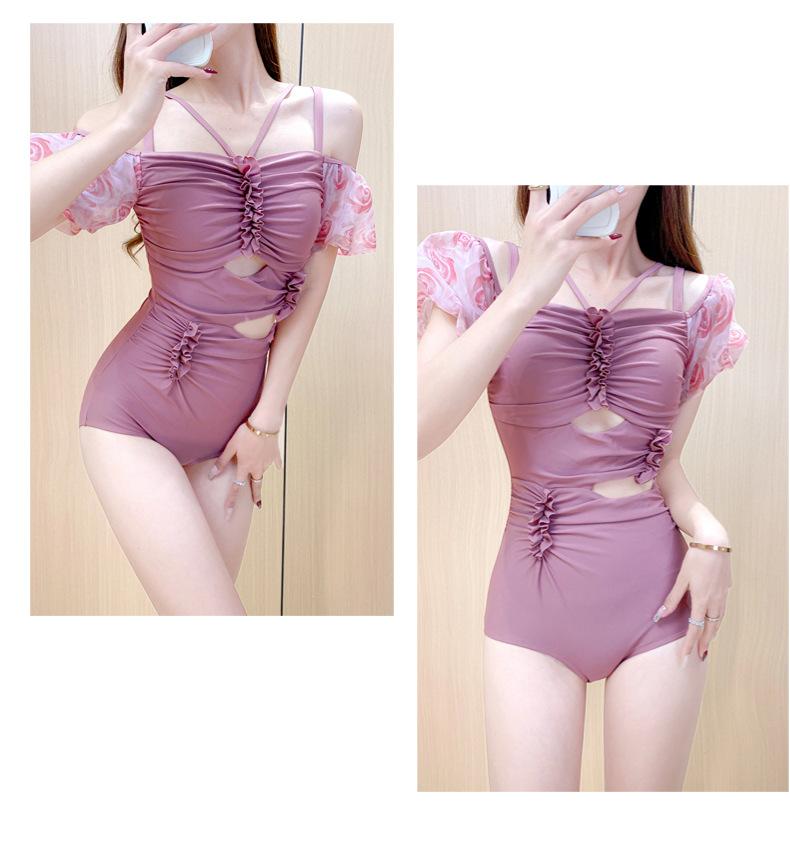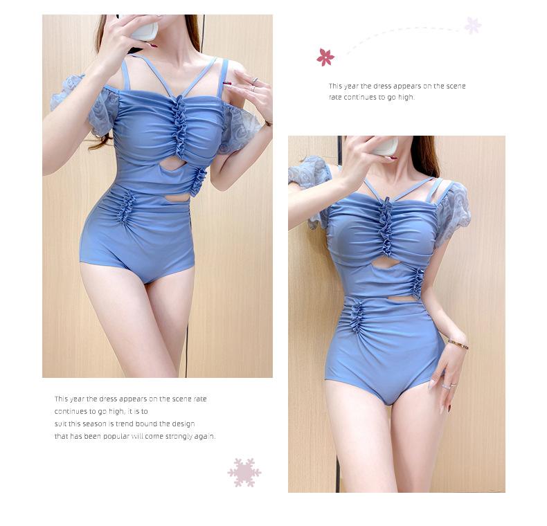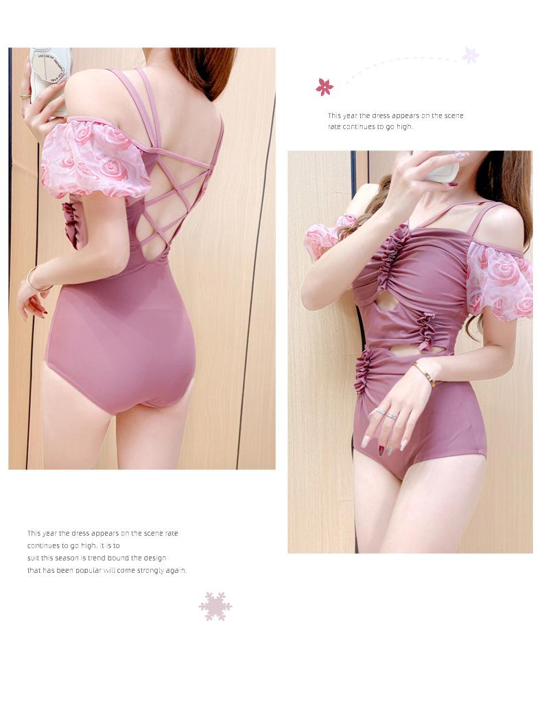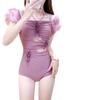 Traje de Baño Enterizo de Encaje de Manga Corta, Sexy Elegante, Color Sólido, Nuevo 2025, Conservador, Cubre Vientre, Adelgazante, Vacaciones en la Playa