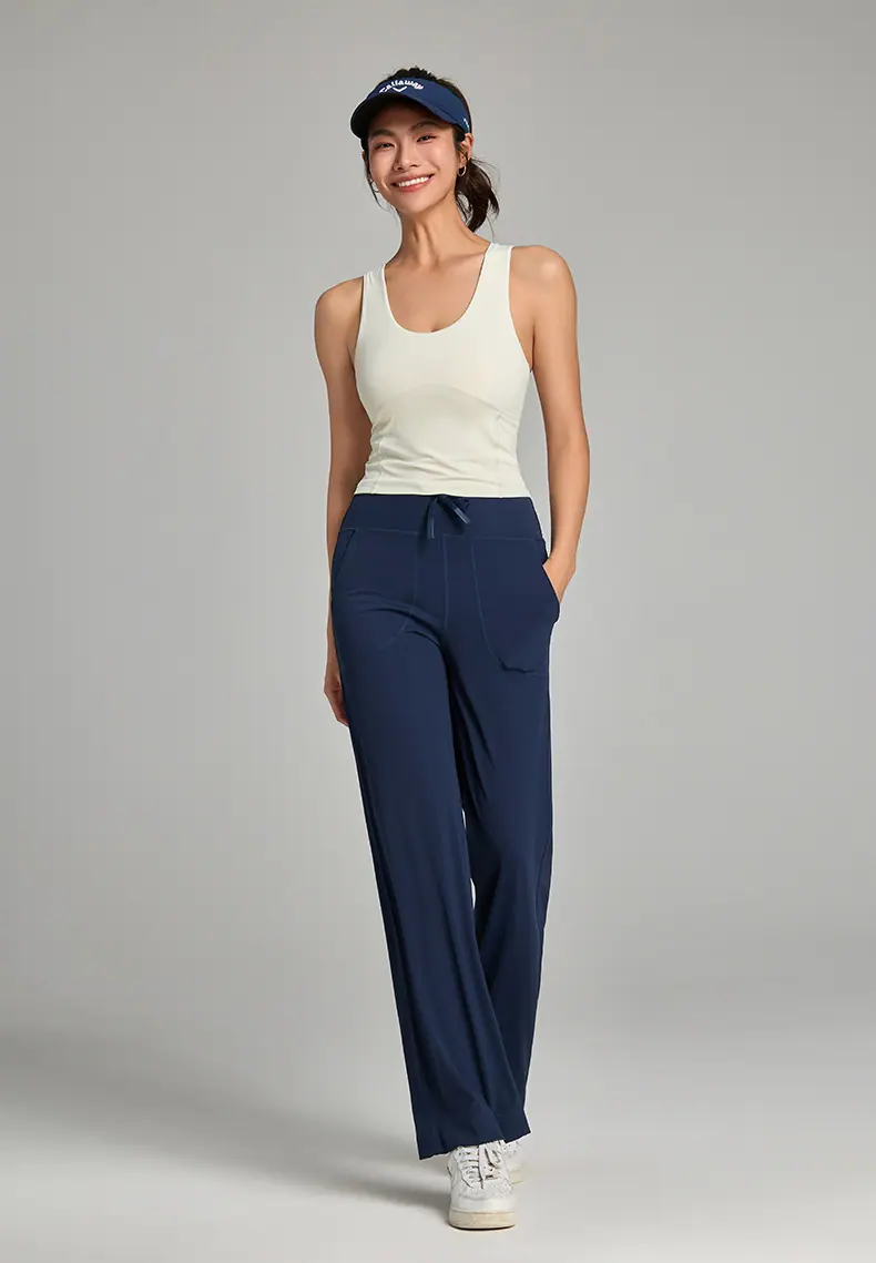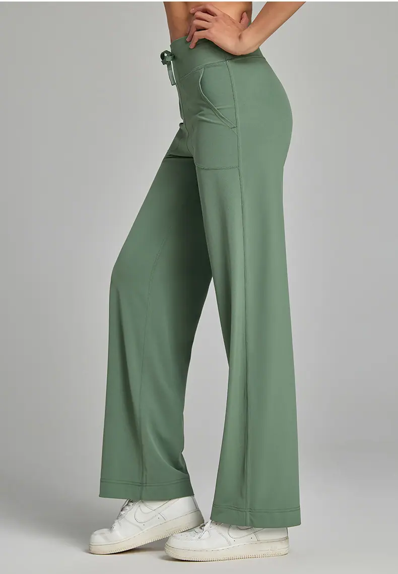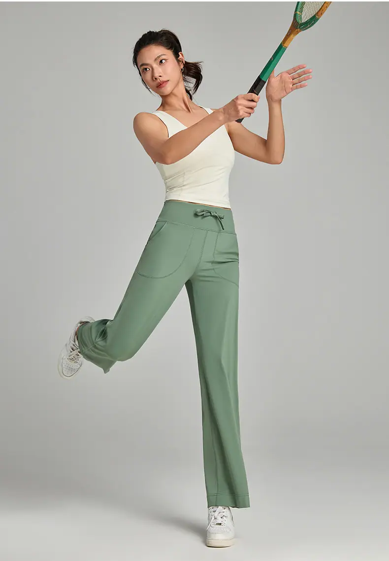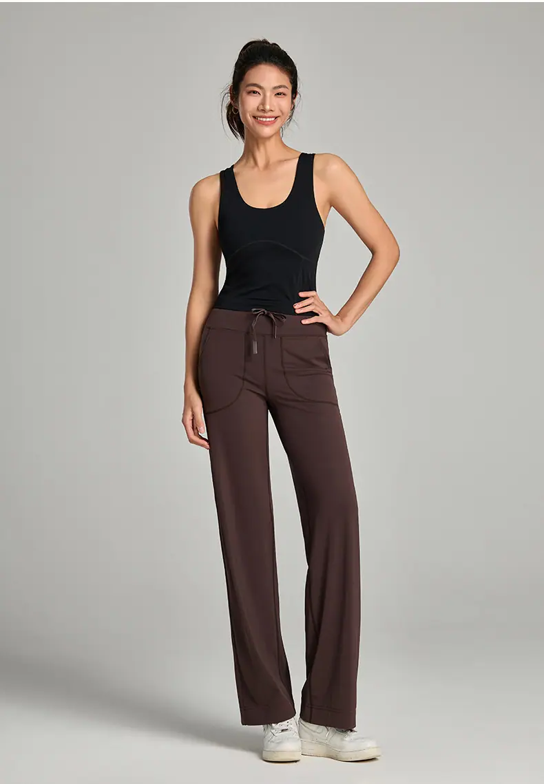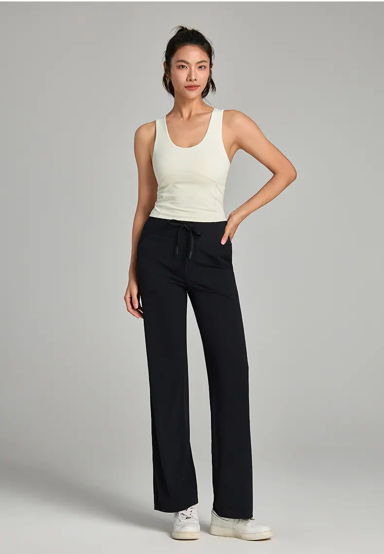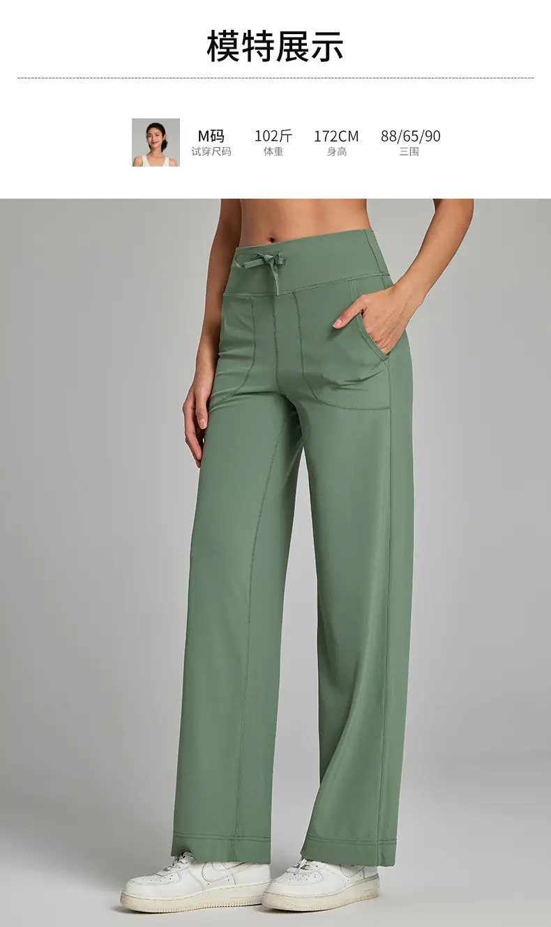 Pantalones Largos Sueltos de Cintura Alta Suaves y Elásticos Nuevos de Yoga de Pierna Ancha Adelgazantes de Cintura Alta con Caída de Secado Rápido Pantalones Casuales de Fitness para Mujer