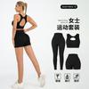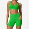 Ropa de Yoga Personalizada Sujetador Deportivo de Soporte Alto Sin Costuras con Hebilla Shorts Deportivos de Cintura Alta con Bolsillo Doble Conjunto de Dos Piezas