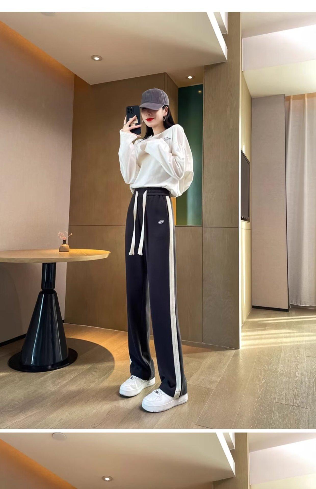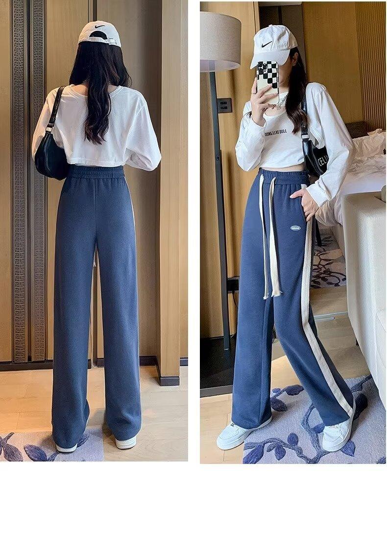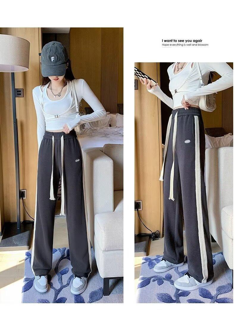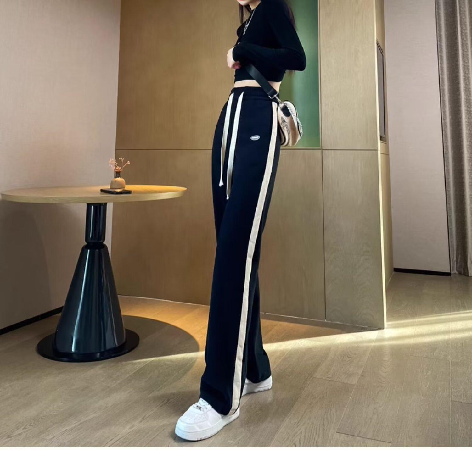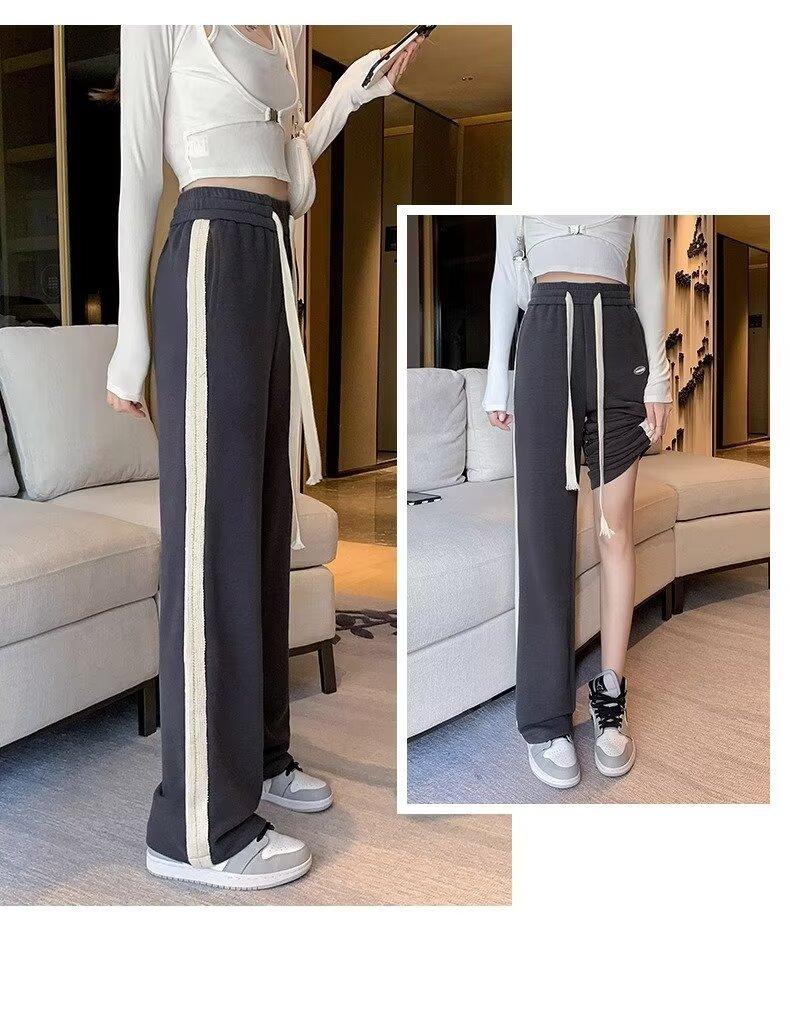 Pantalones deportivos para mujer de verano delgados casuales 2024 nuevos de cintura alta dosificantes elegantes pequeños rectos de pierna ancha