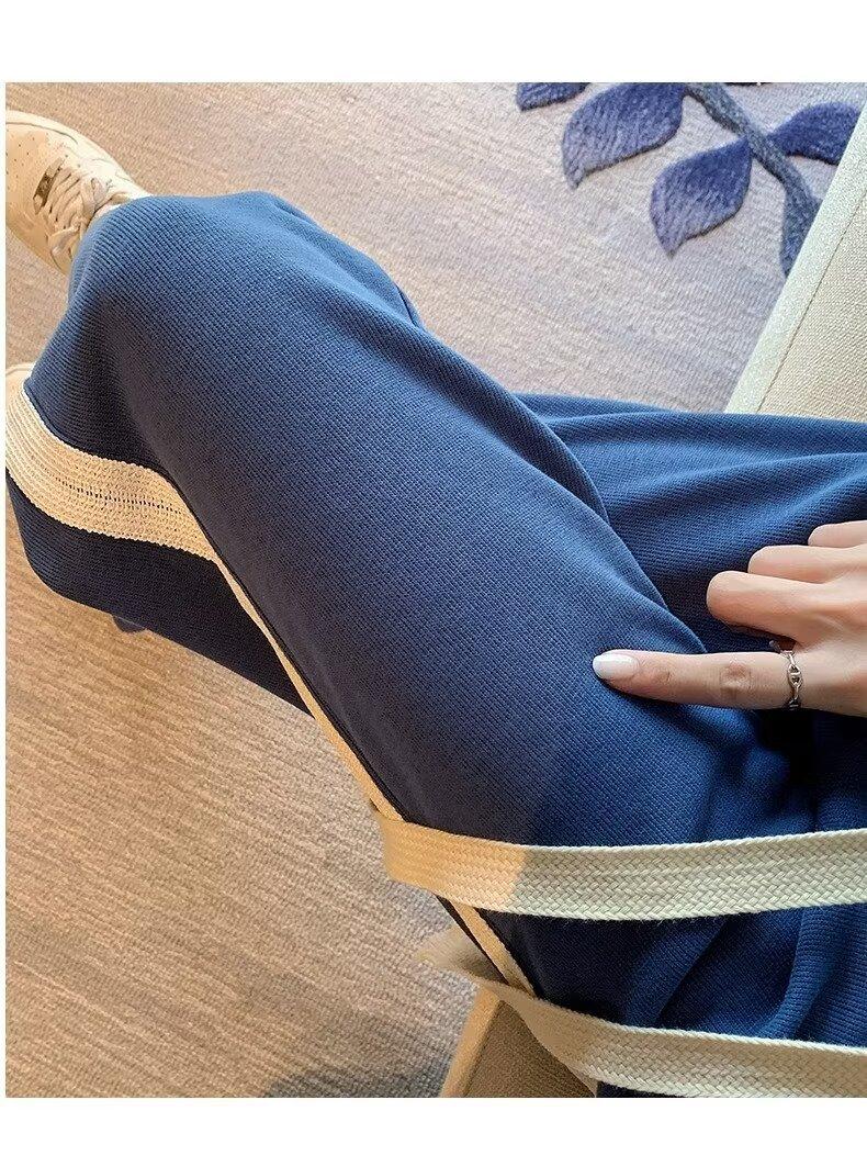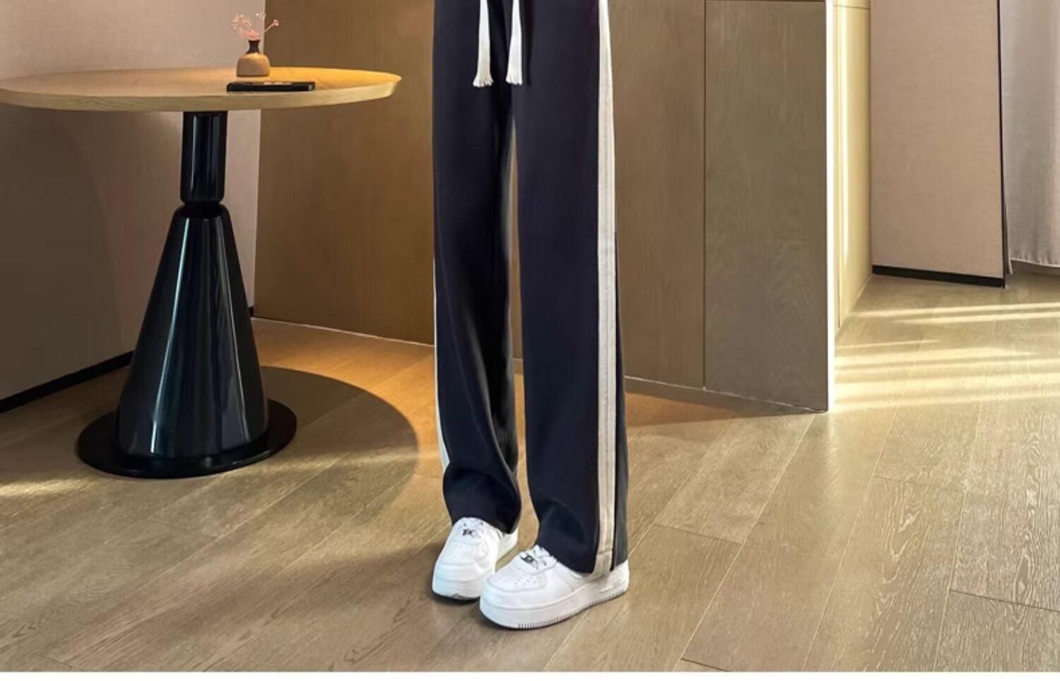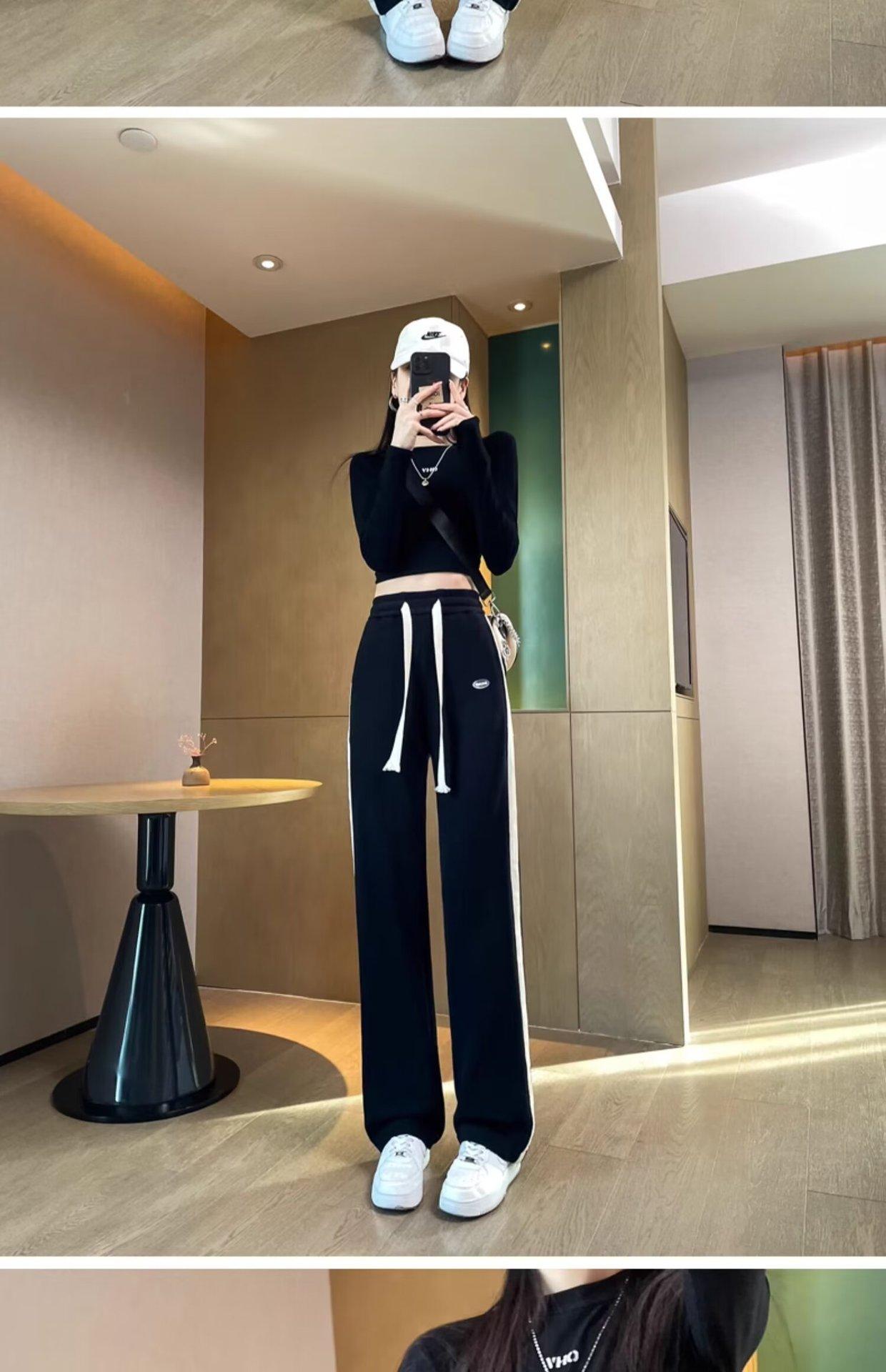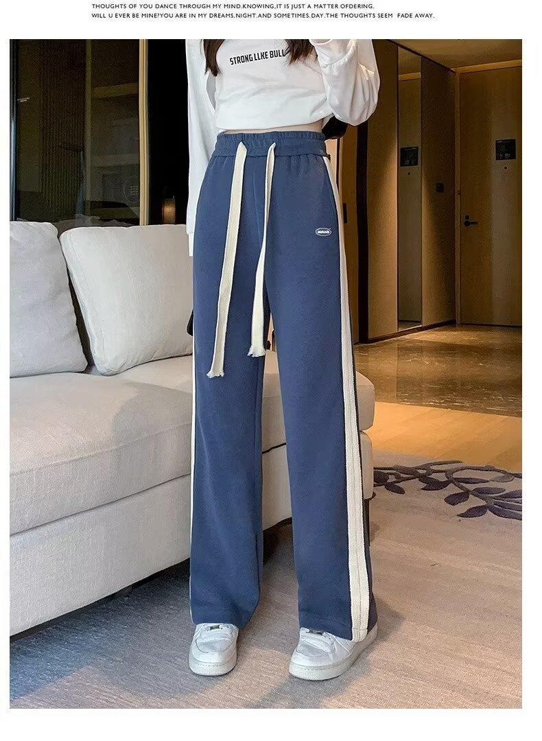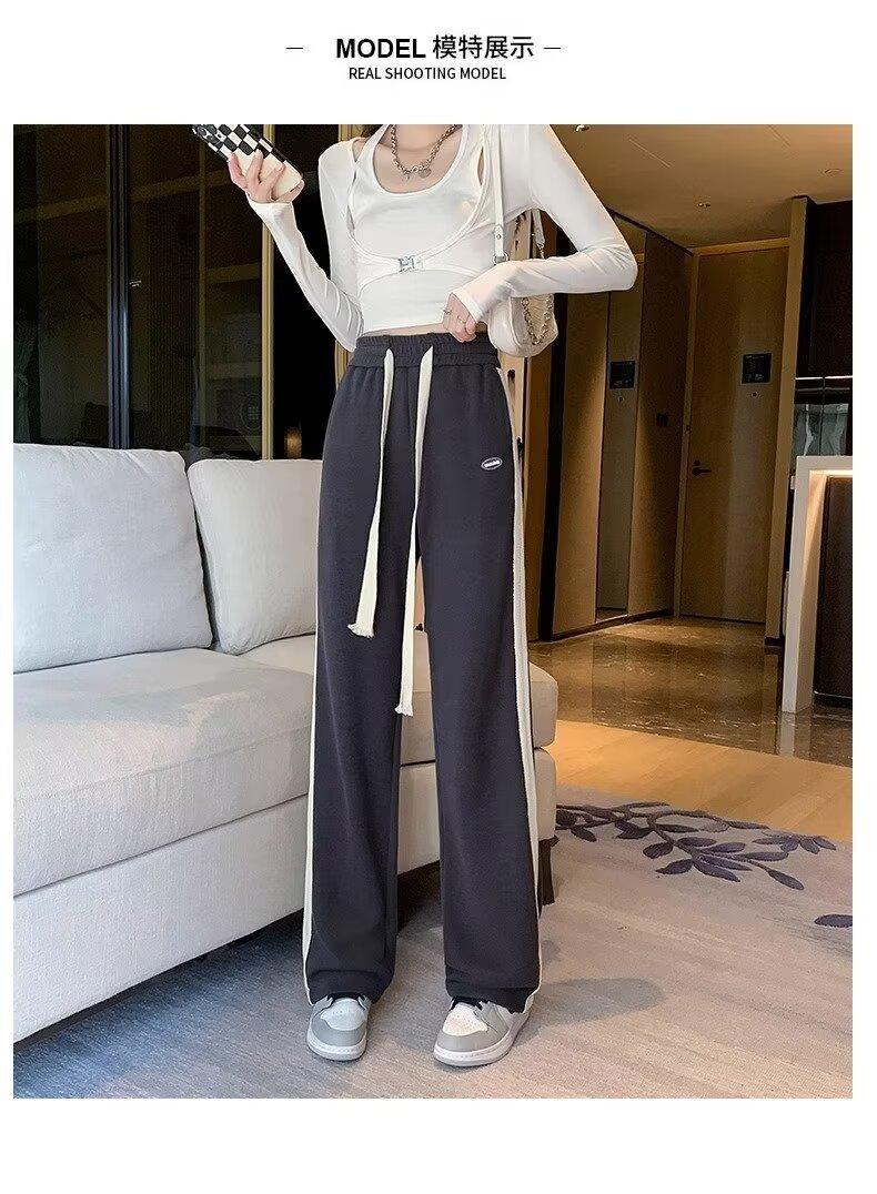 Pantalones deportivos para mujer de verano delgados casuales 2024 nuevos de cintura alta dosificantes elegantes pequeños rectos de pierna ancha