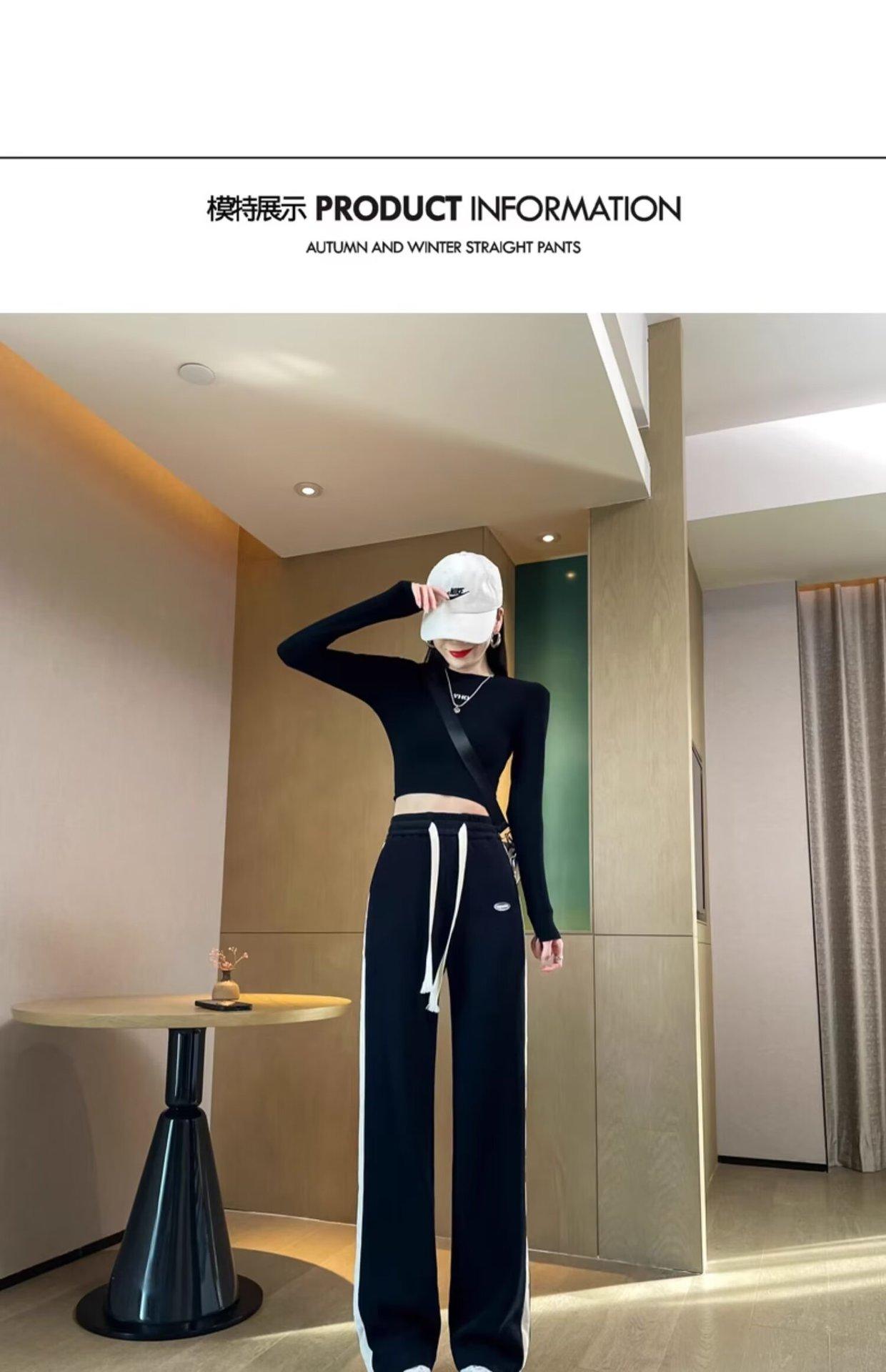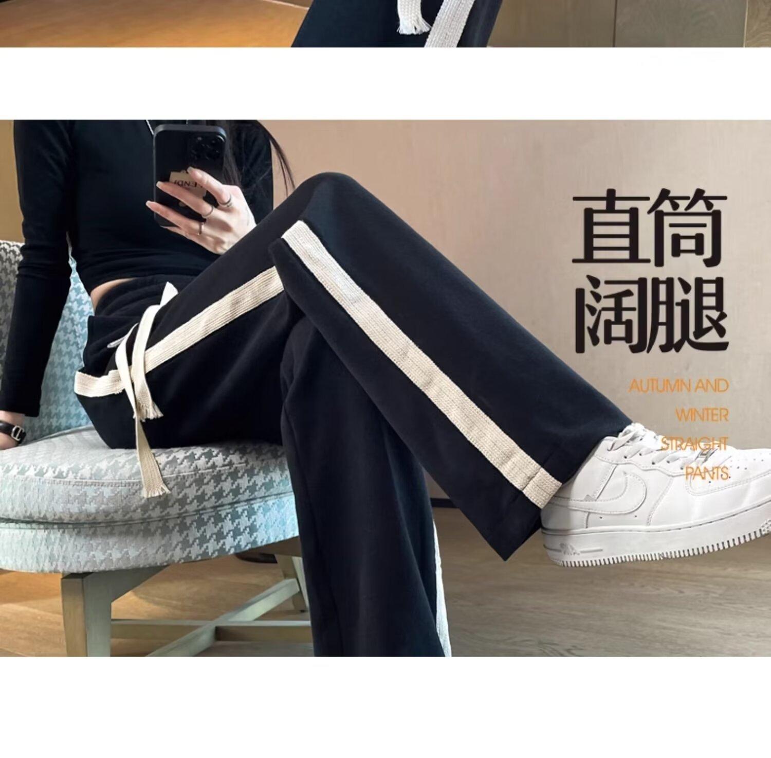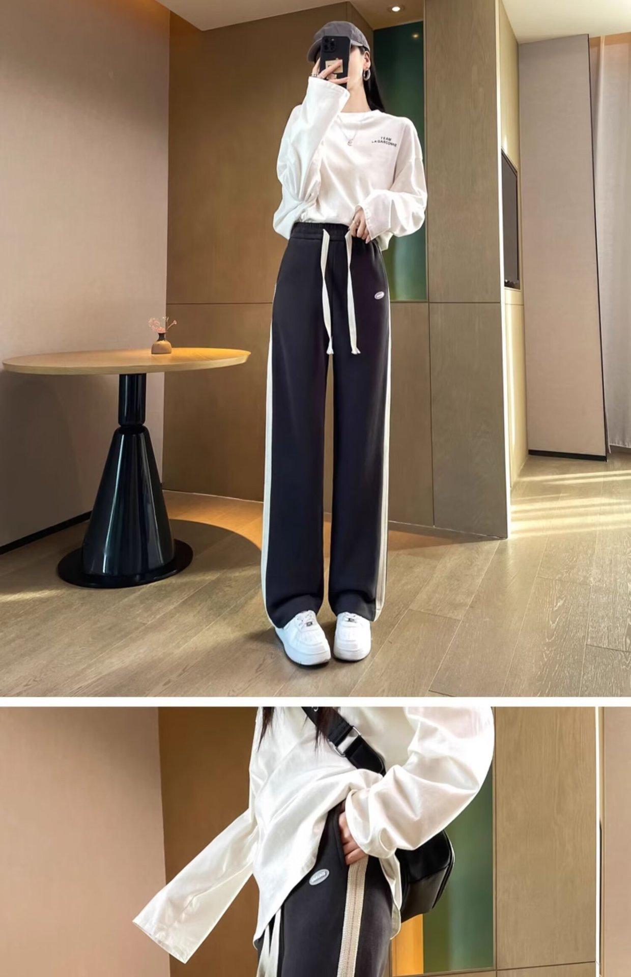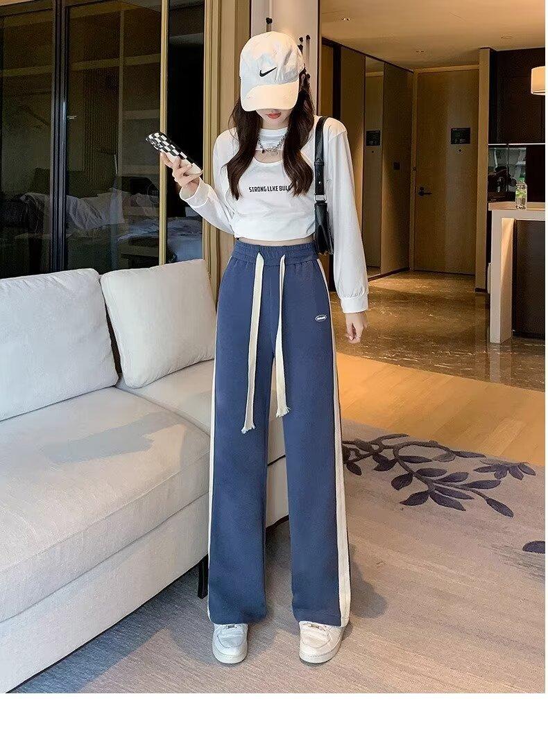 Pantalones deportivos para mujer de verano delgados casuales 2024 nuevos de cintura alta dosificantes elegantes pequeños rectos de pierna ancha