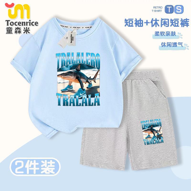 Ropa de Hombre de Palo de Madera Camiseta de Manga Corta para Niños Tungutngsahur 2025 Nuevo Conjunto Top de Media Manga